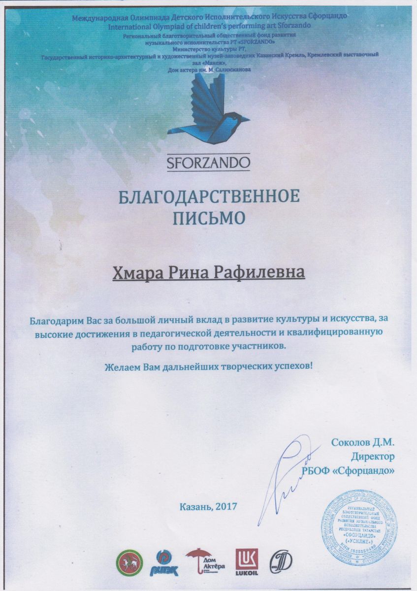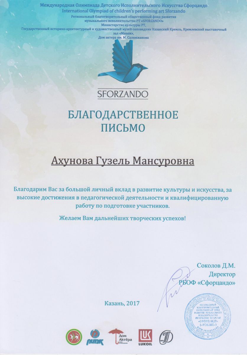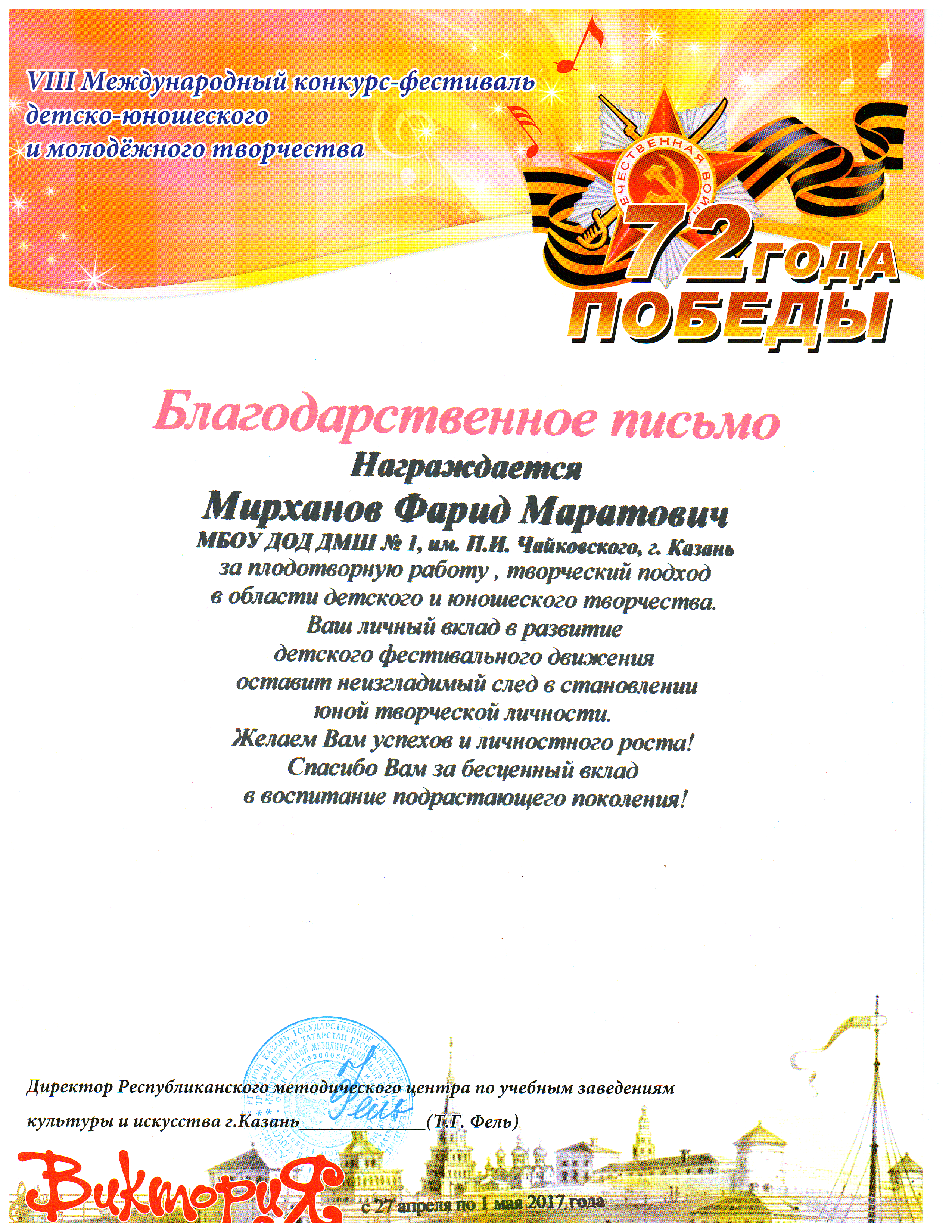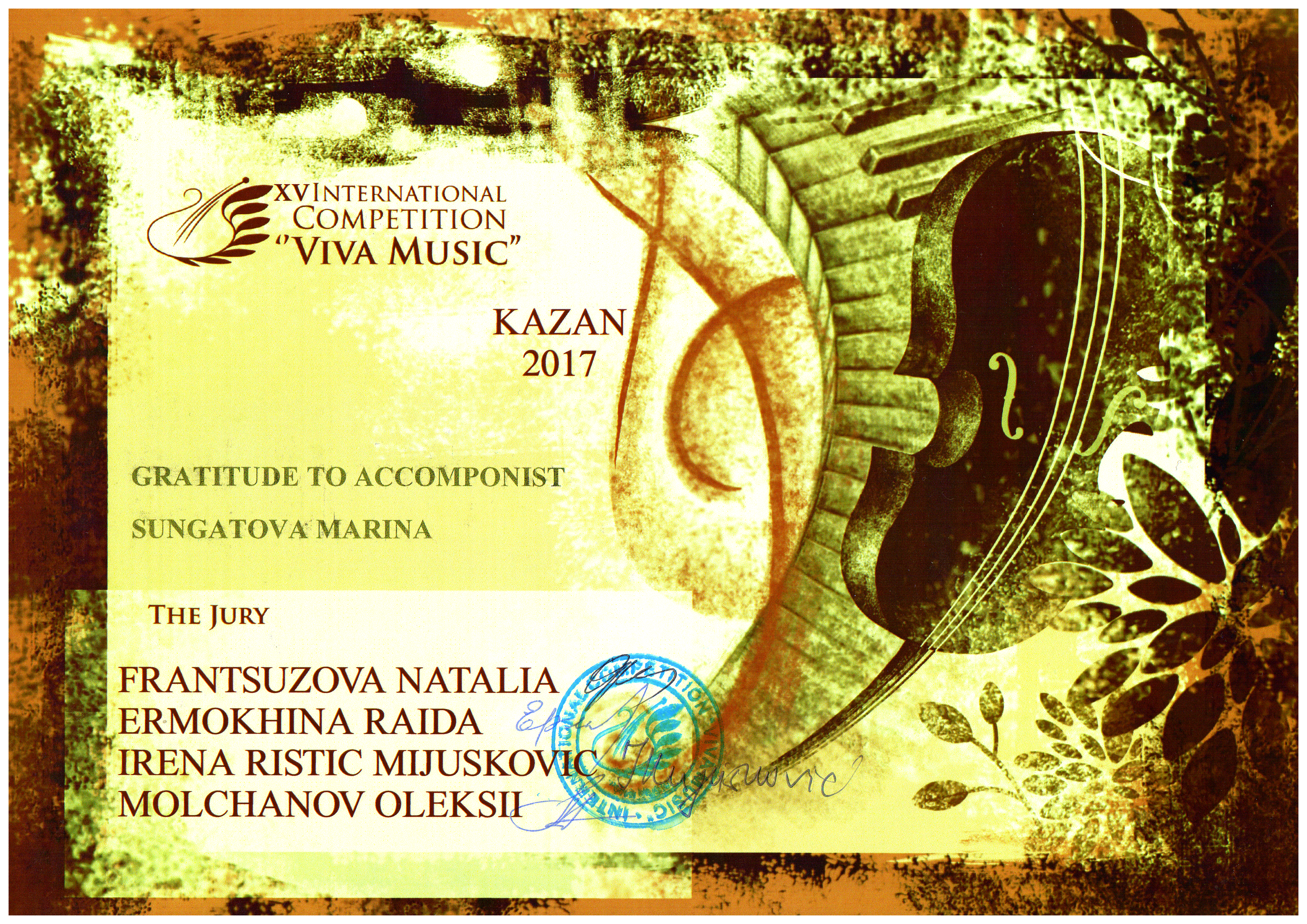 XV Международный конкурс "Viva muzic" - Сунгатова М.Ю., Благодарность;