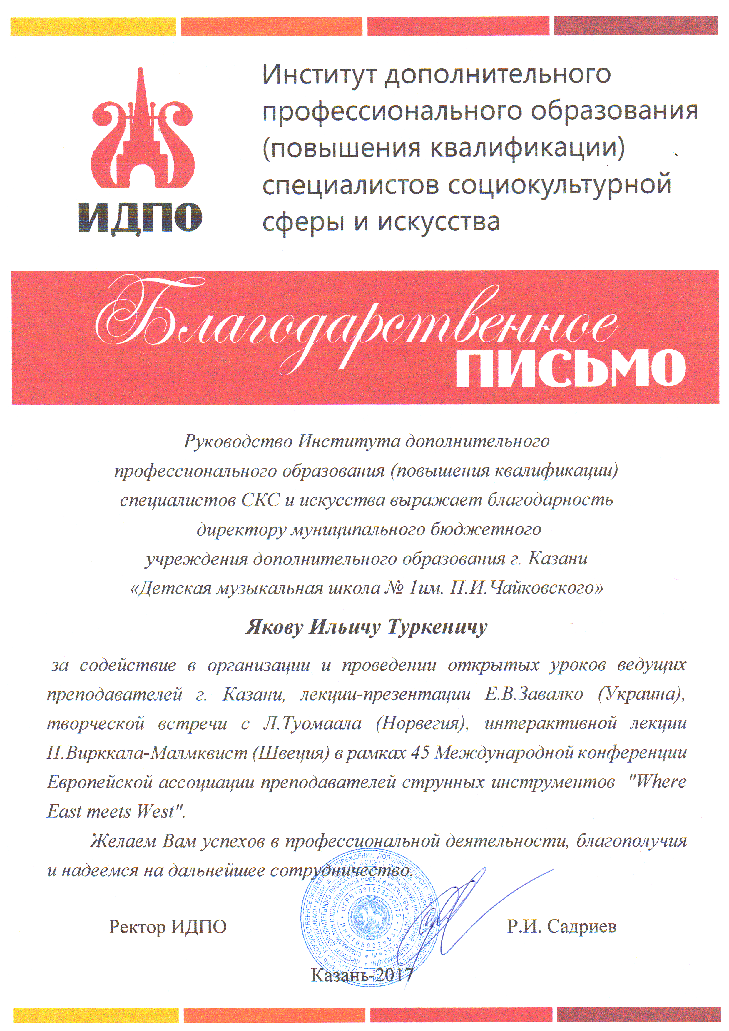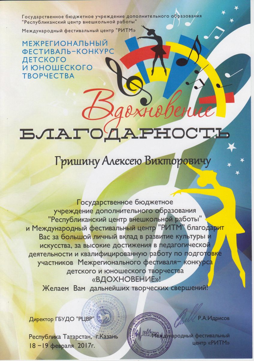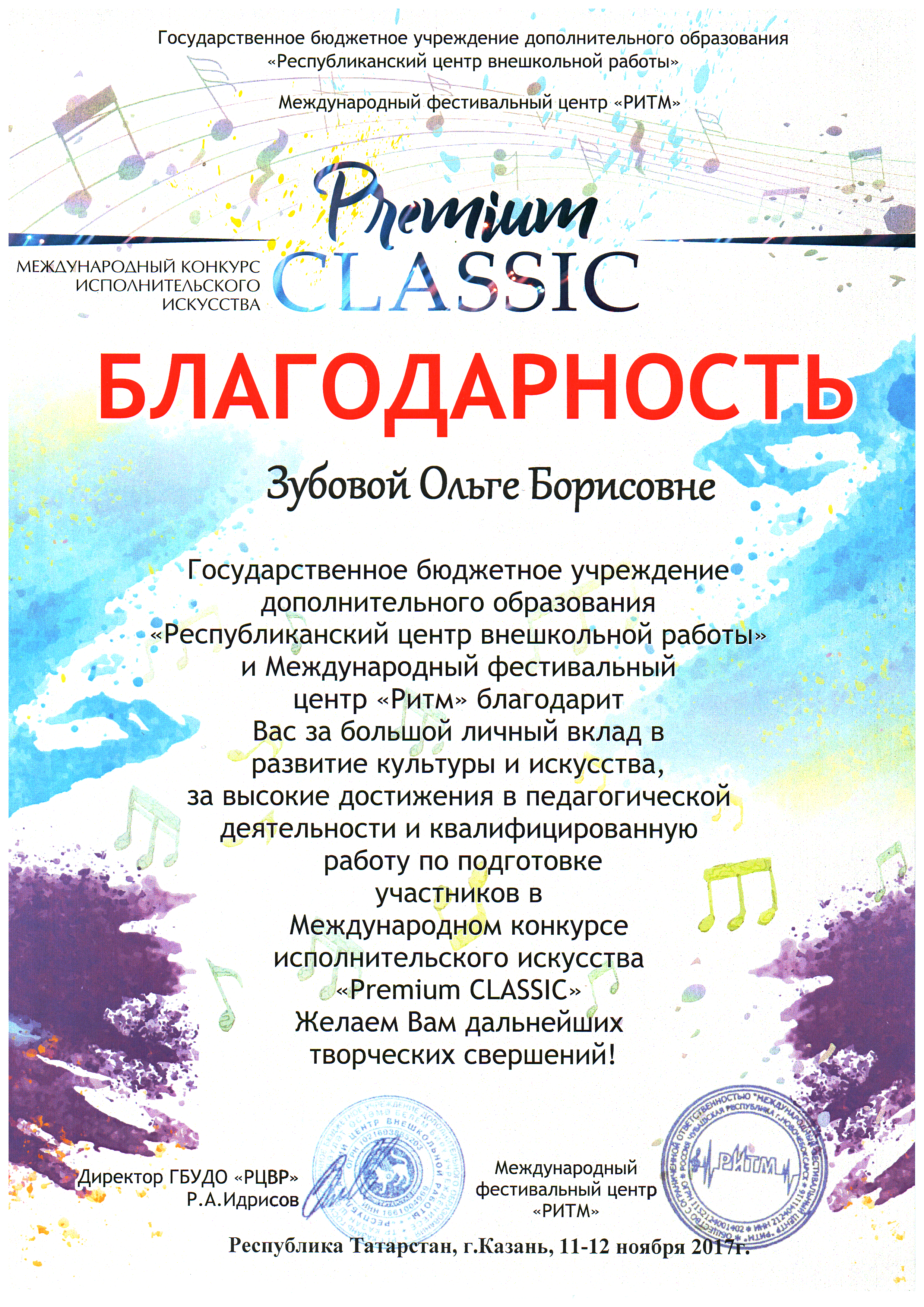 XV Международный конкурс "Viva muzic" - Сунгатова М.Ю., Благодарность;