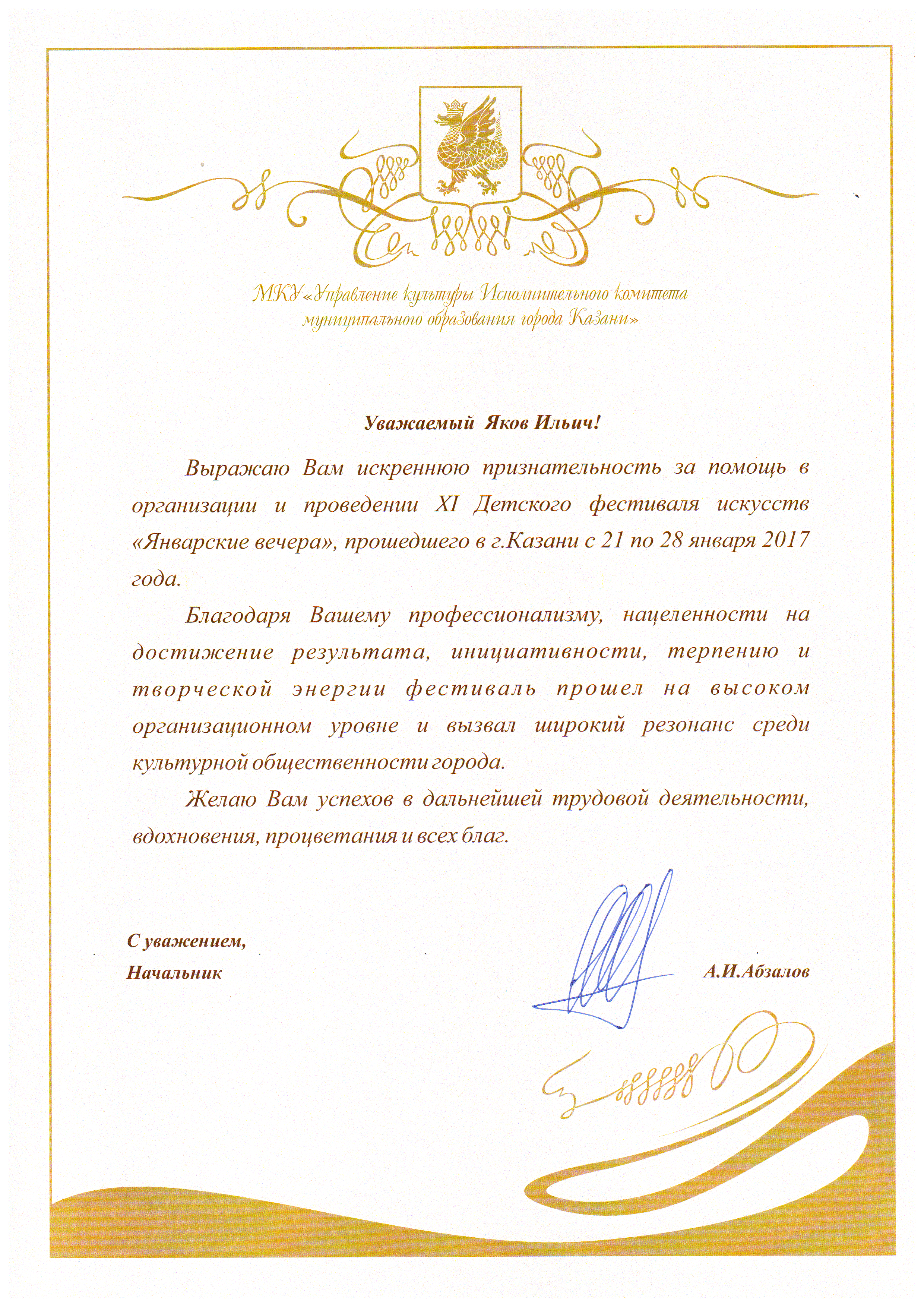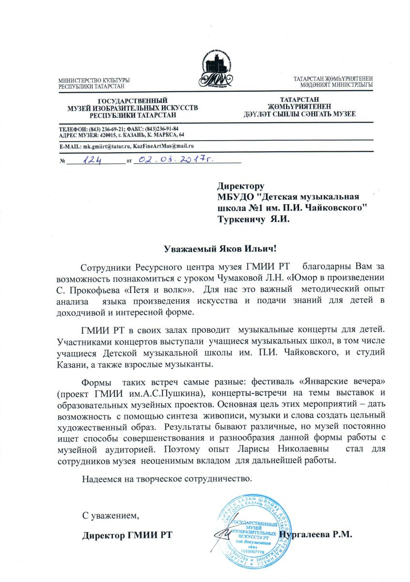 Государственный музей изобразительных искусств РТ - Благодарность Чумаковой Л.Н.;