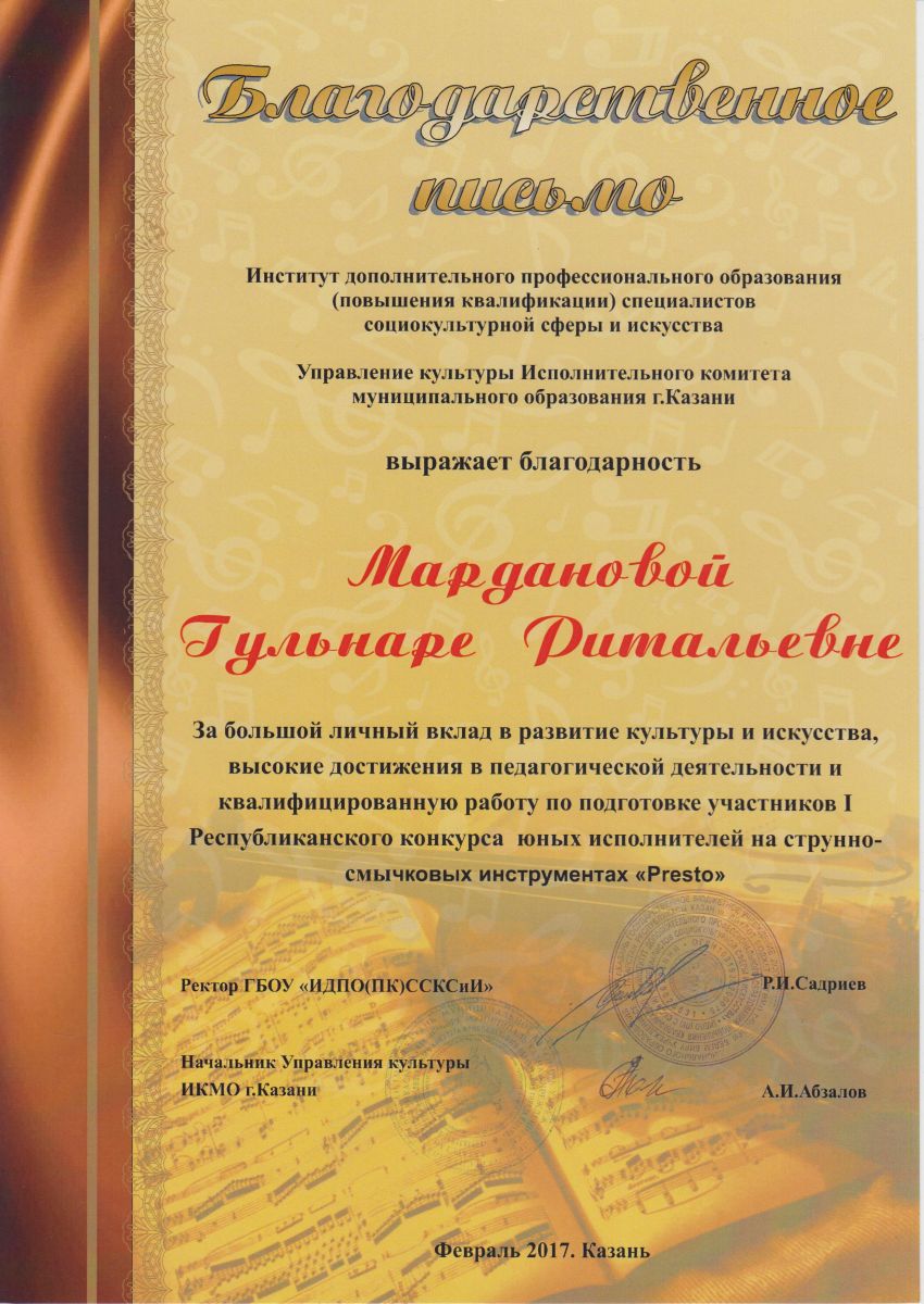 II Межрегиональный конкурс "Волшебный смычок" - Марданова Г.Р., Благодарственное письмо;