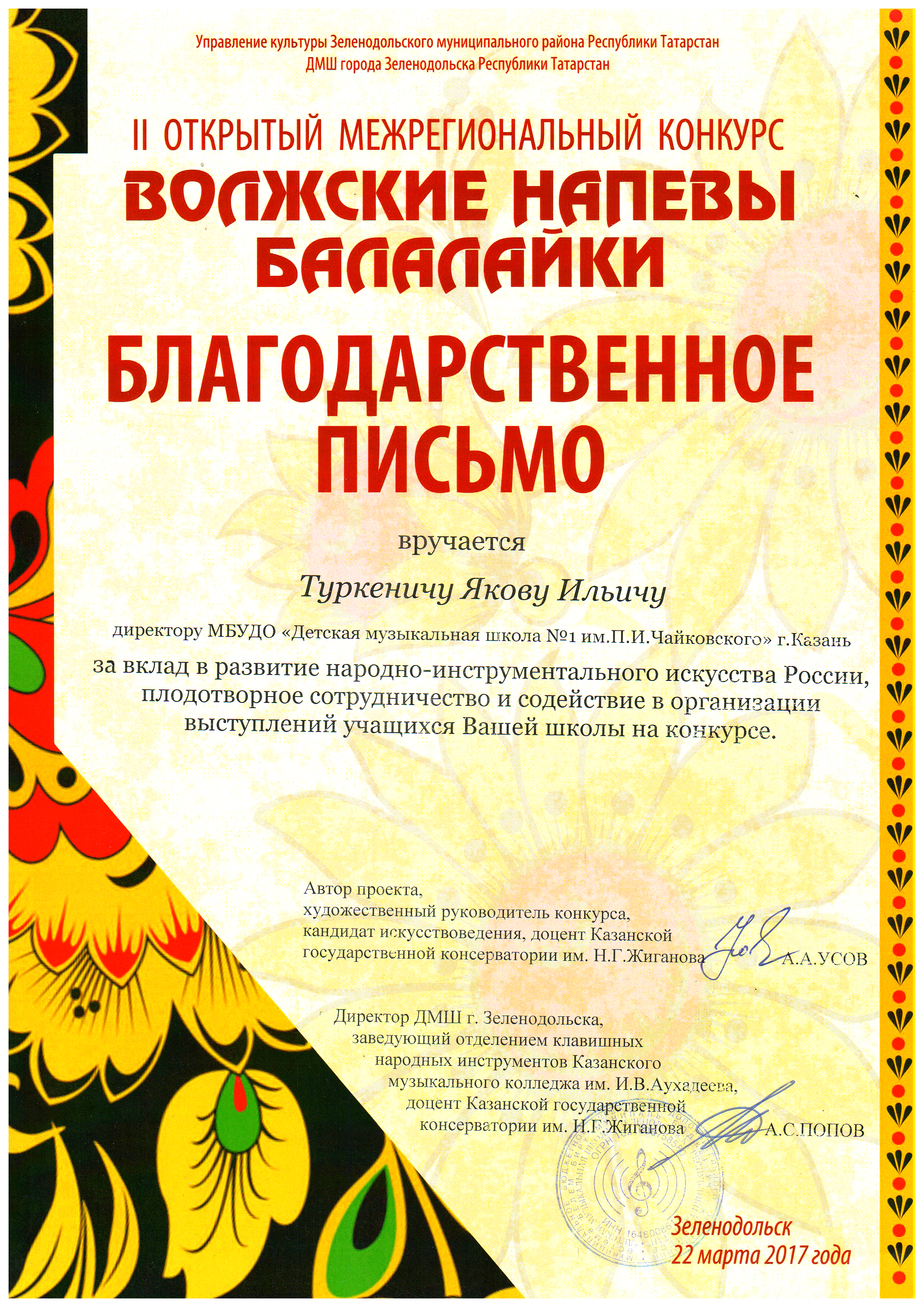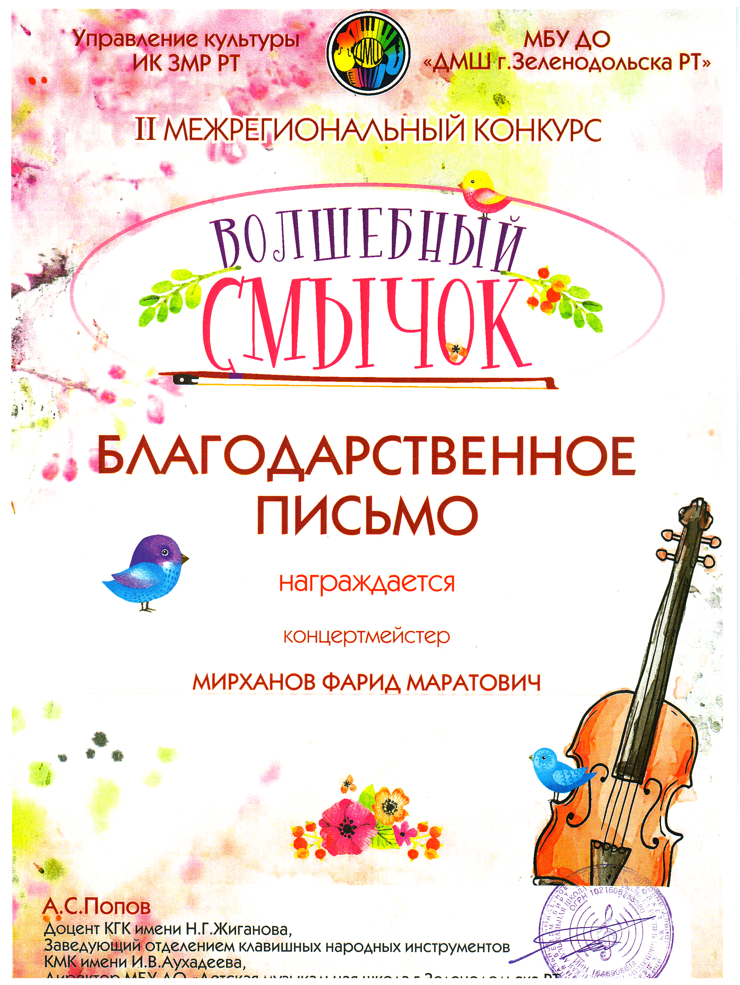 II Межрегиональный конкурс "Волшебный смычок" - Мирханов Ф.М., Благодарственное письмо;