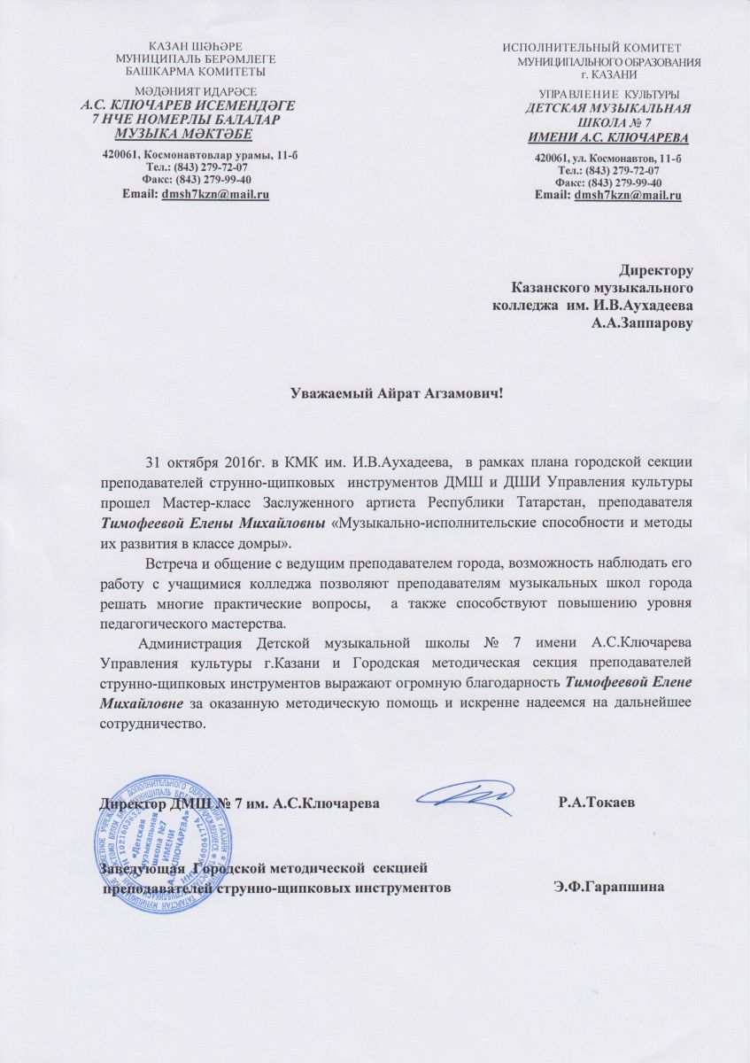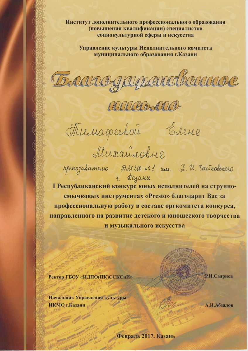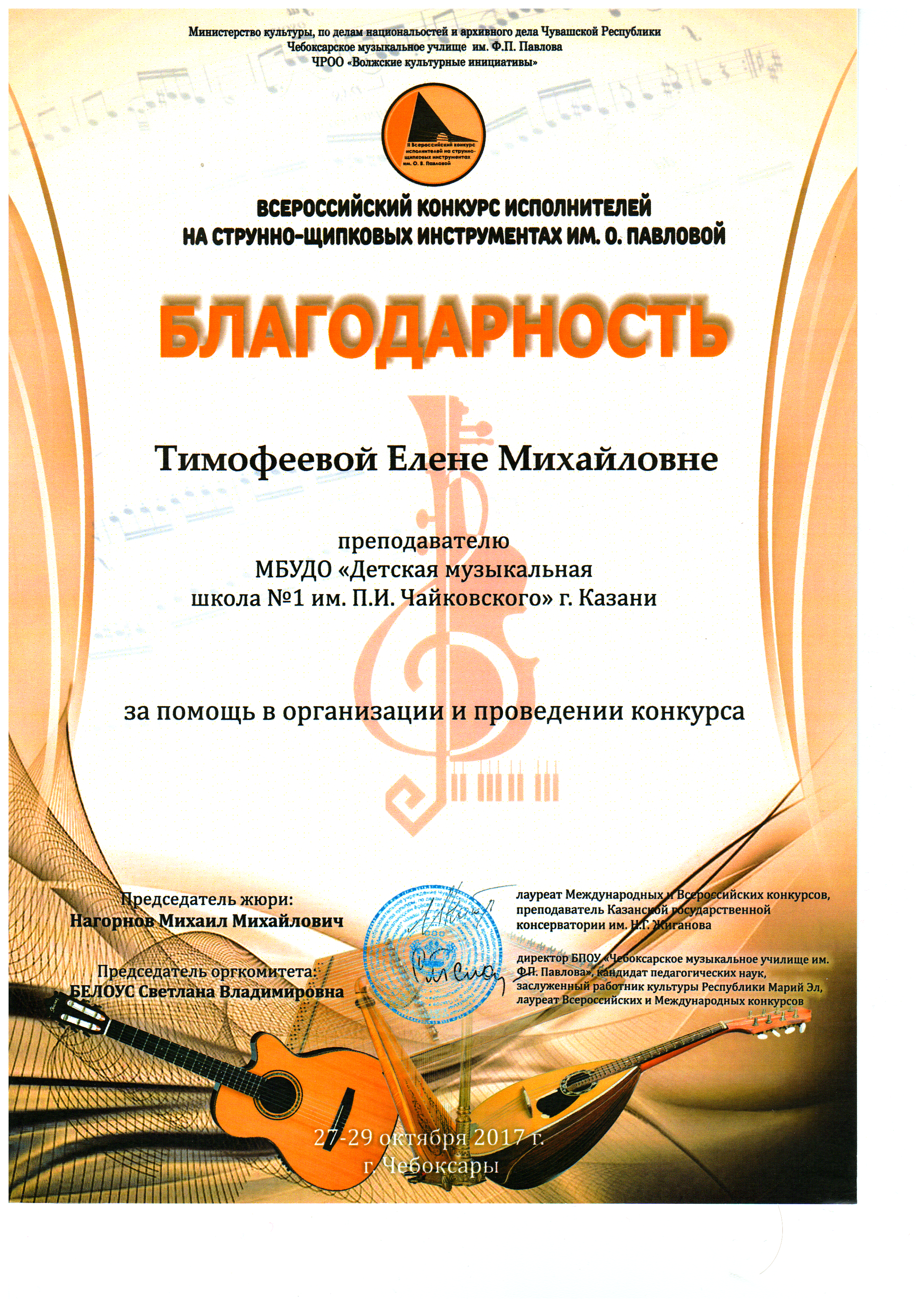 Городская секция преподавателей струнно-щипковых инструментов - Тимофеева Е.М., Благодарность;