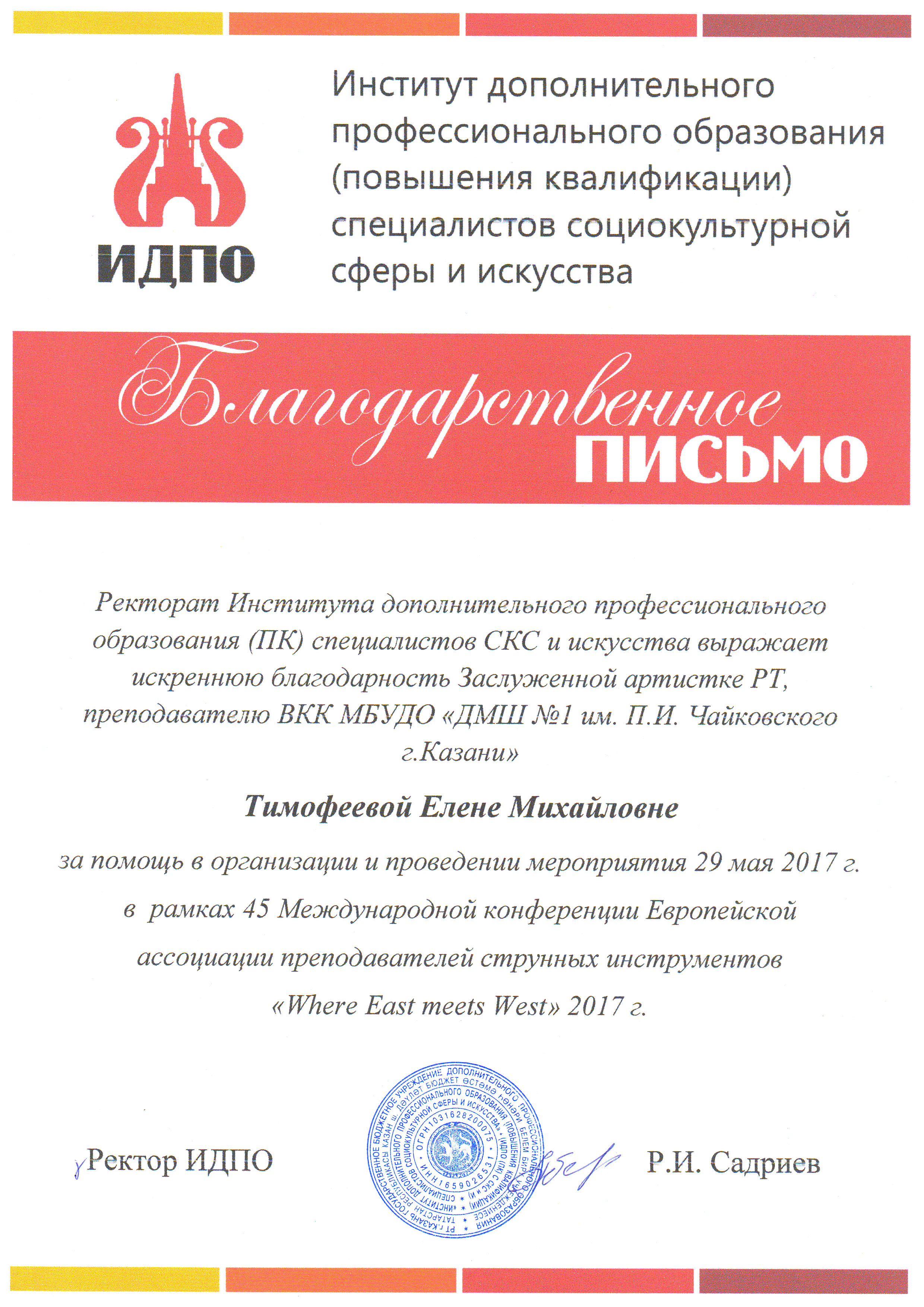 Ректорат ИДПО СКС - Тимофеева Е.М., Благодарственное письмо;