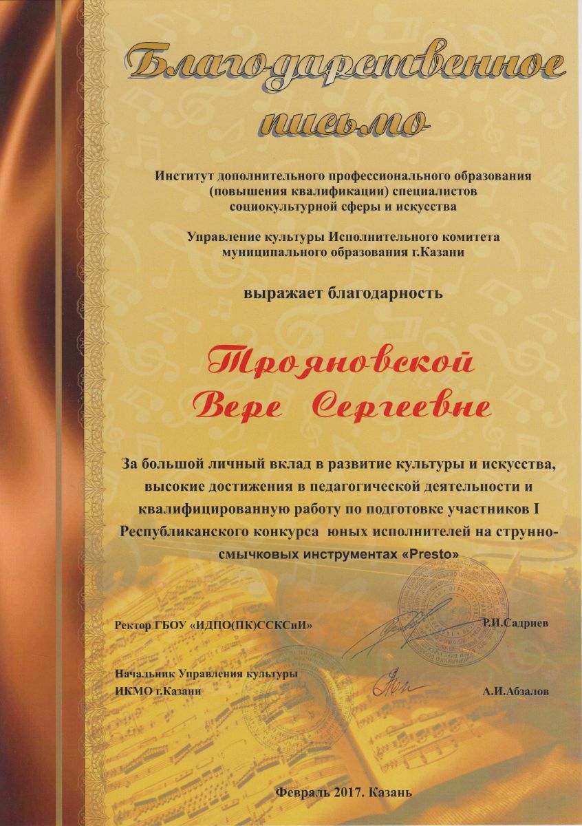 I Республиканский конкурс "Город творчества" - Сытикова Н.А., Благодарственное письмо;
