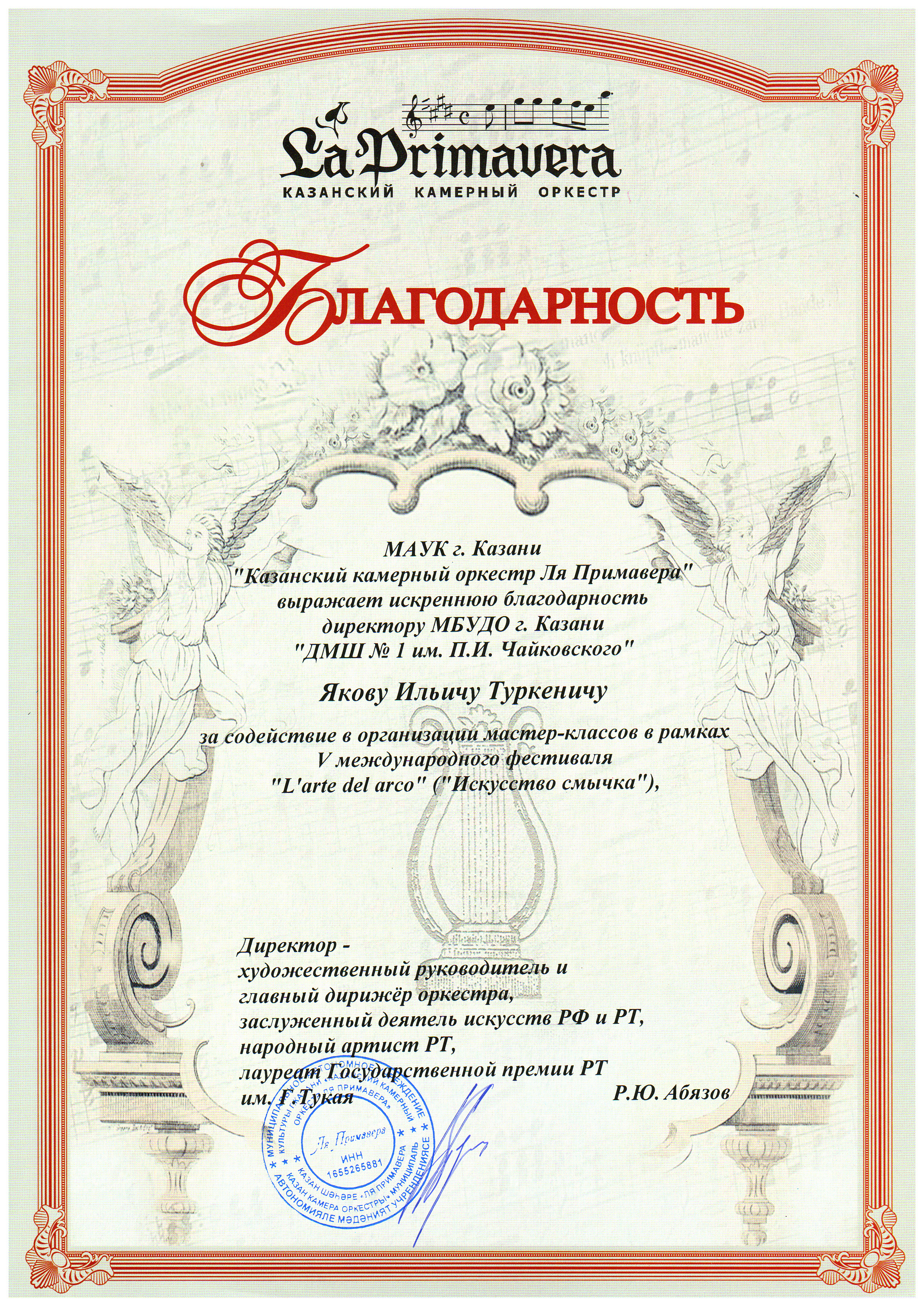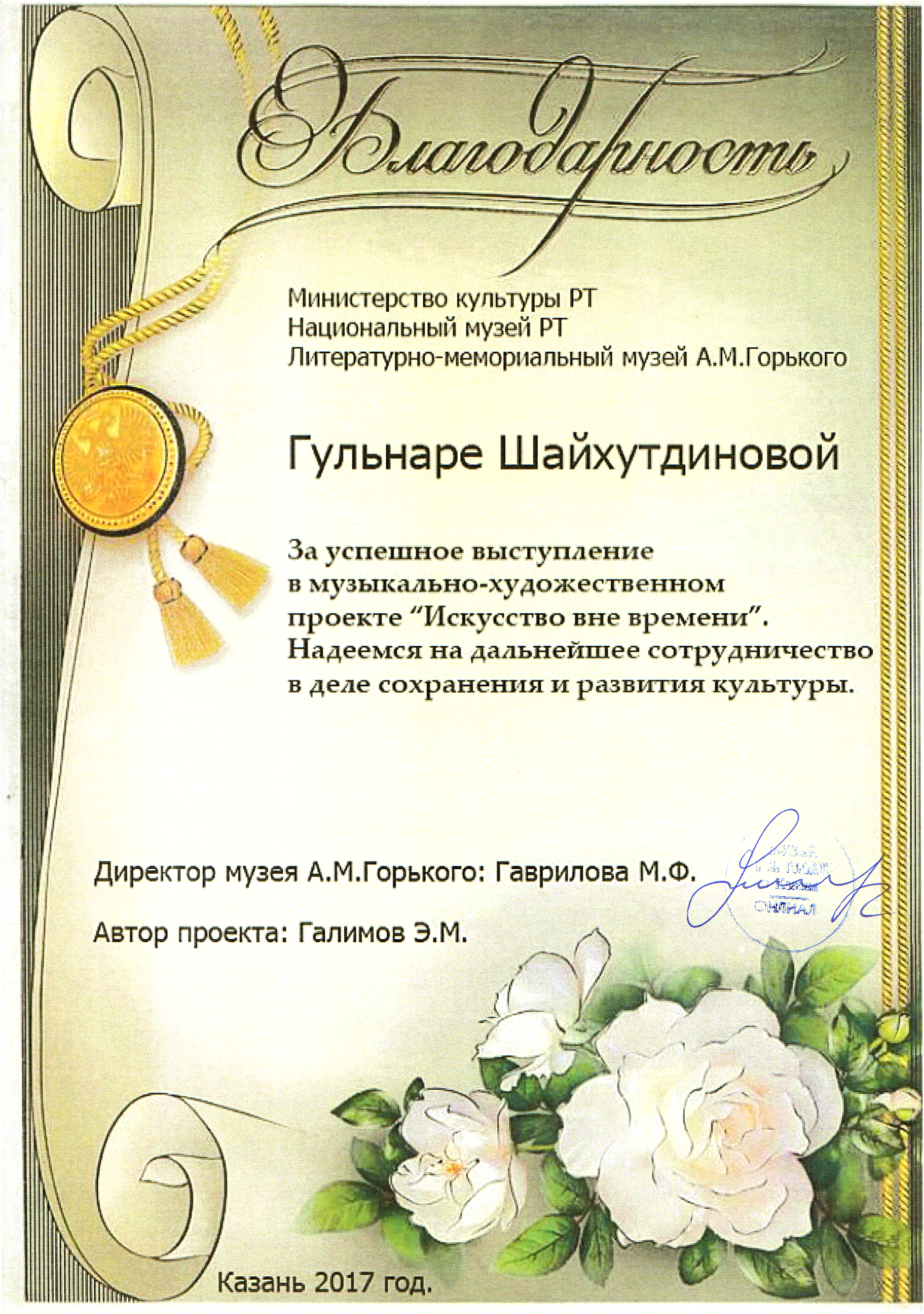 Музыкально-художественный проект "Искусство вне времени" - Шайхутдинова Г.Р., Благодарность;
