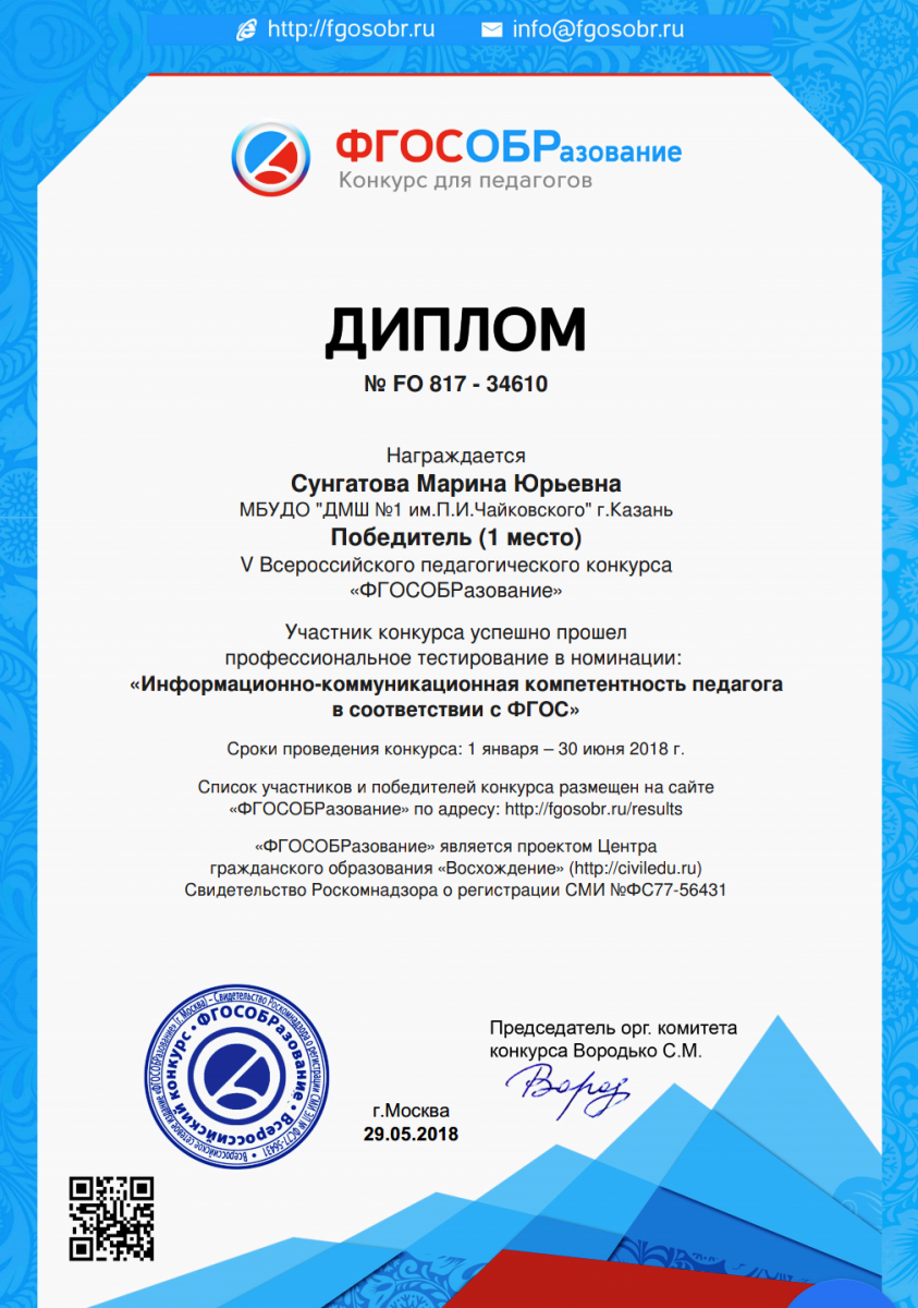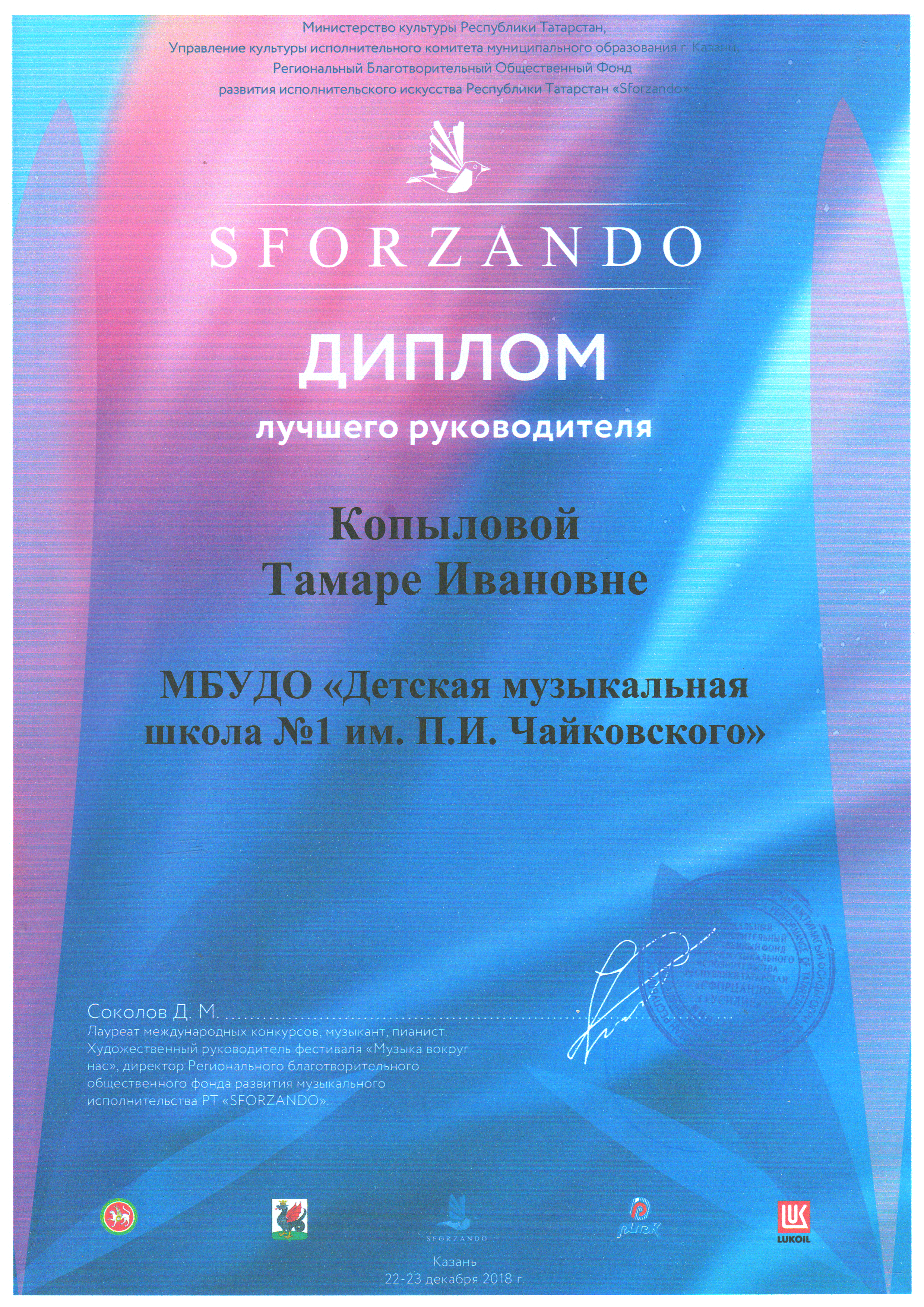 Международная олимпиада "SFORZANDO" - Копылова Т.И., Диплом "Лучшему руководителю";