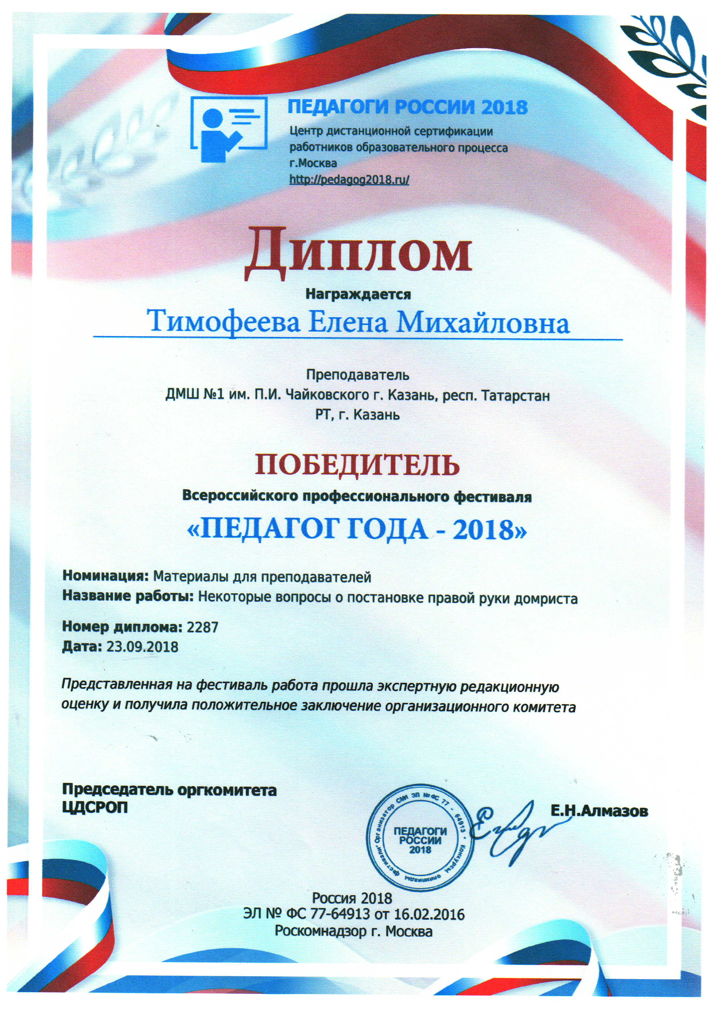 Всероссийский профессиональный фестиваль "Педагог года" - Тимофеева Е.М., Победитель;