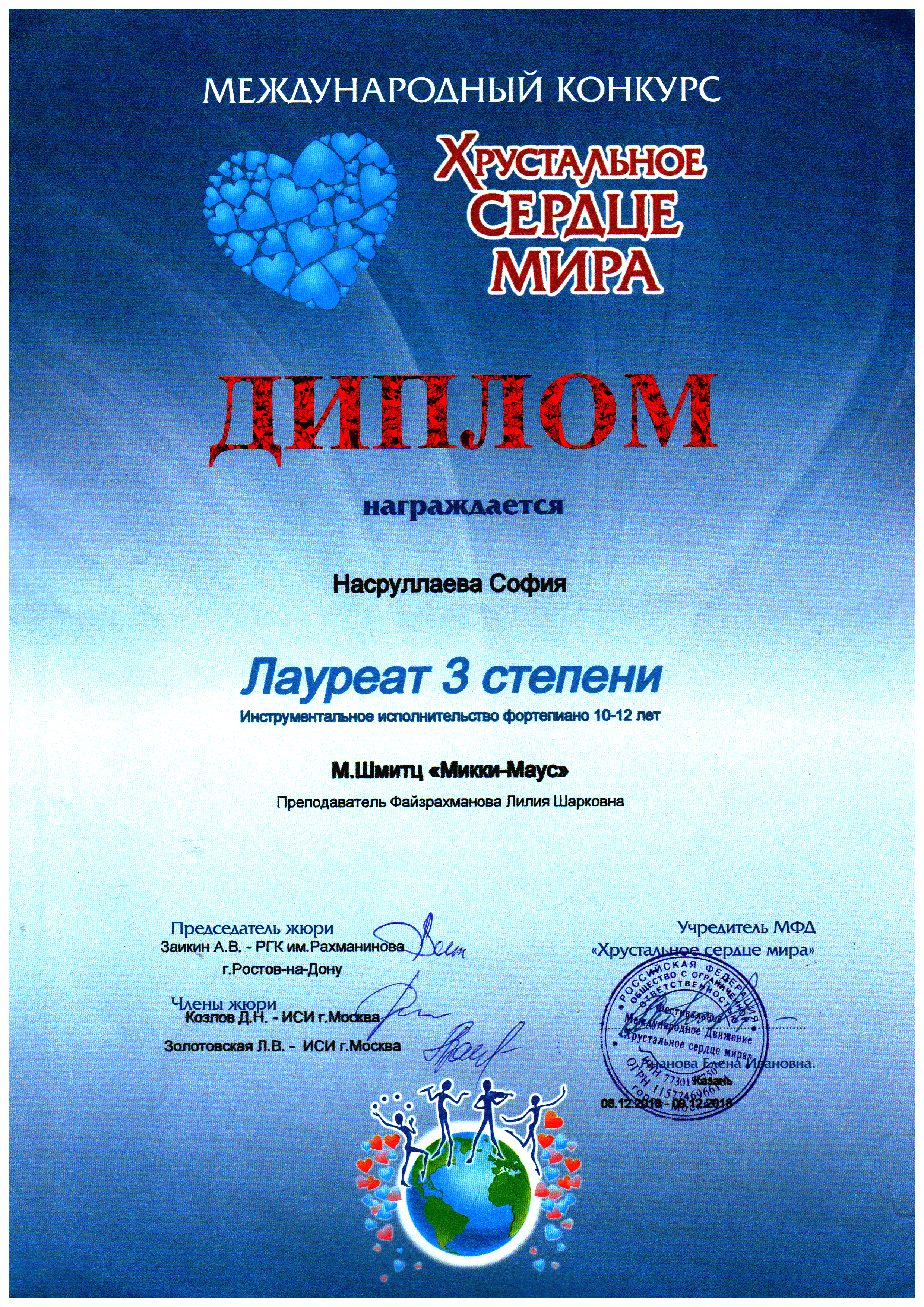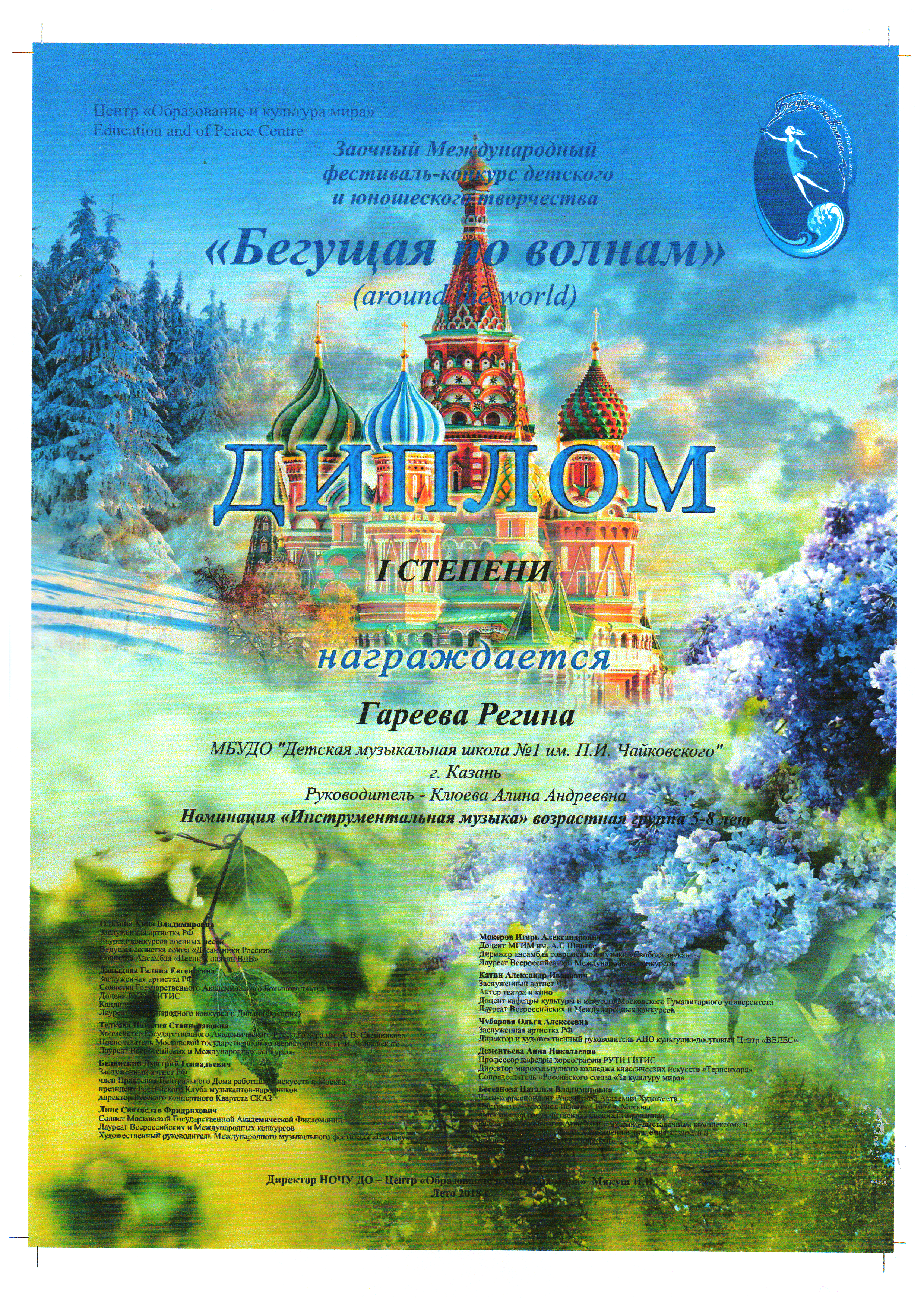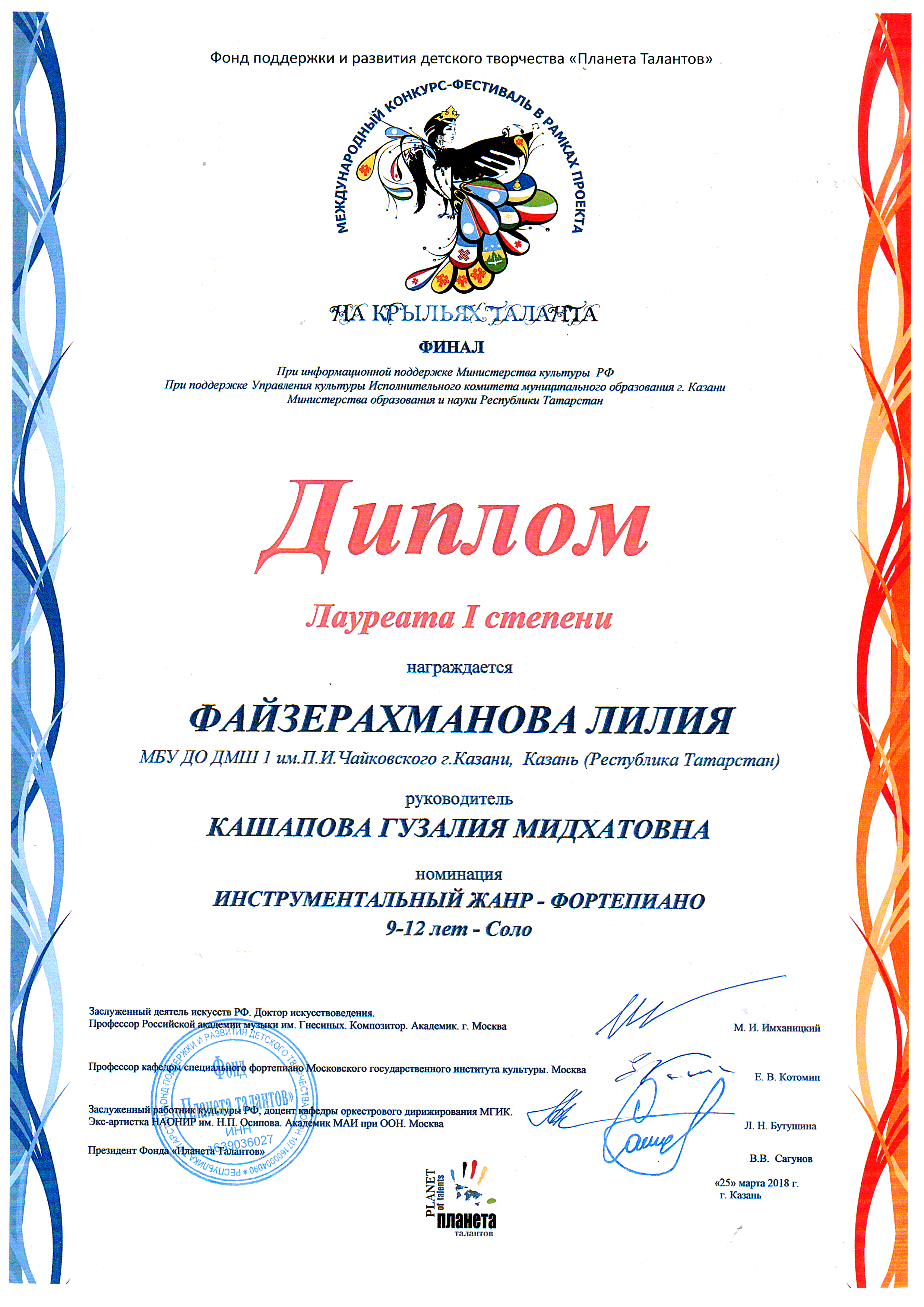 Международный фестиваль-конкурс "Взлёт" - Гайнутдинова Диана, Лауреат I степени;