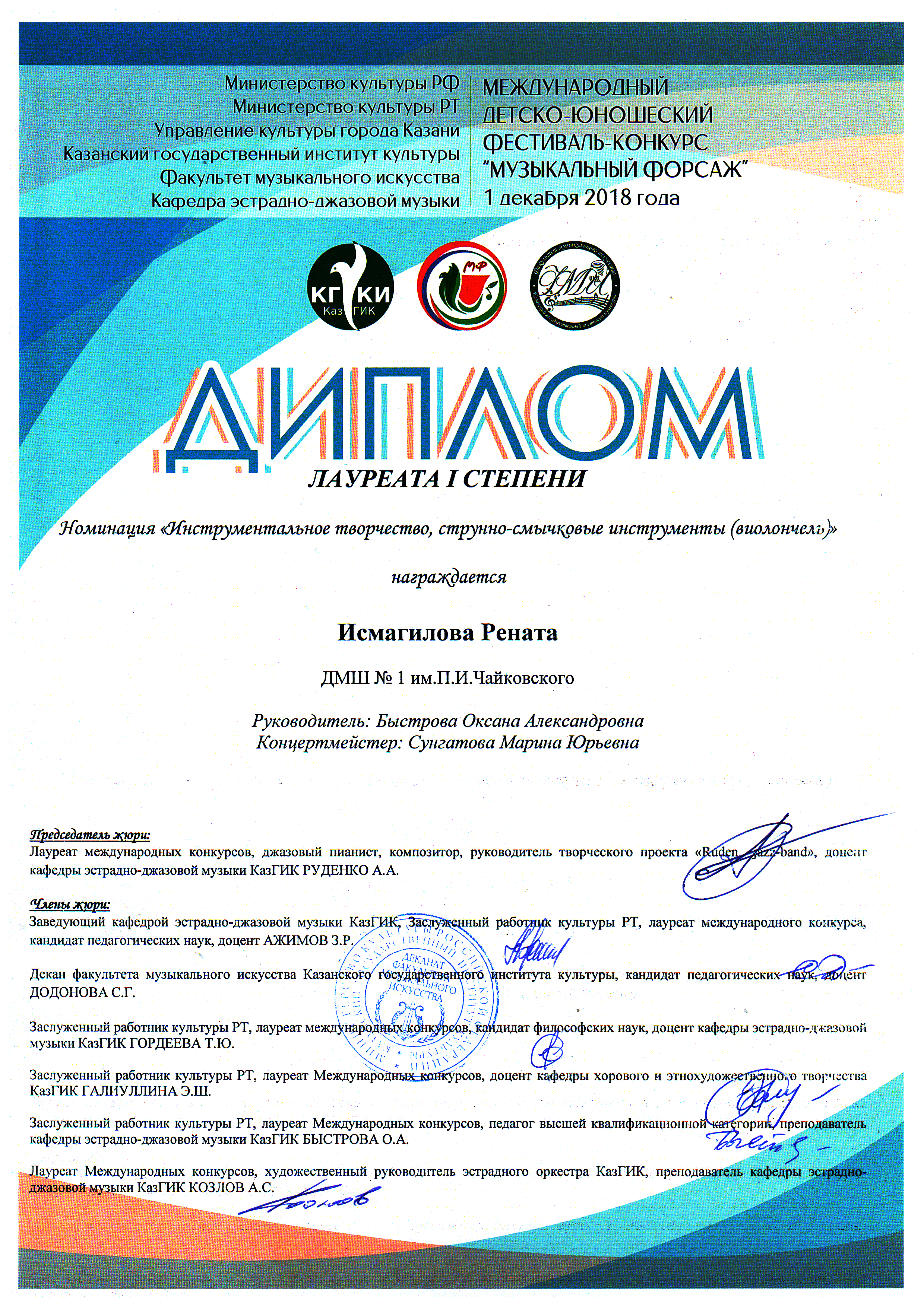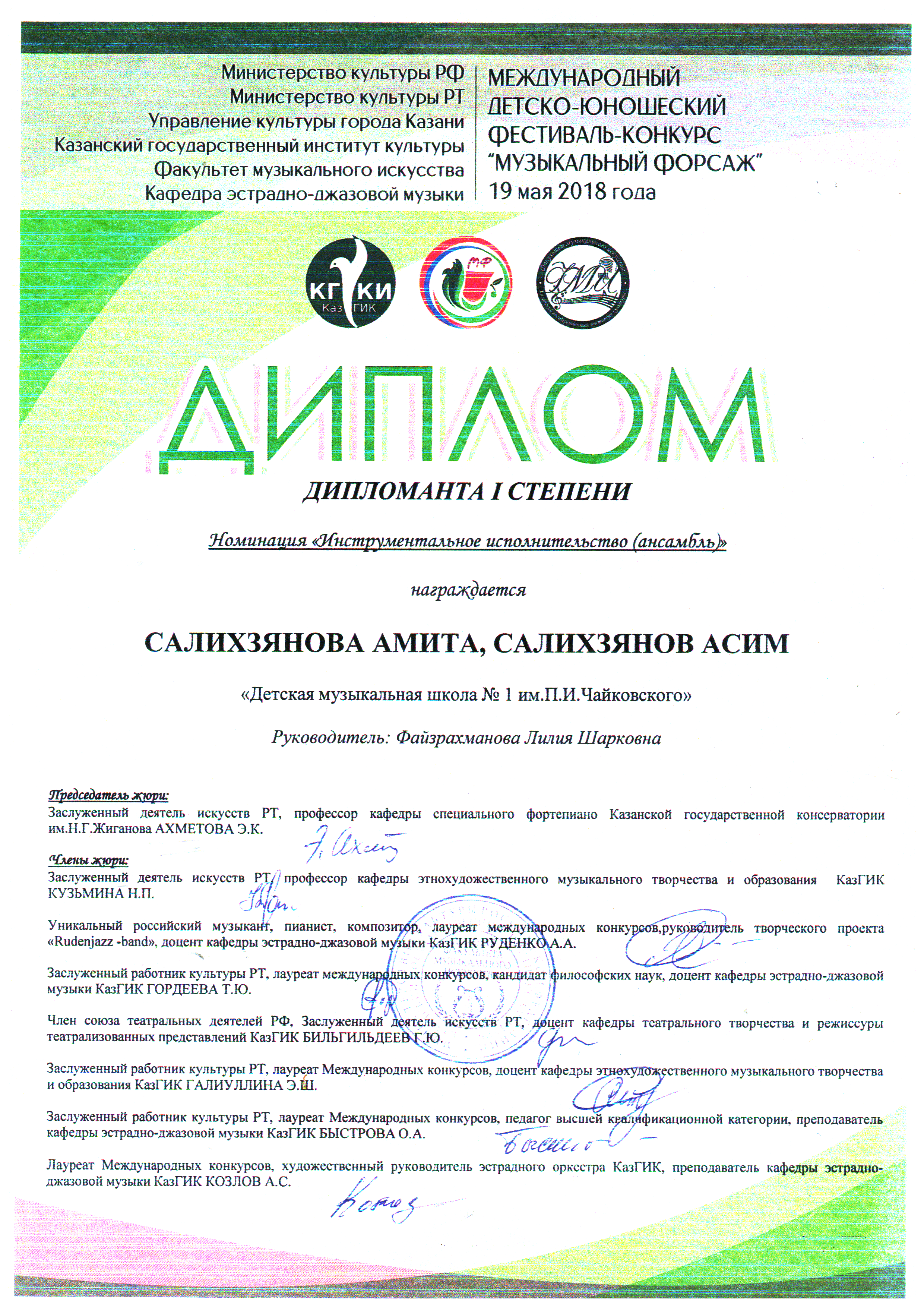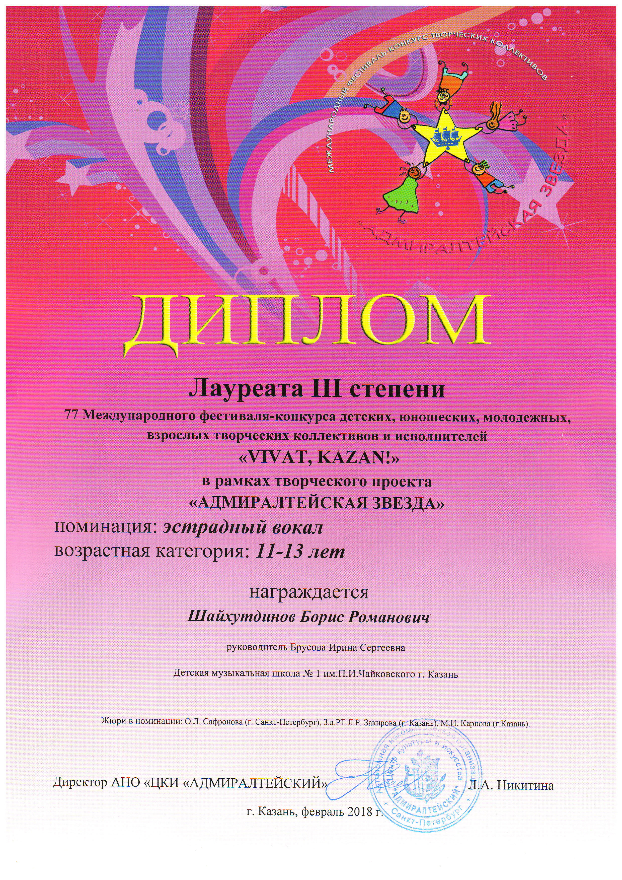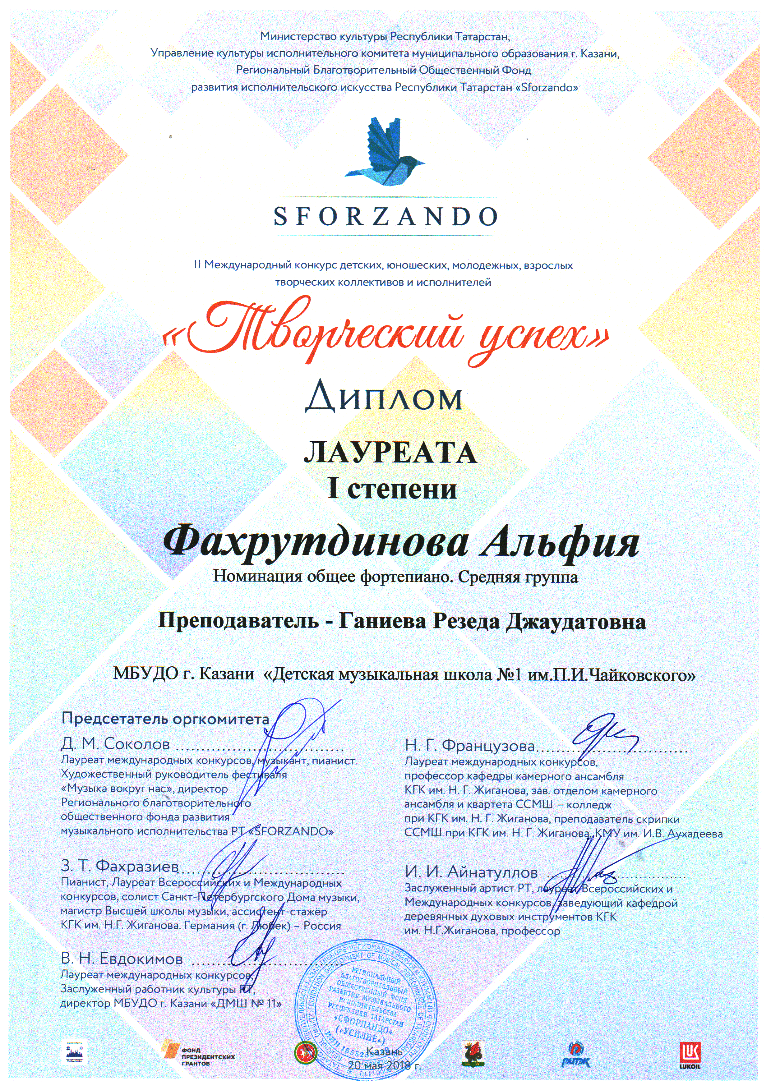 Международный фестиваль-конкурс "Взлёт" - Гайнутдинова Диана, Лауреат I степени;