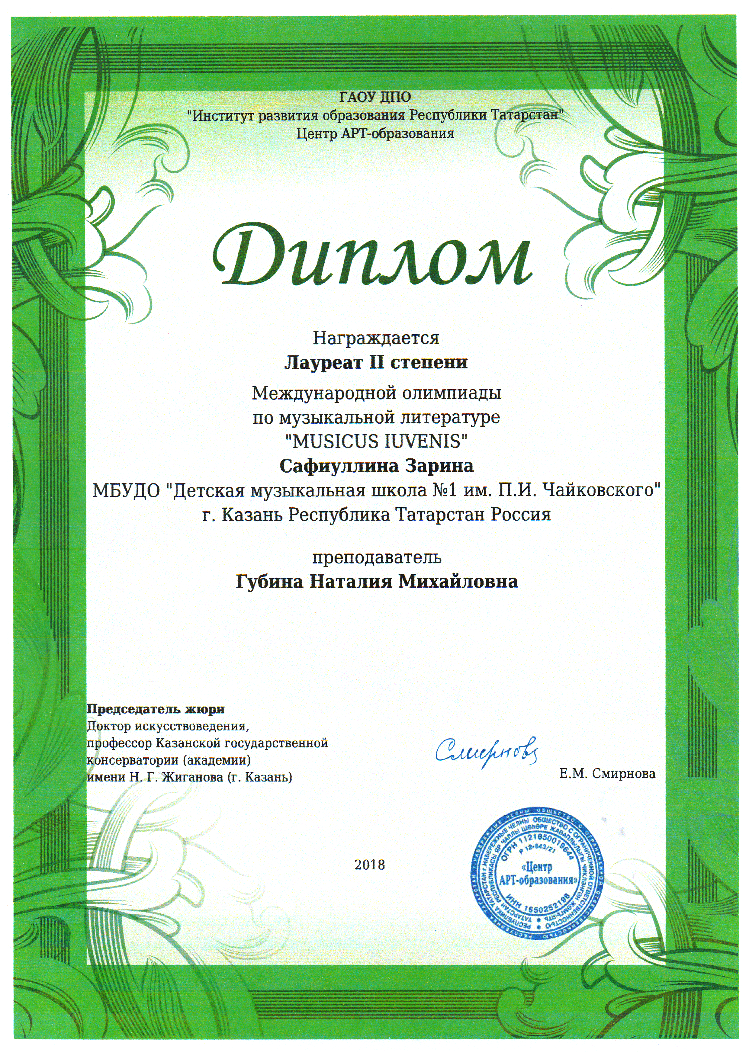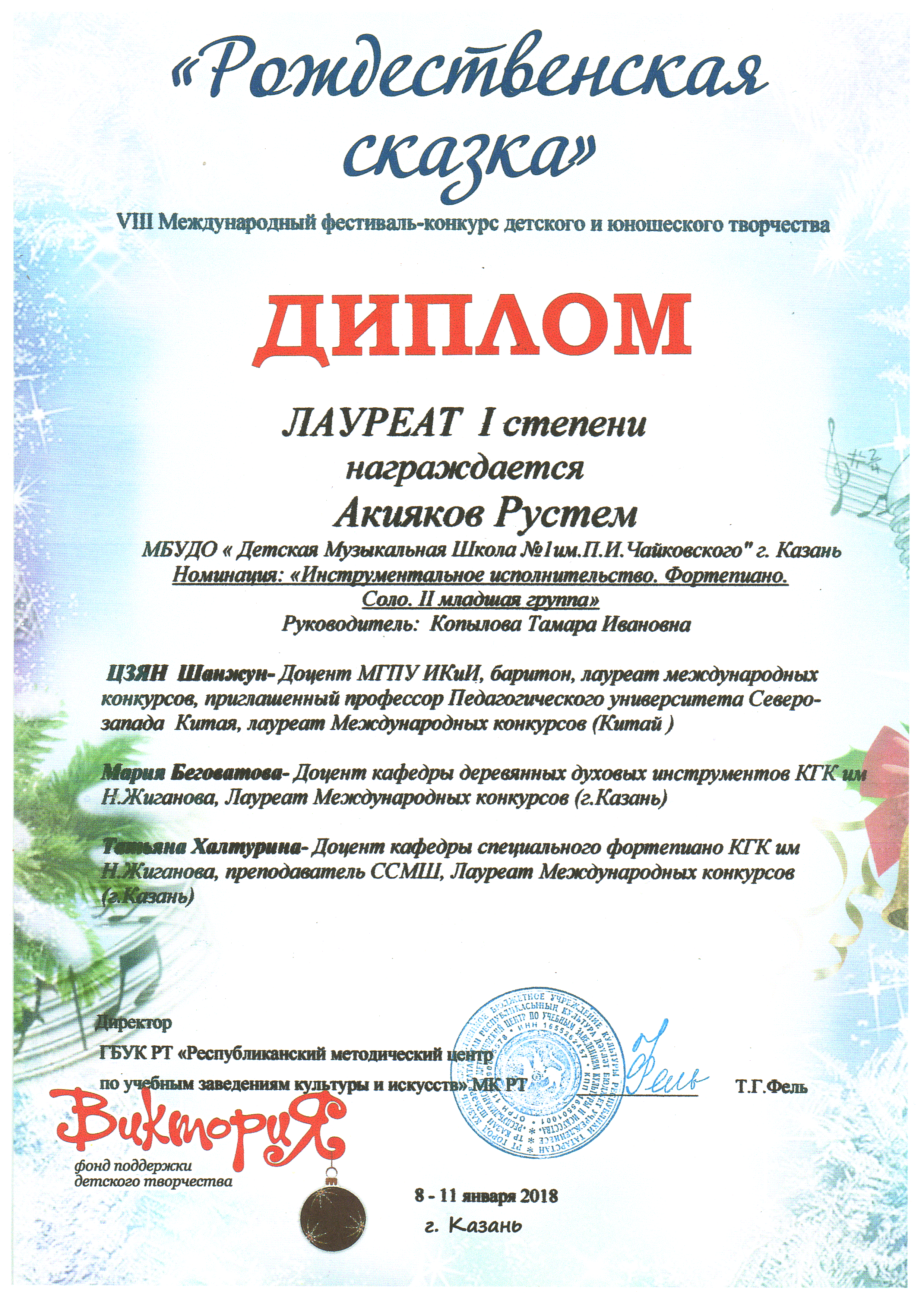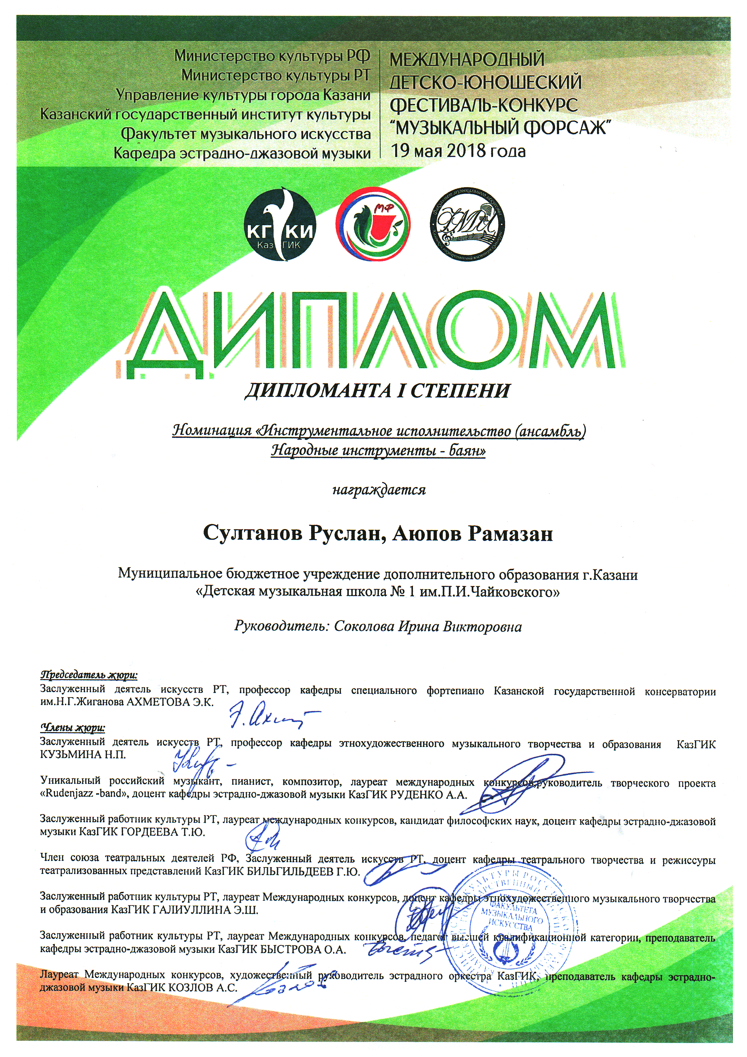 | Короткое название: | МБУДО г.Казани "Детская музыкальная школа №1 им. П.И. Чайковского" |