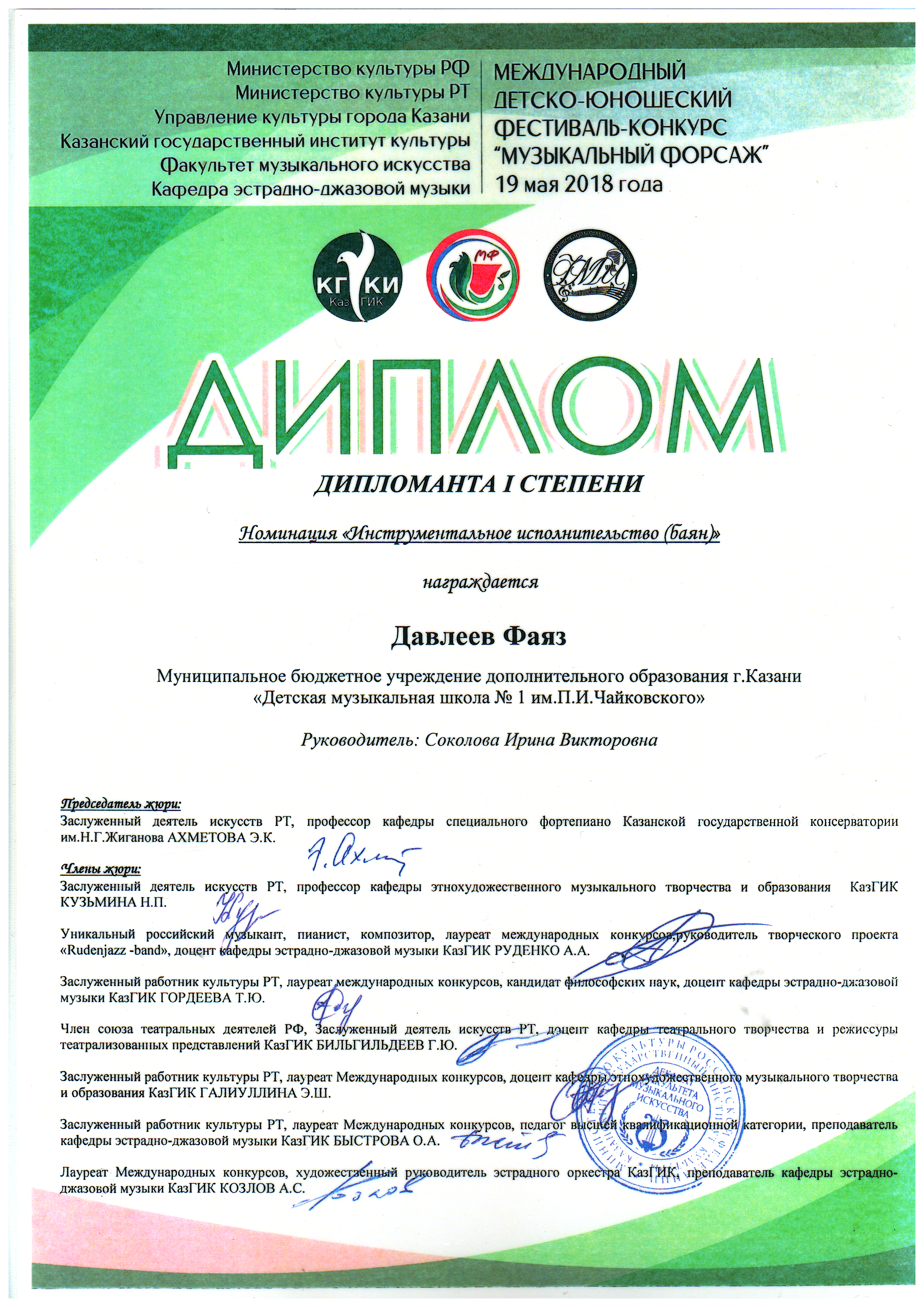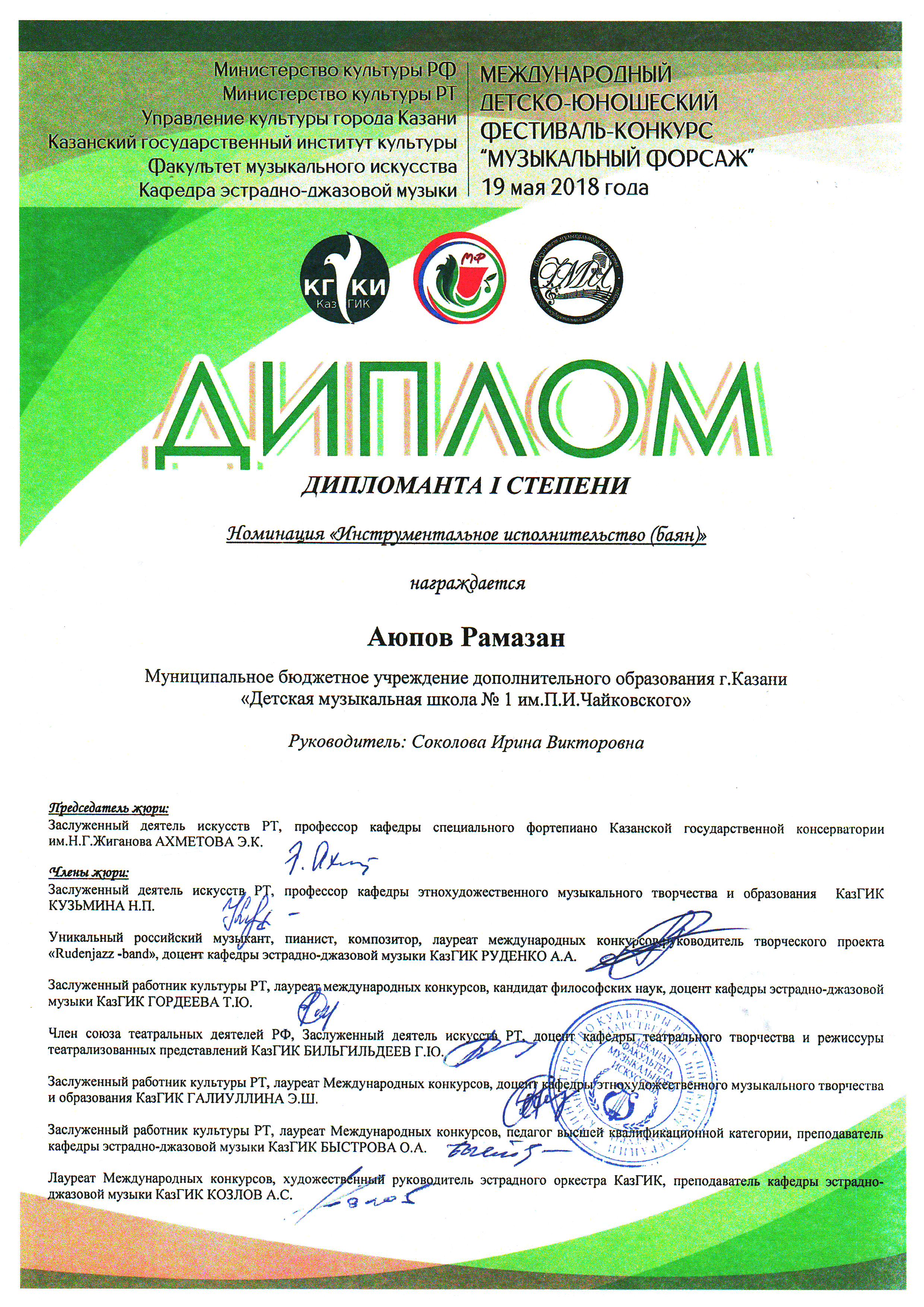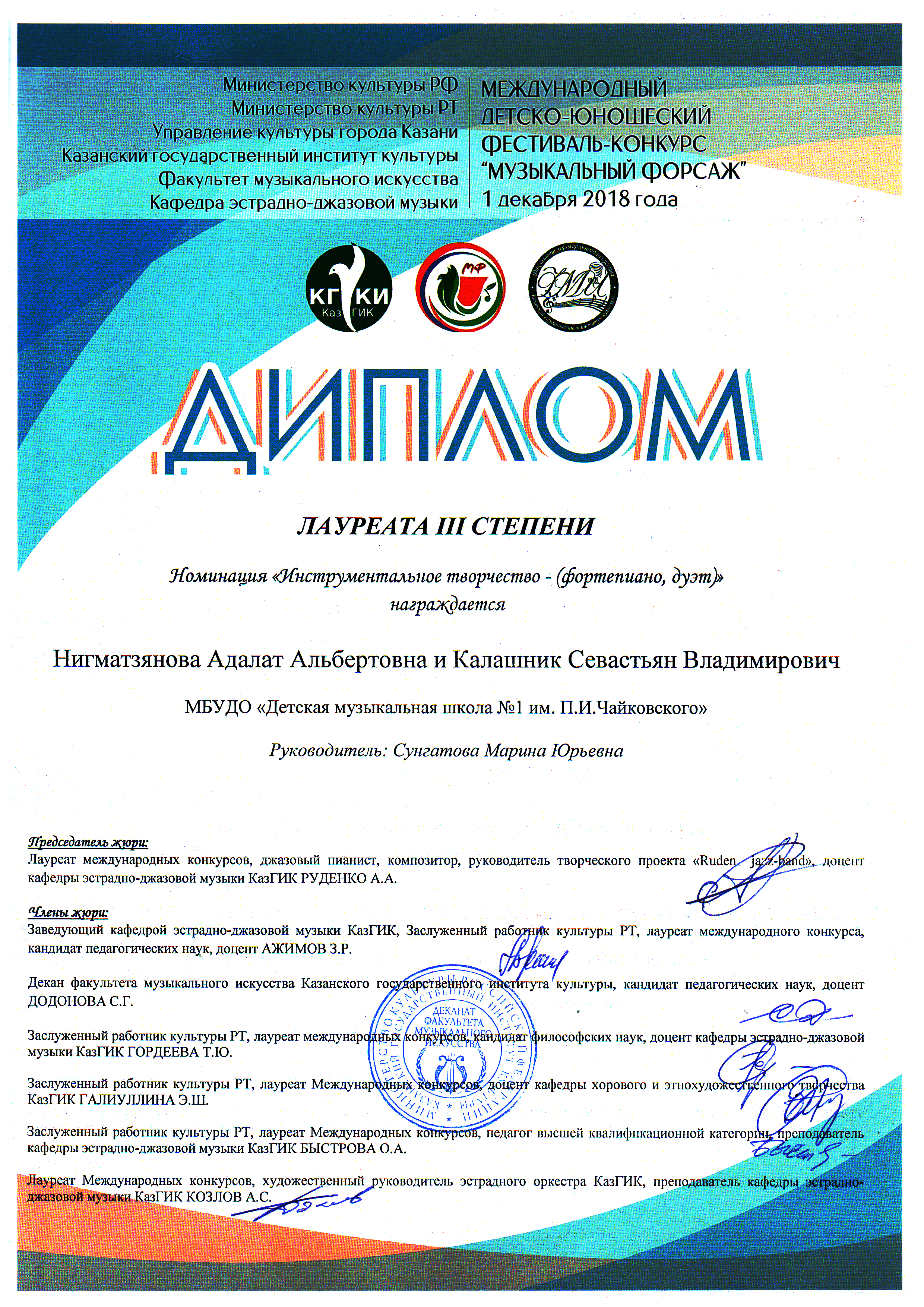 | Короткое название: | МБУДО г.Казани "Детская музыкальная школа №1 им. П.И. Чайковского" |