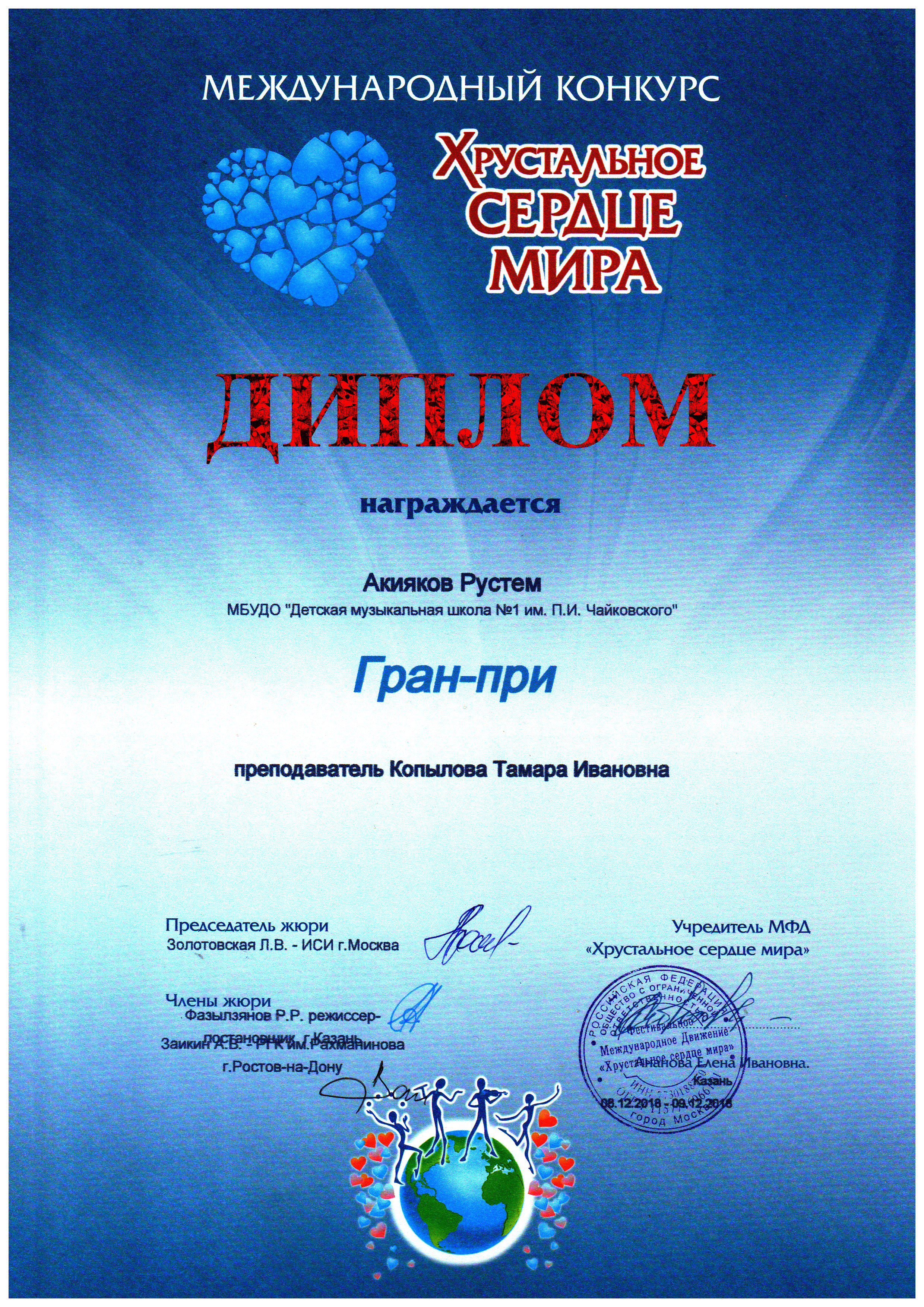 Международный конкурс "Детство цвета апельсина" - Закирова Ясина, Лауреат I степени;
