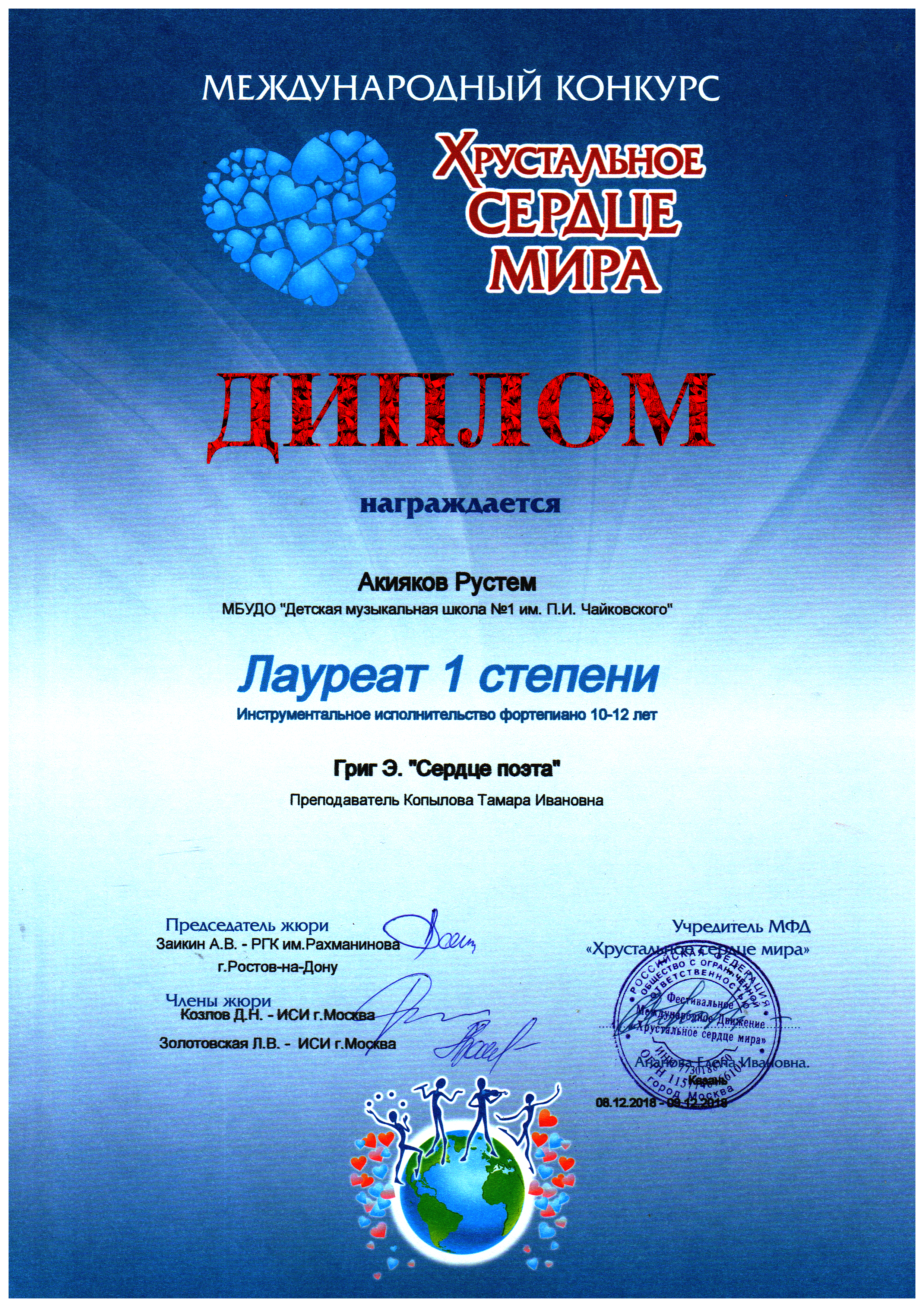 Международный фестиваль-конкурс "Взлёт" - Севастьянов Марк, Лауреат I степени;