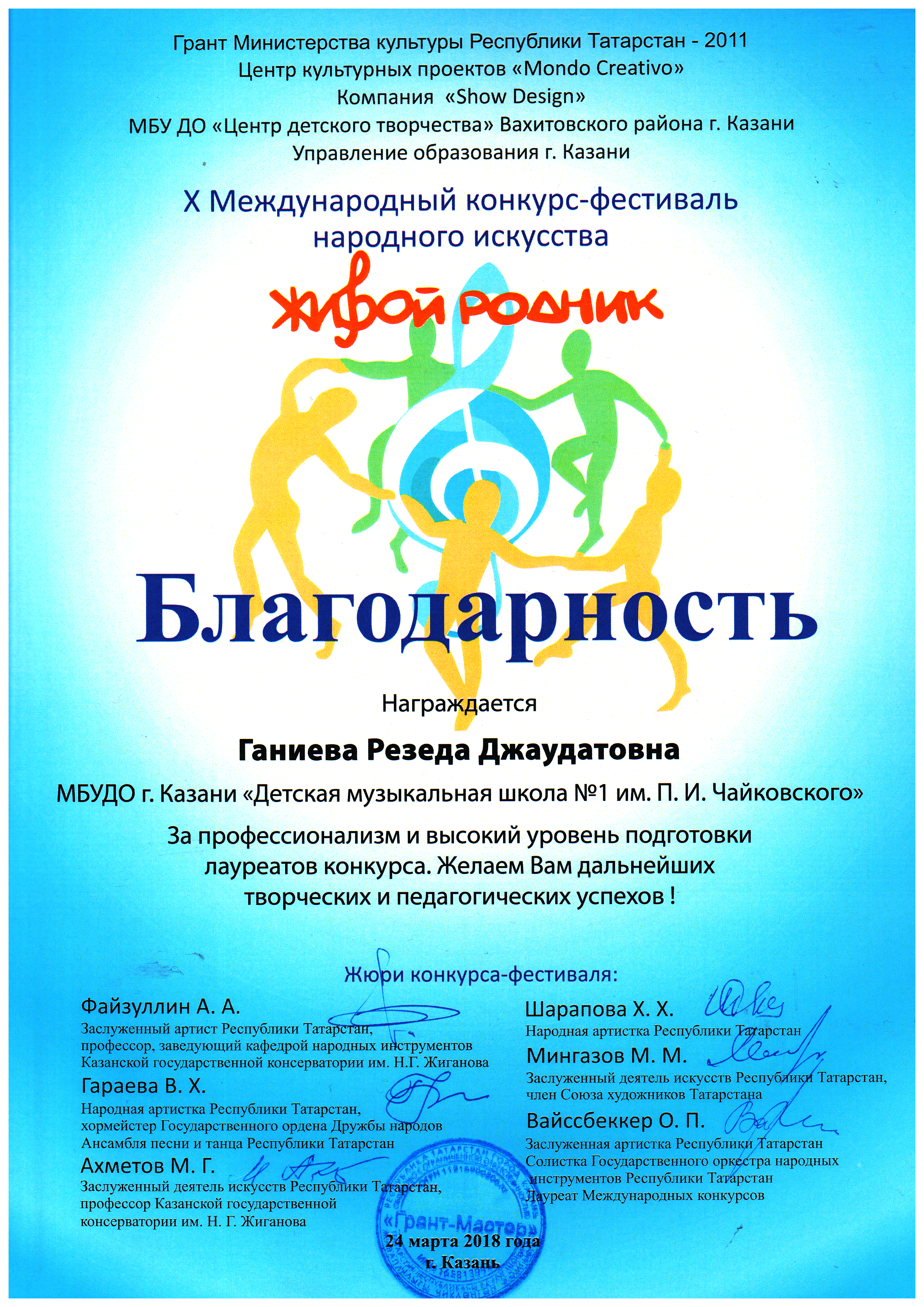 Х Международный конкурс-фестиваль народного искусства "Живой родник" - Ганиева Р.Д., Благодарность;