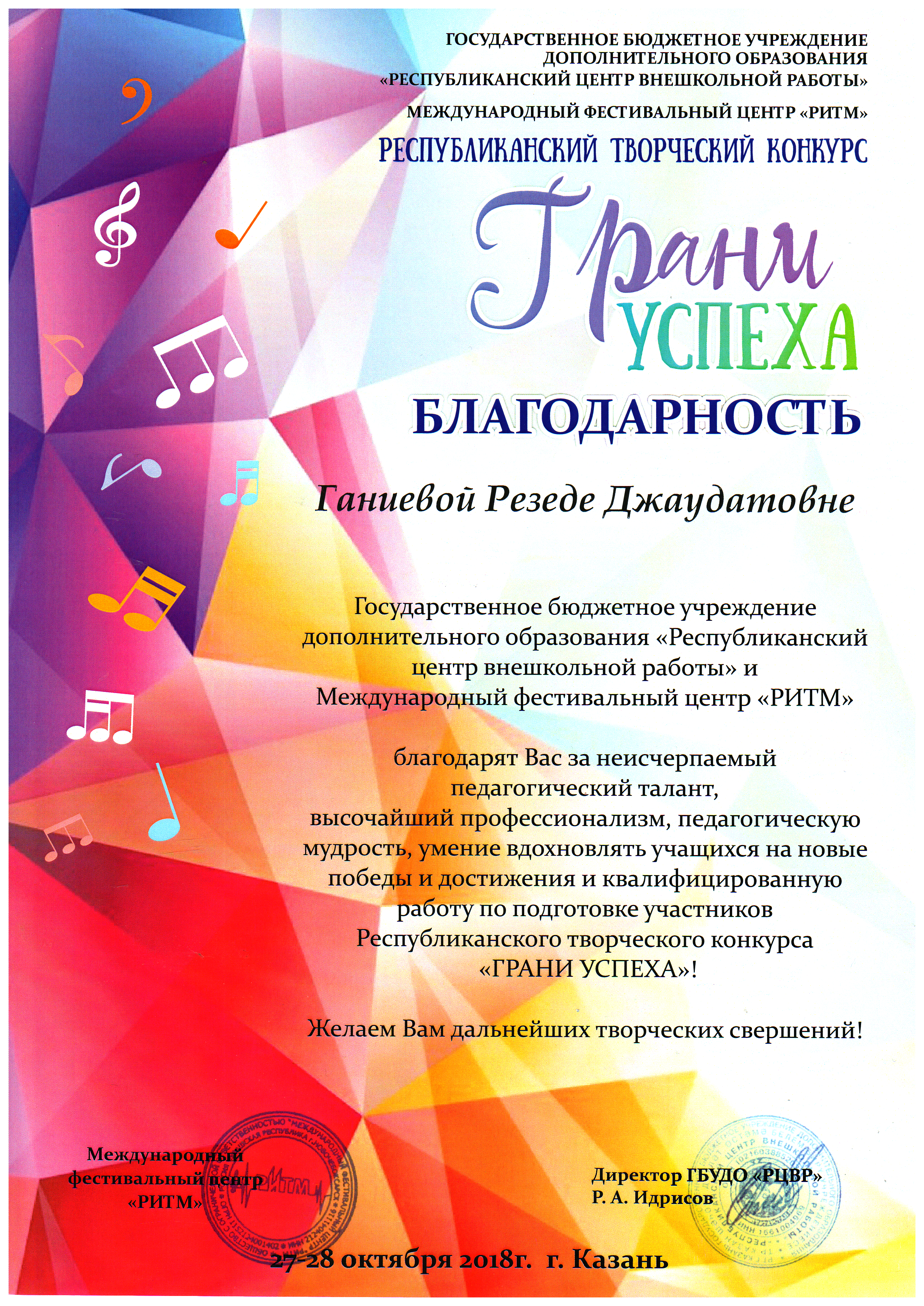 Республиканский творческий конкурс "Грани успеха" - Генеева Р.Д., Благодарность;