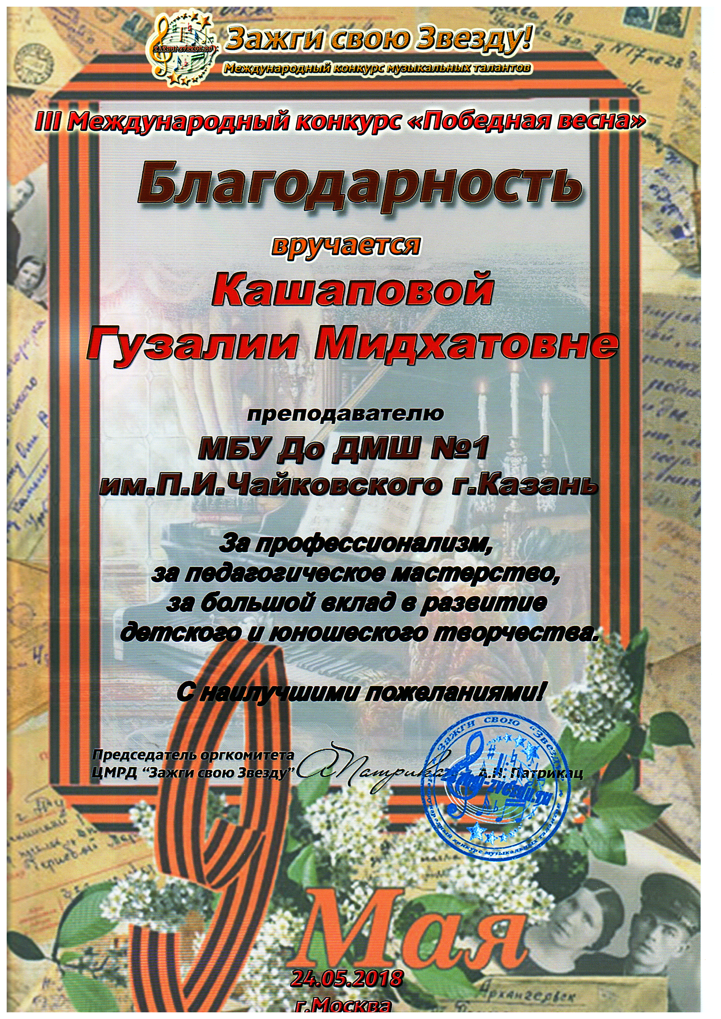 III Международный конкурс "Победная весна" - Кашапова Г.РМ., Благодарность;