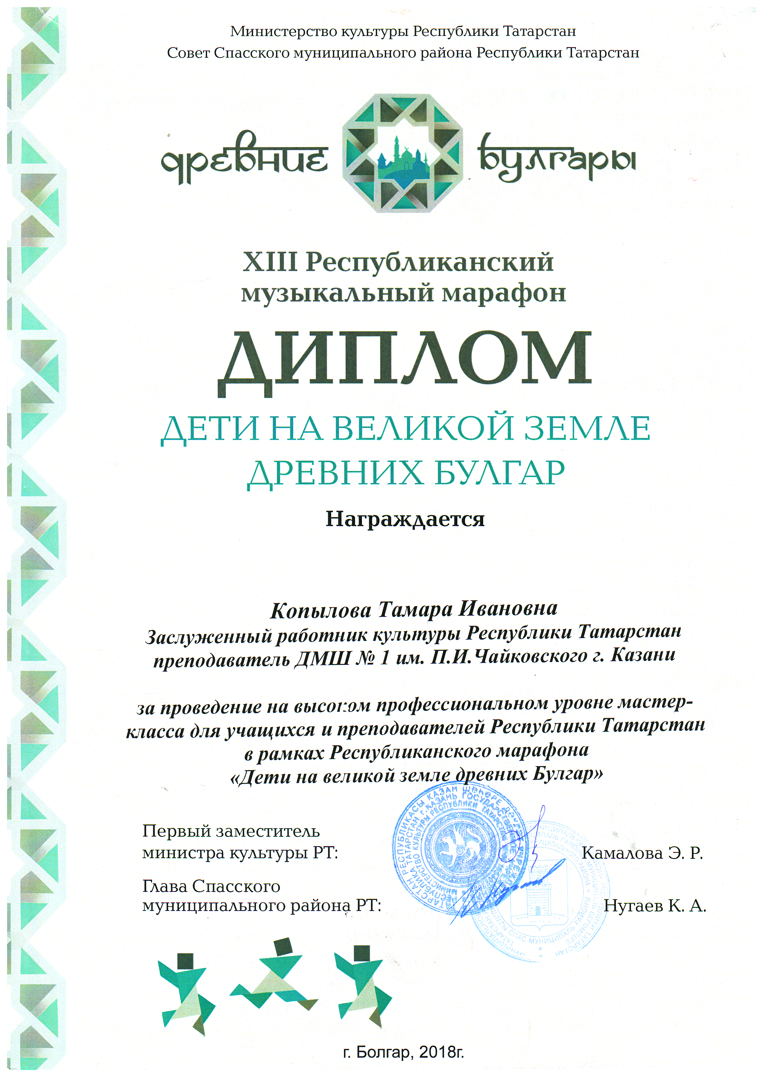 Международный конкурс молодых исполнителей им.Р.Гуммерта - Кашапова Г.М., Диплом;