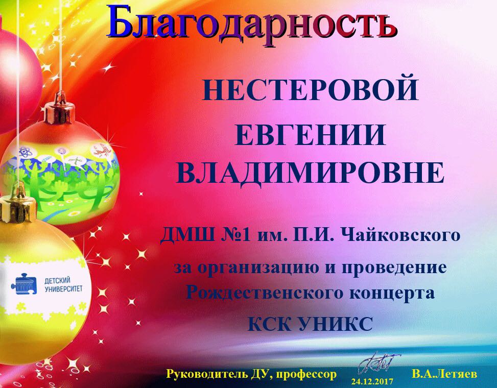 Рождественский концерт КСК "УНИКС" - Нестерова Е.В., Благодарность;