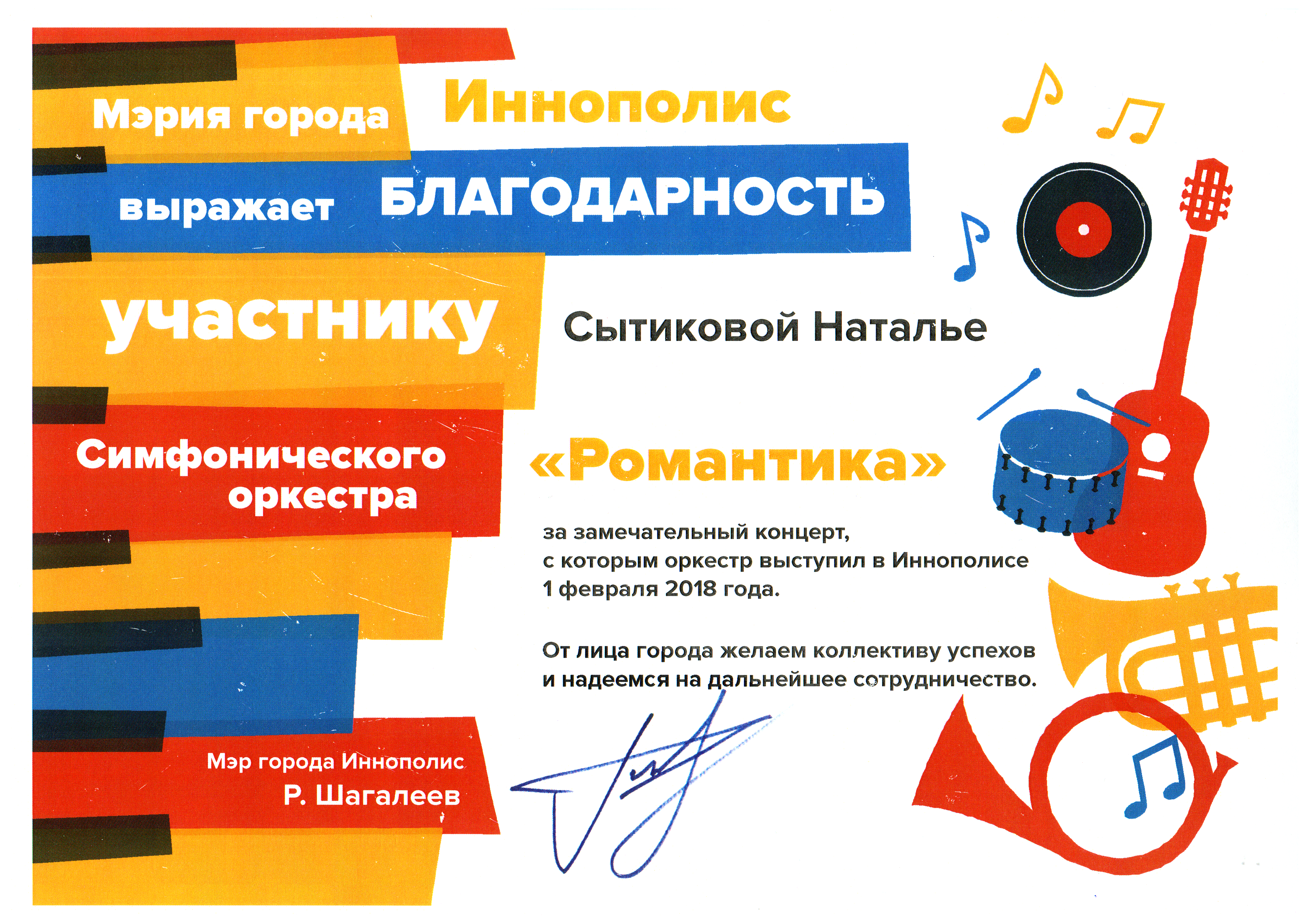 Управление культуры ИКМО г.Казани - Сытикова Н.А., Благодарственное письмо;