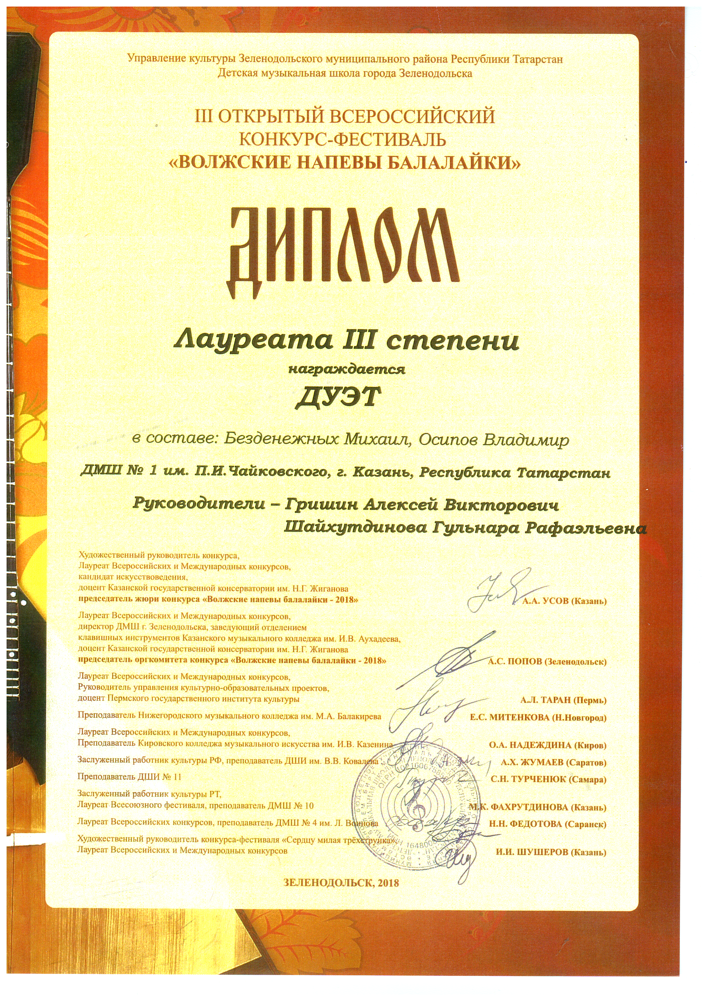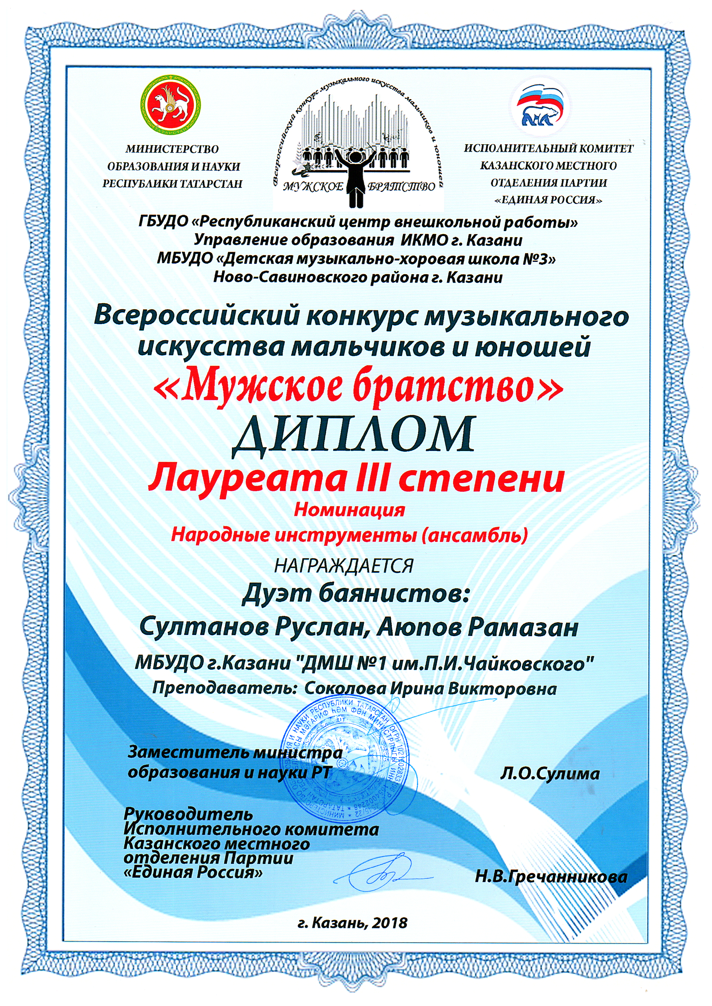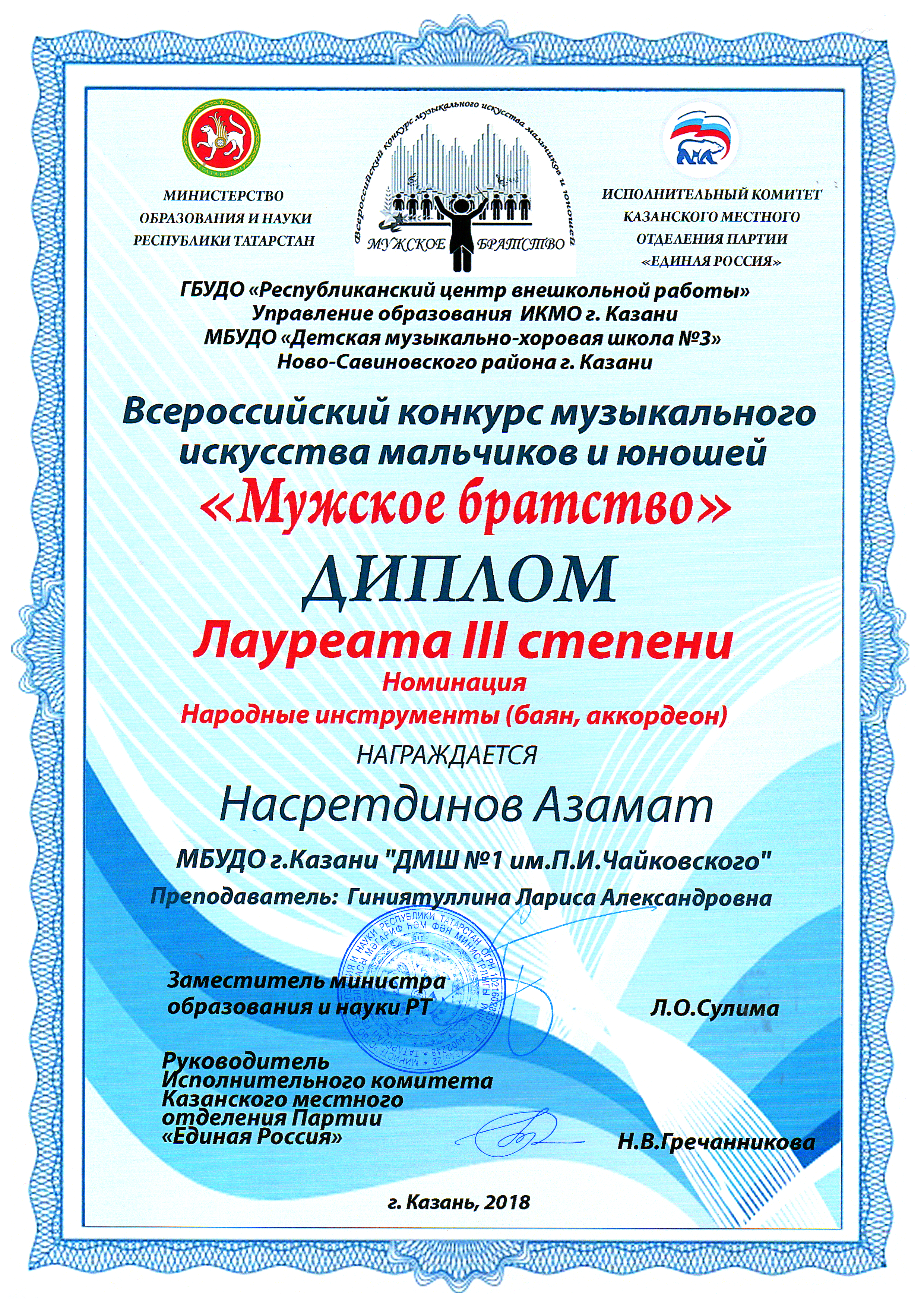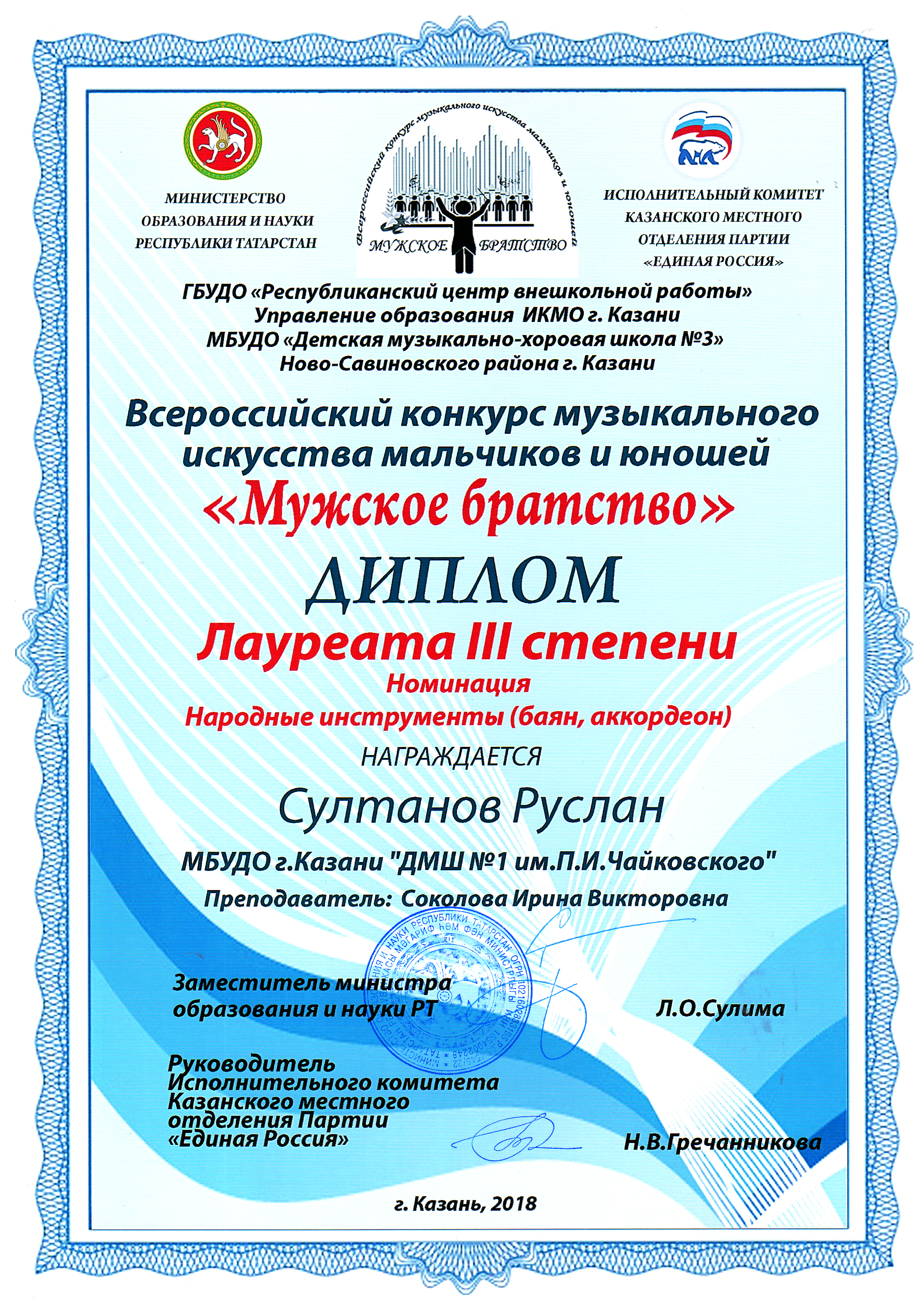 Третий Всероссийский конкурс "Таланты России" - Галеев Роберт, Лауреат III степени;