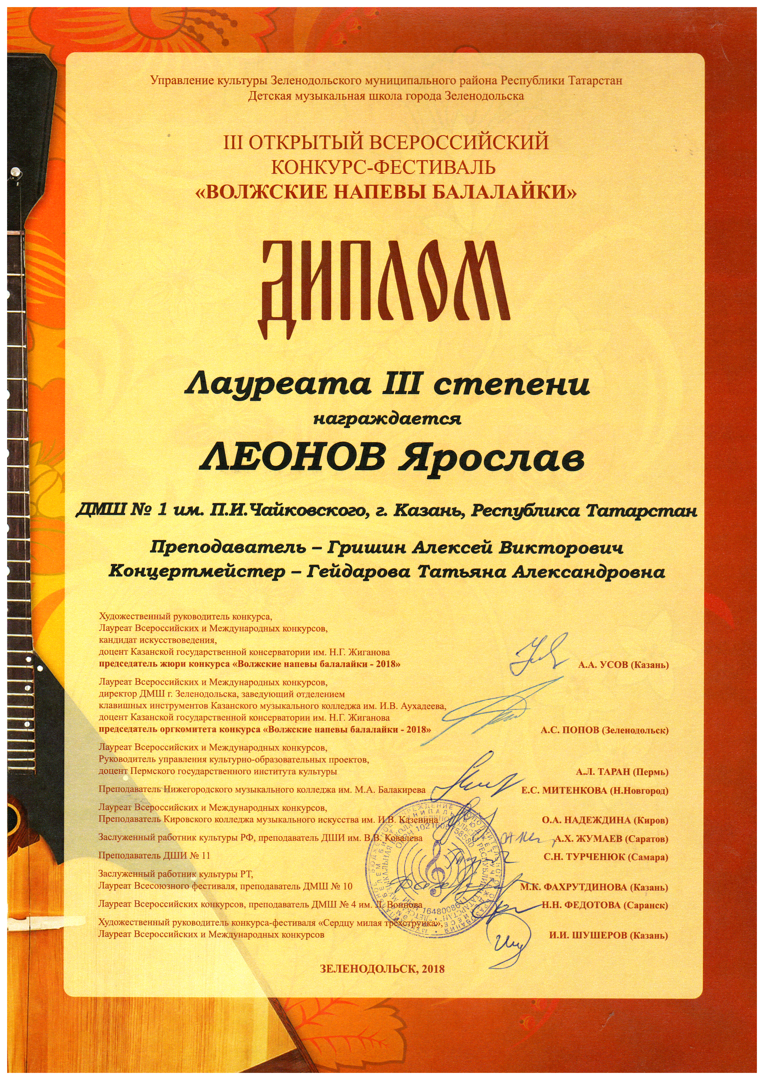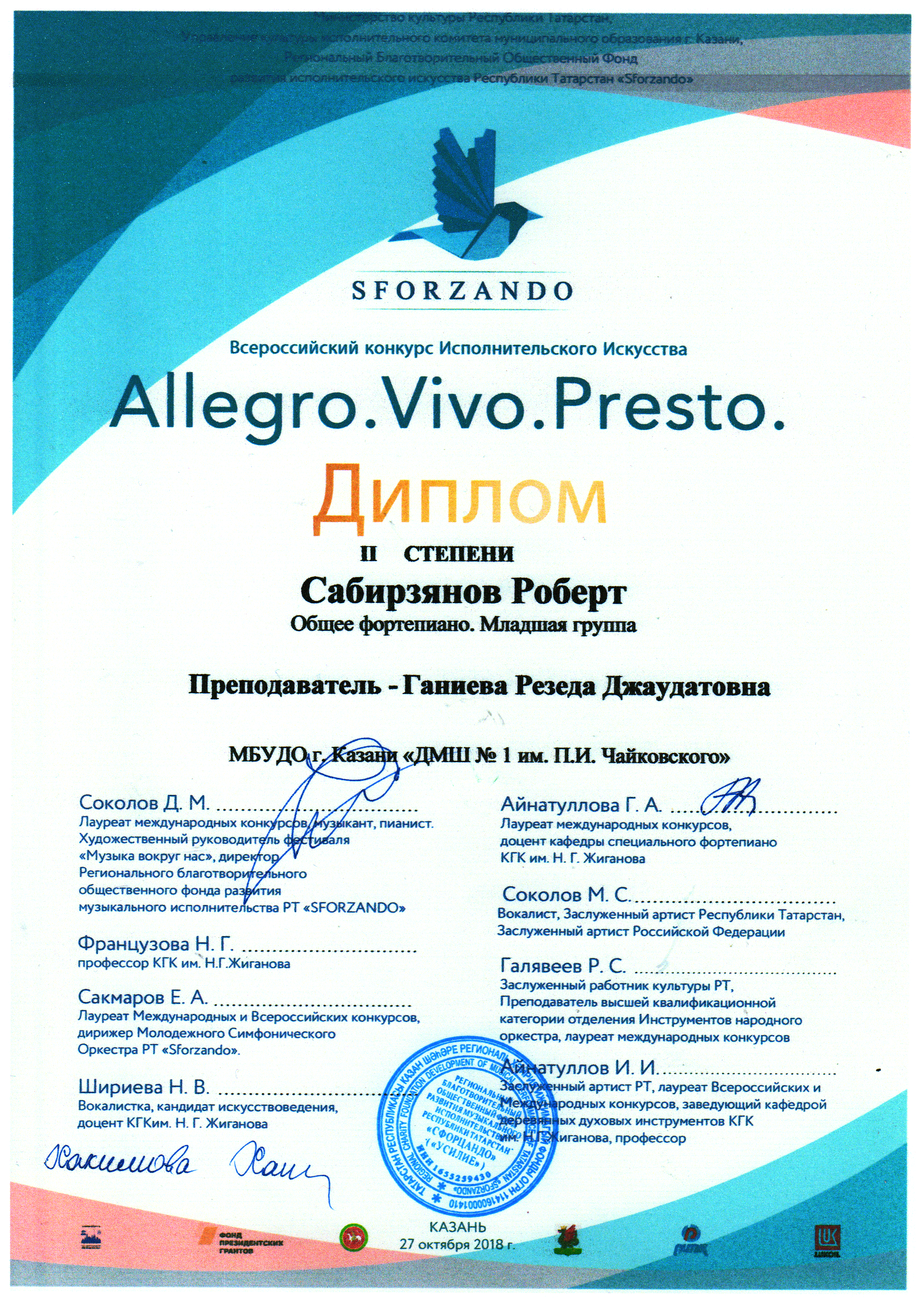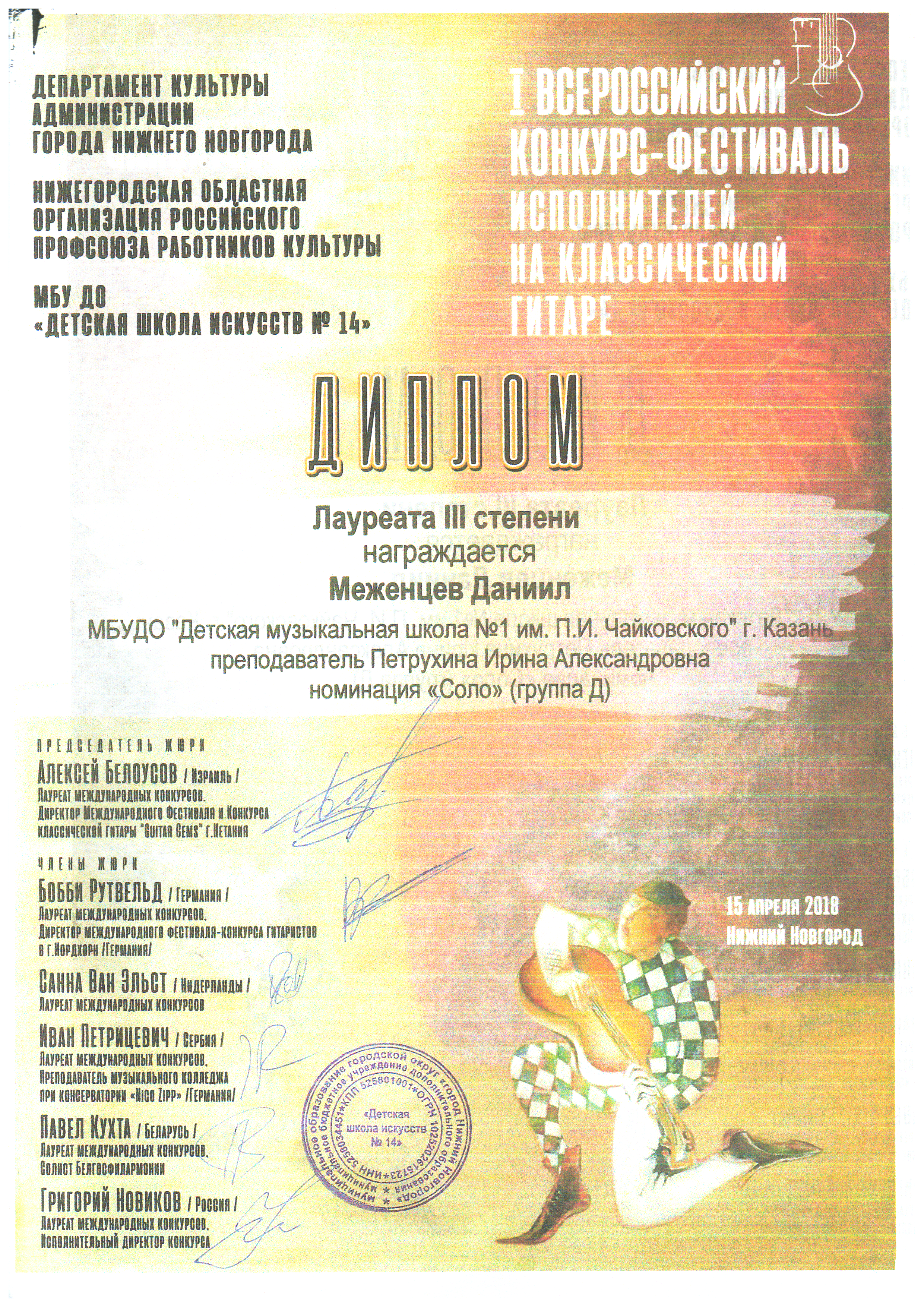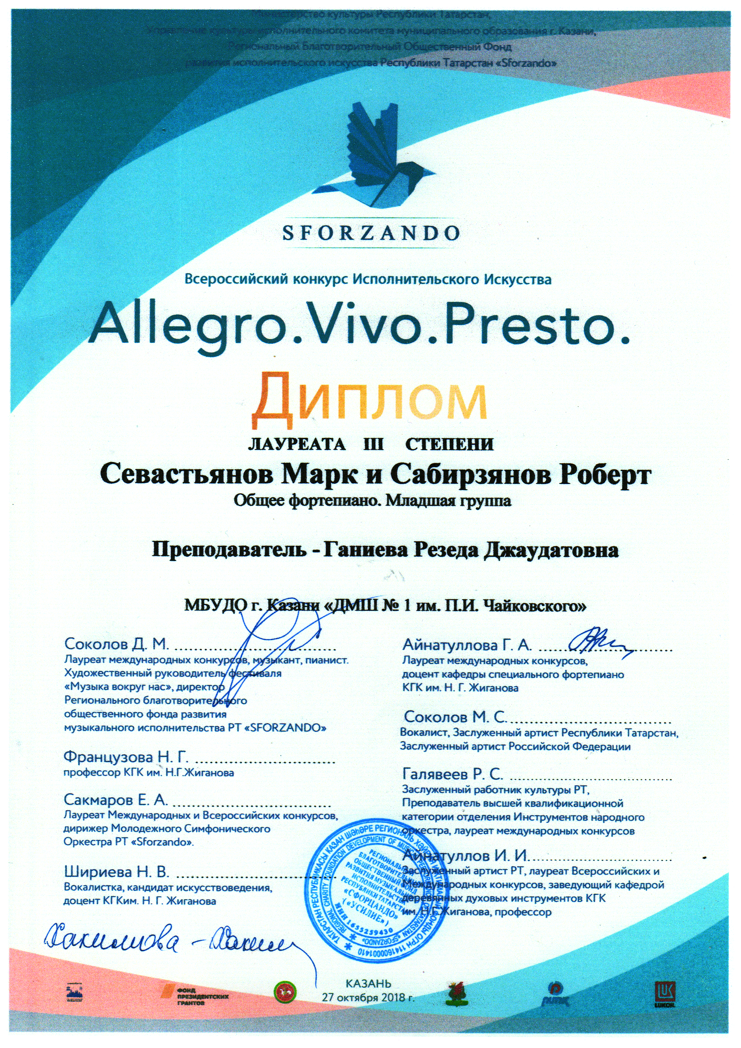 Третий Всероссийский конкурс "Таланты России" - Галеев Роберт, Лауреат III степени;