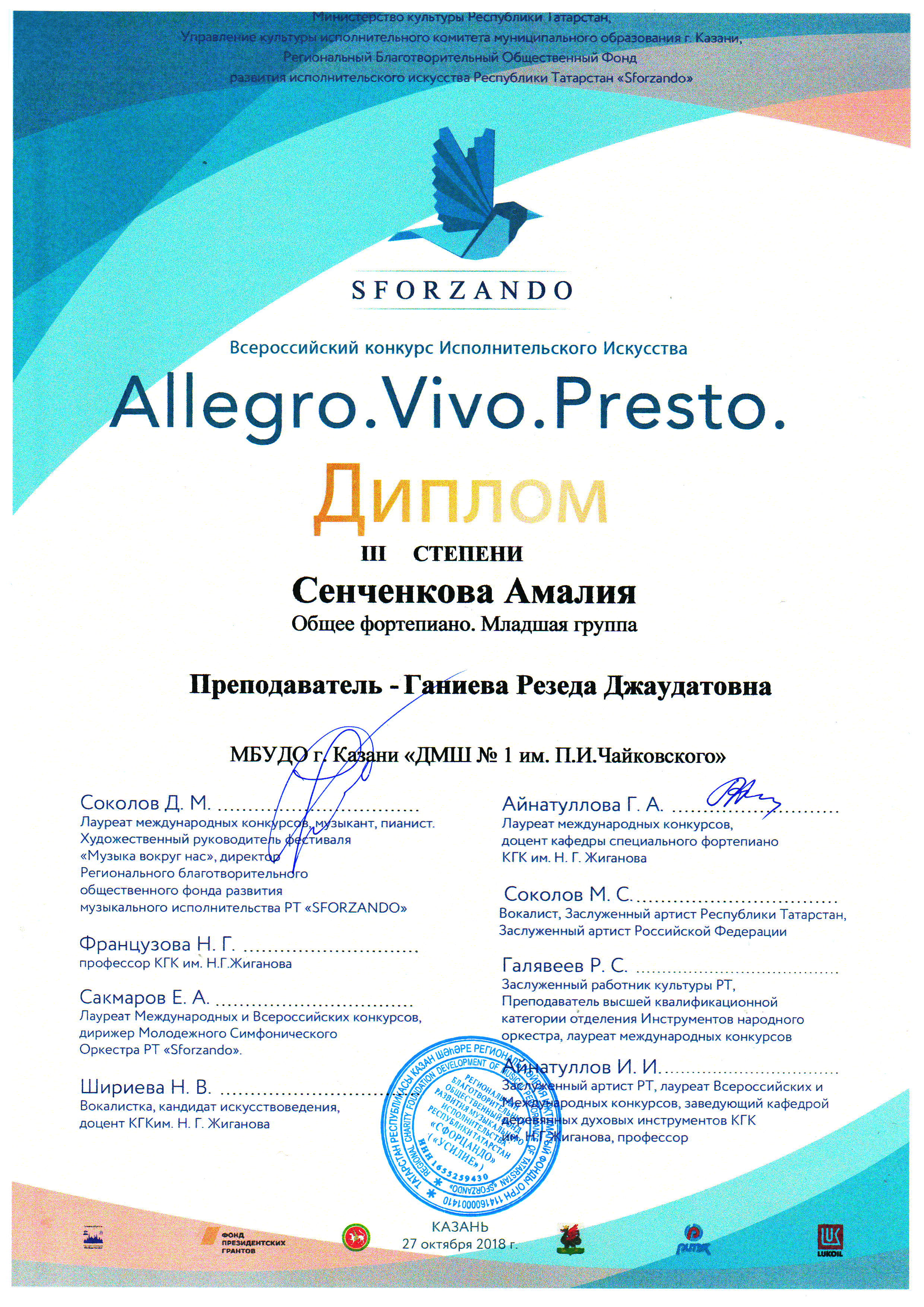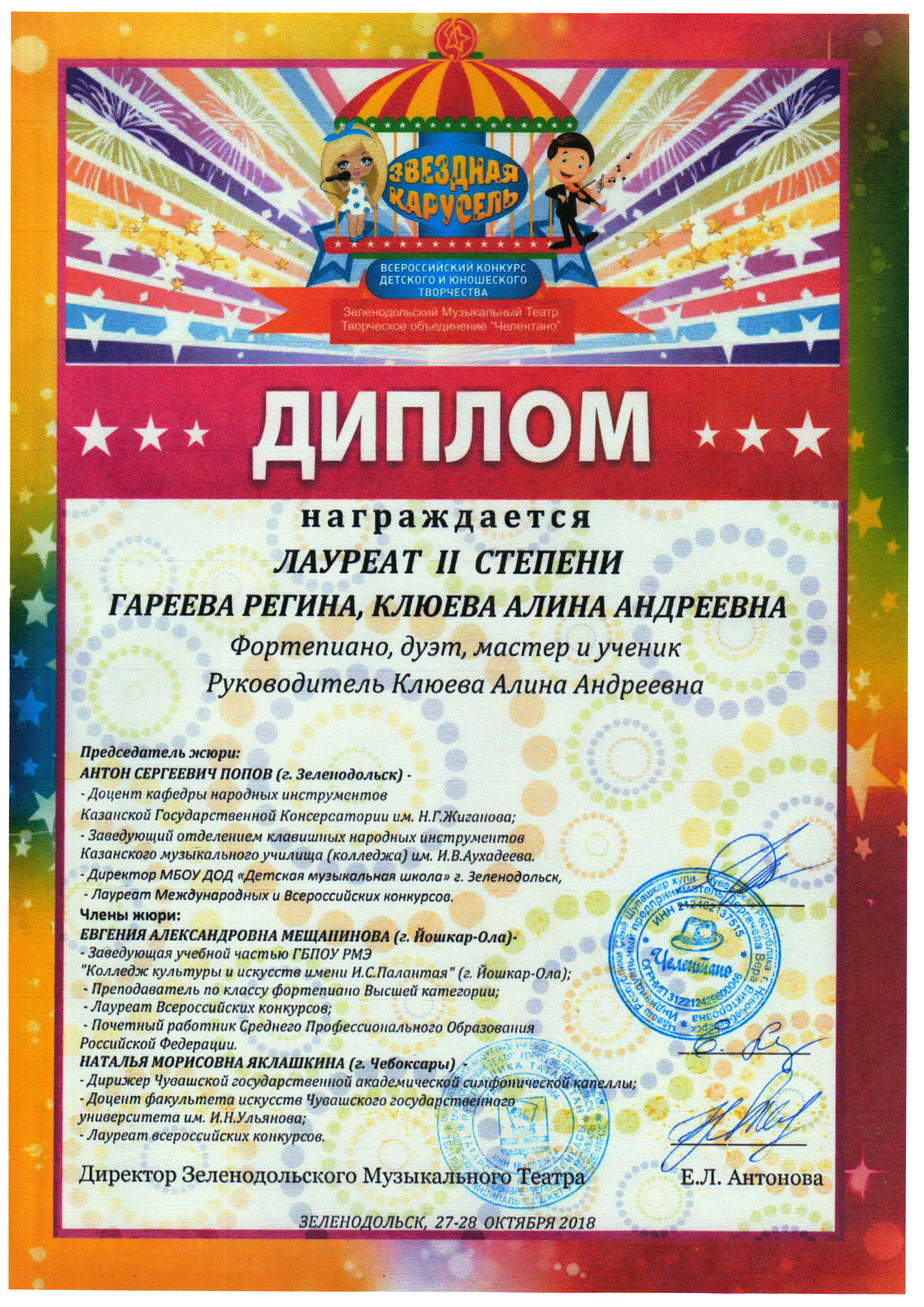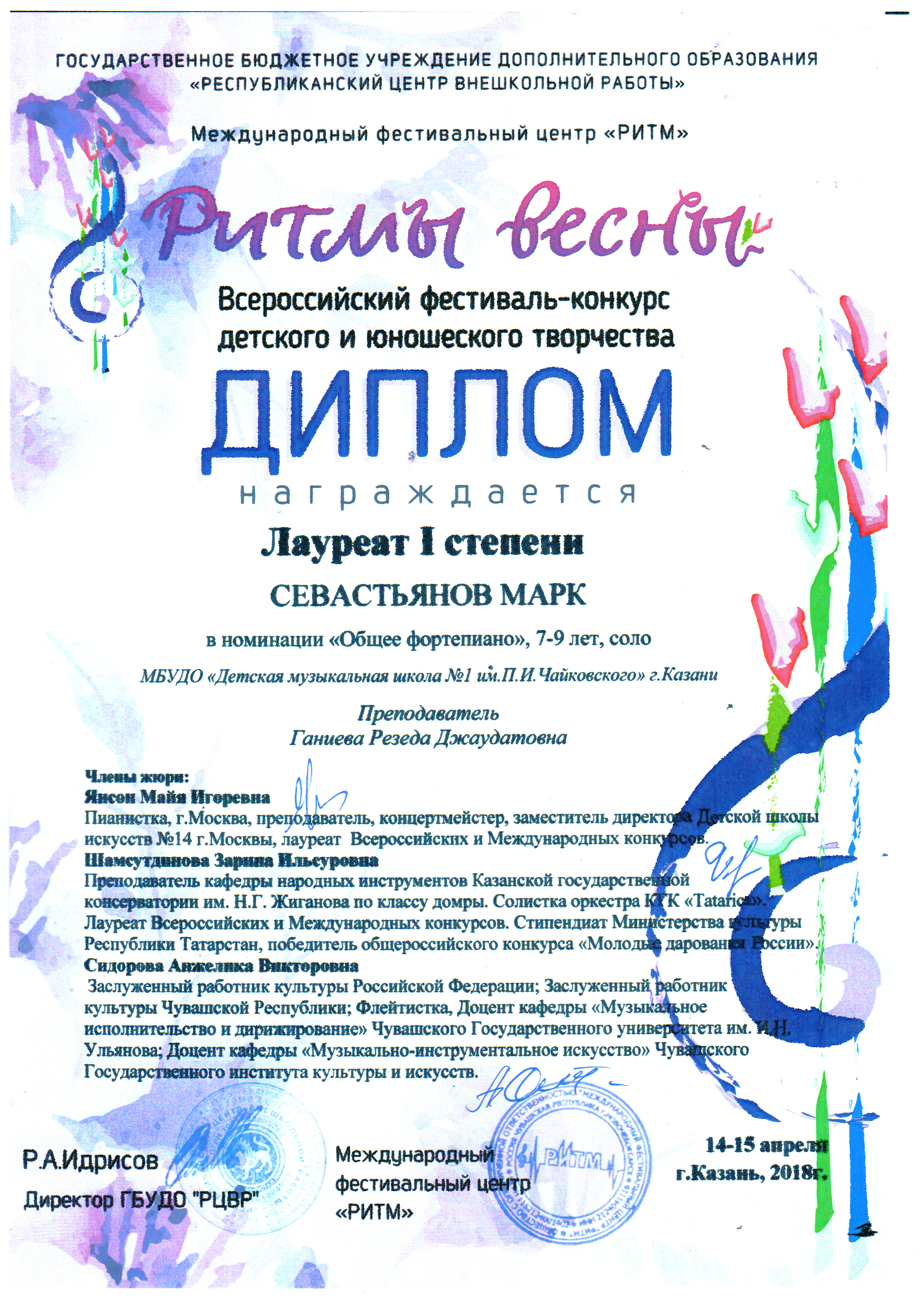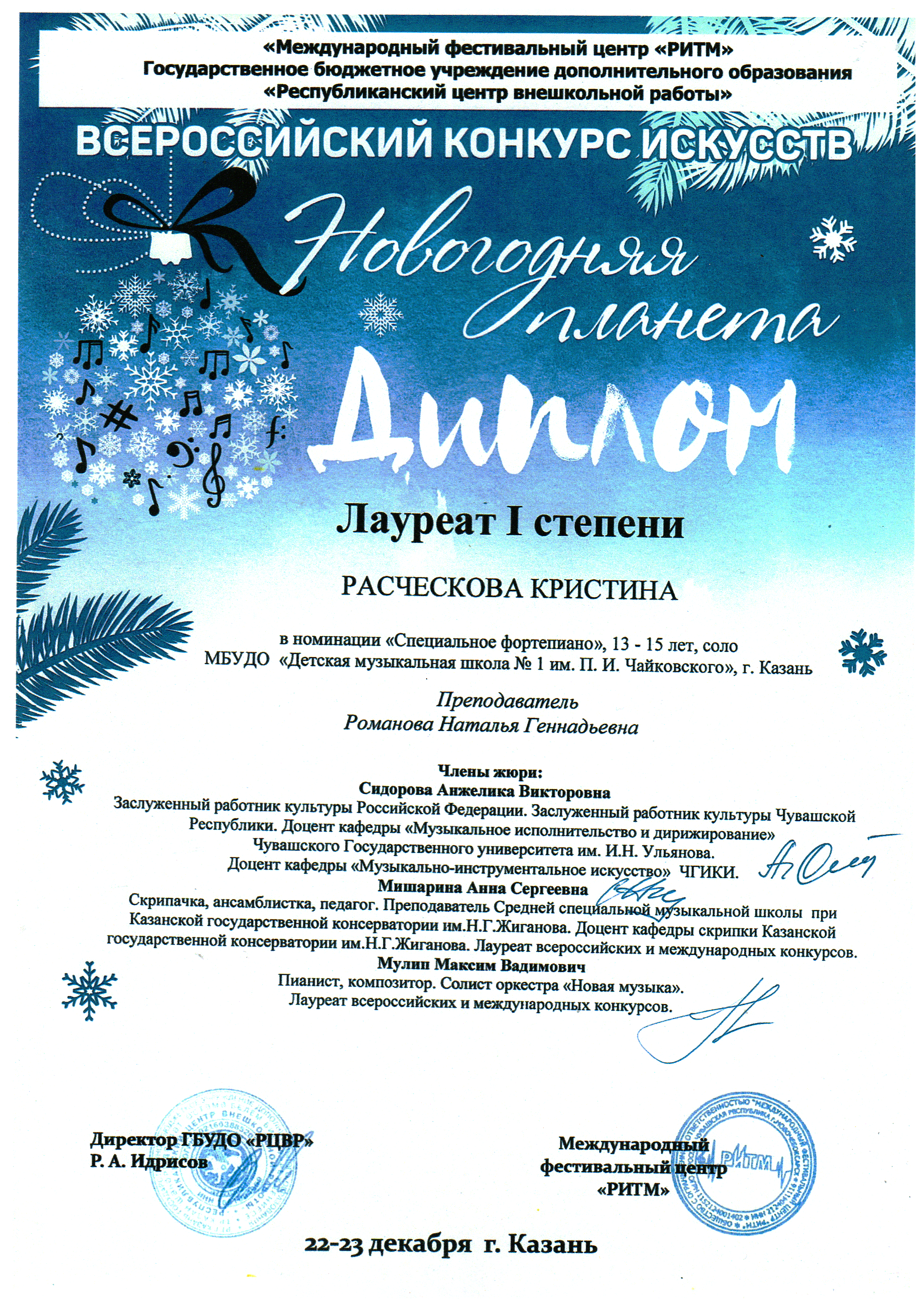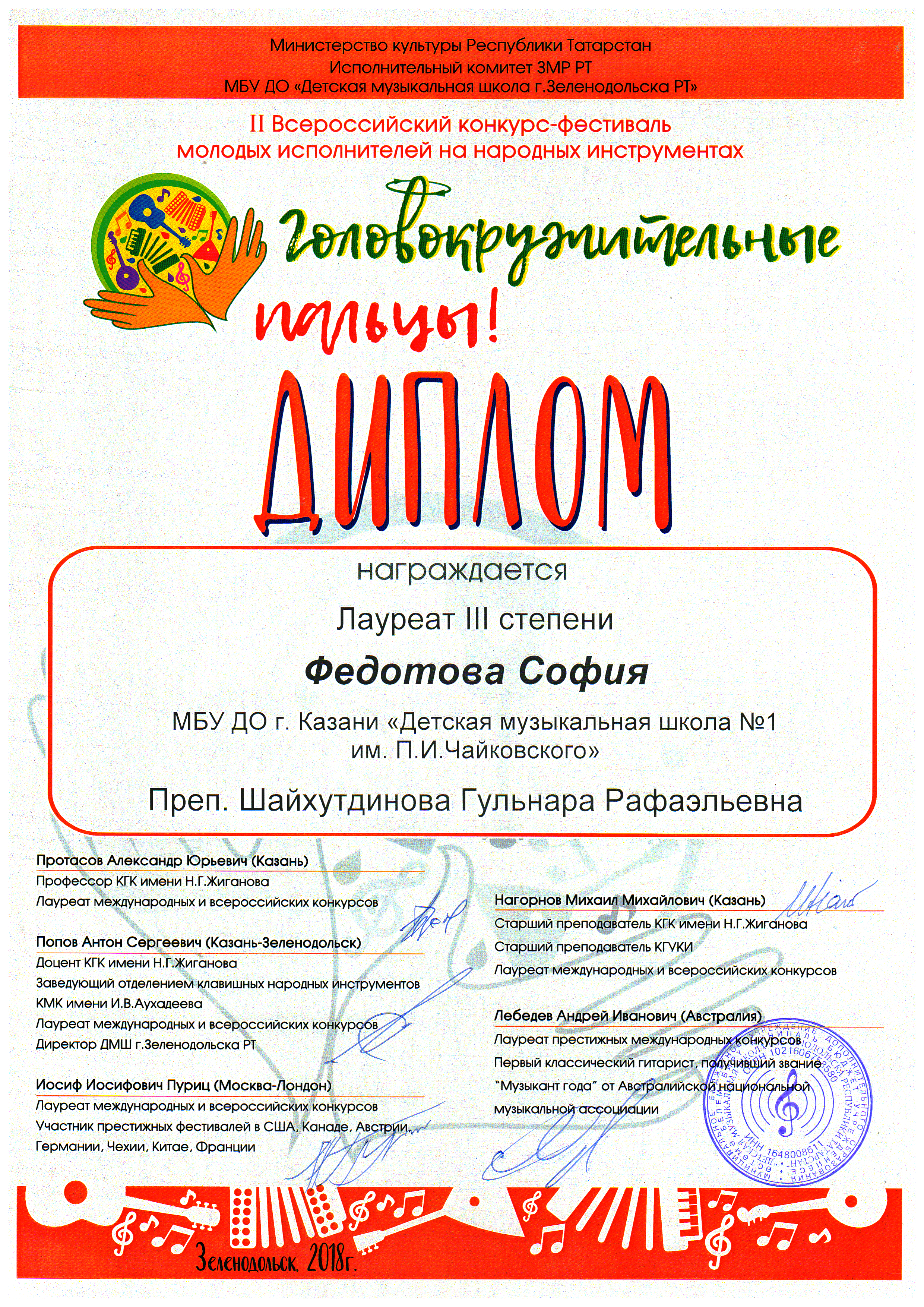 II Всероссийский конкурс юных пианистов им.Н.Г.Жиганова - Феоктистова Анастасия, Дипломант;