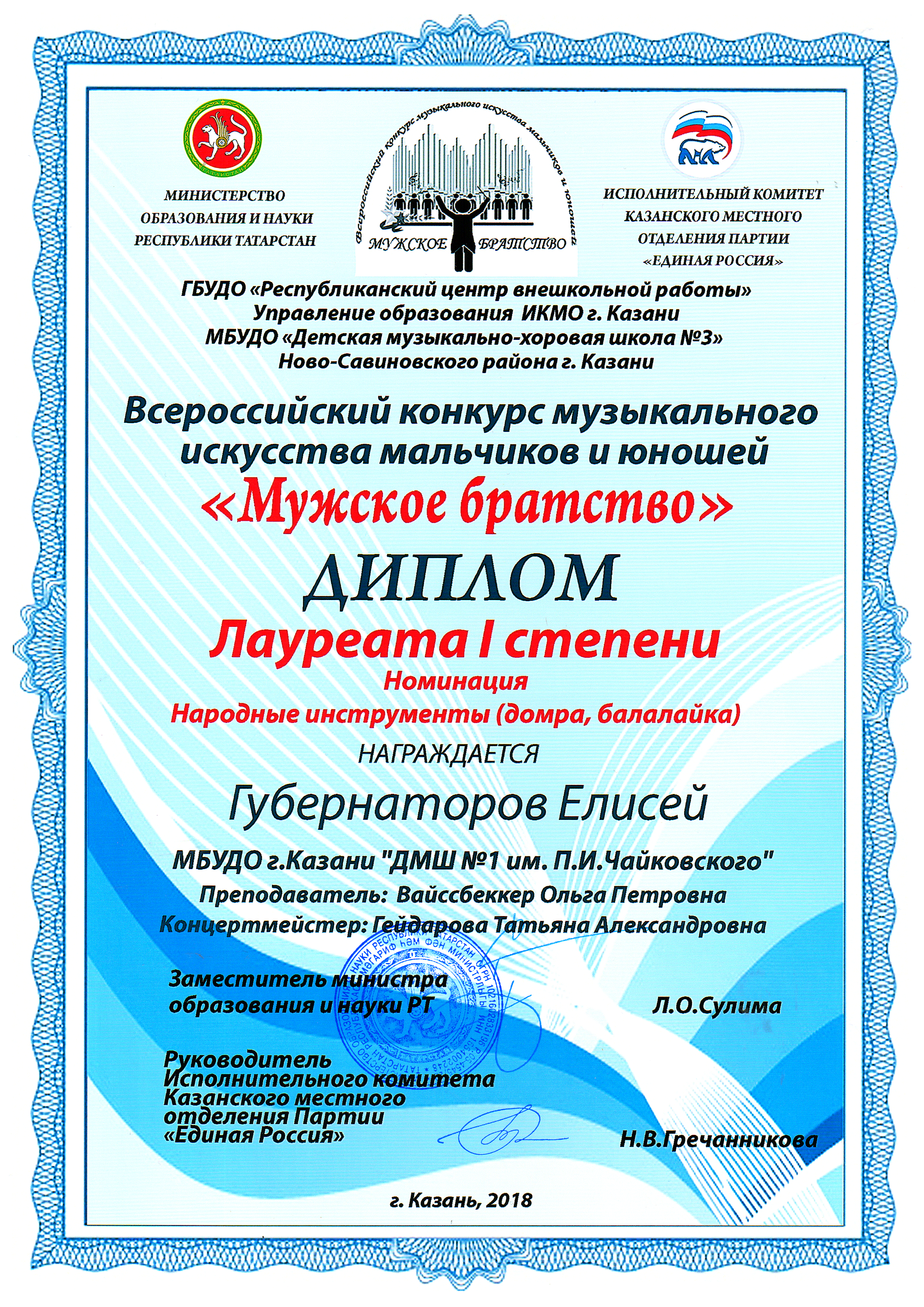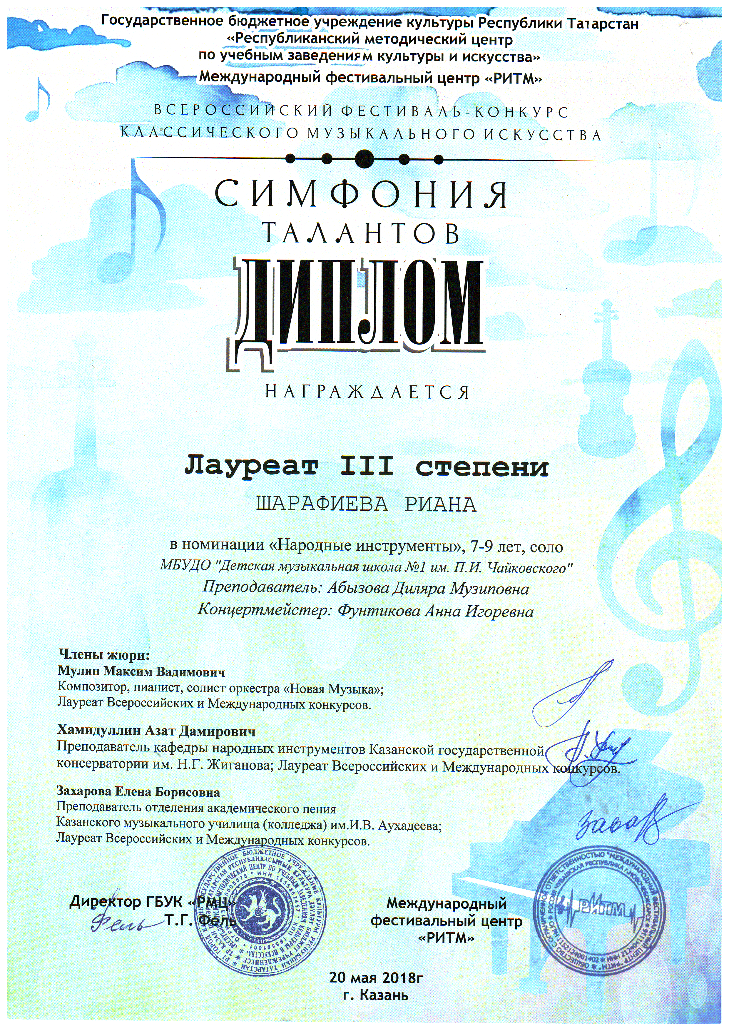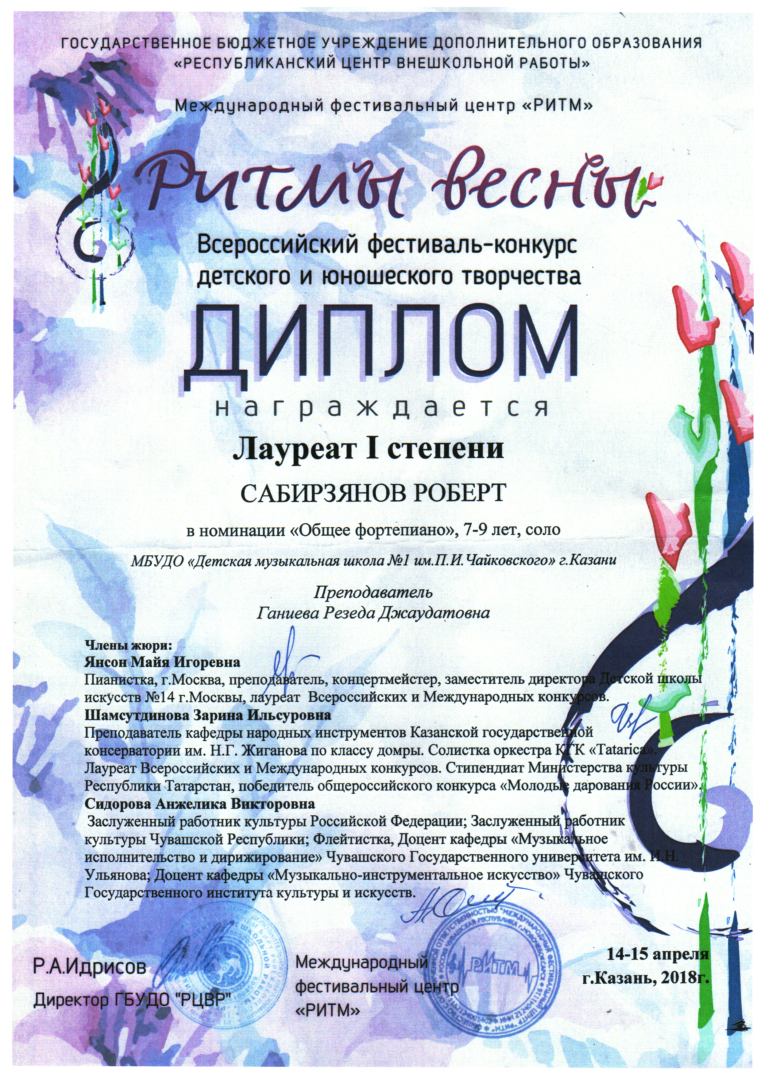 | Короткое название: | МБУДО г.Казани "Детская музыкальная школа №1 им. П.И. Чайковского" |