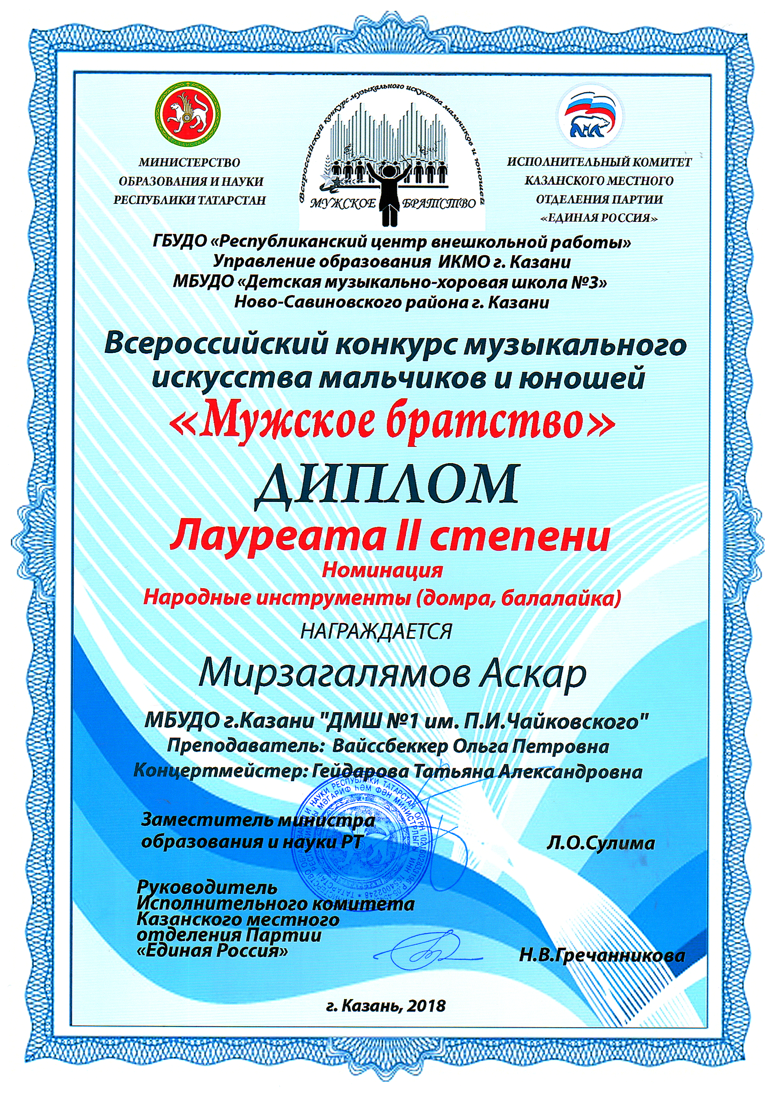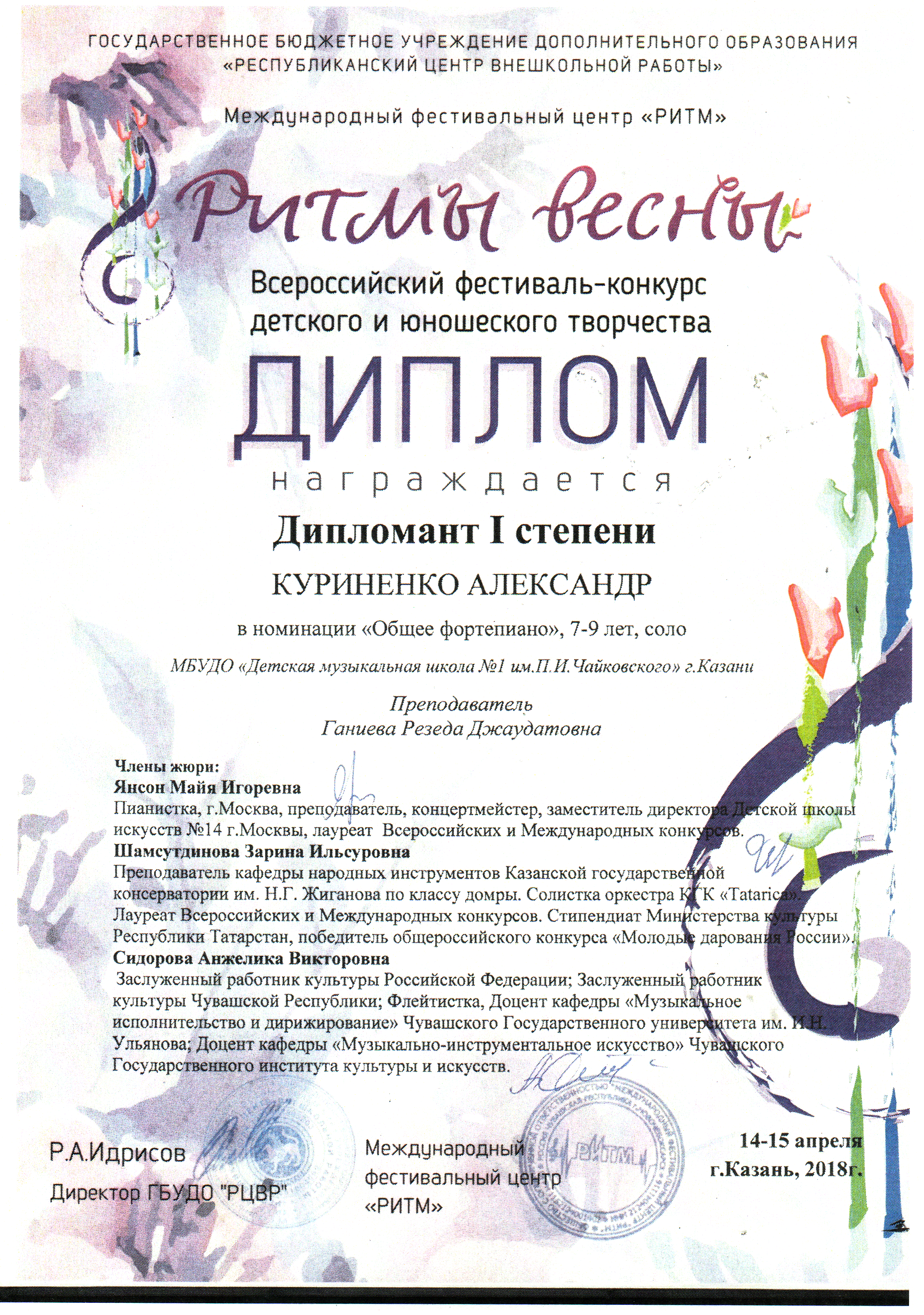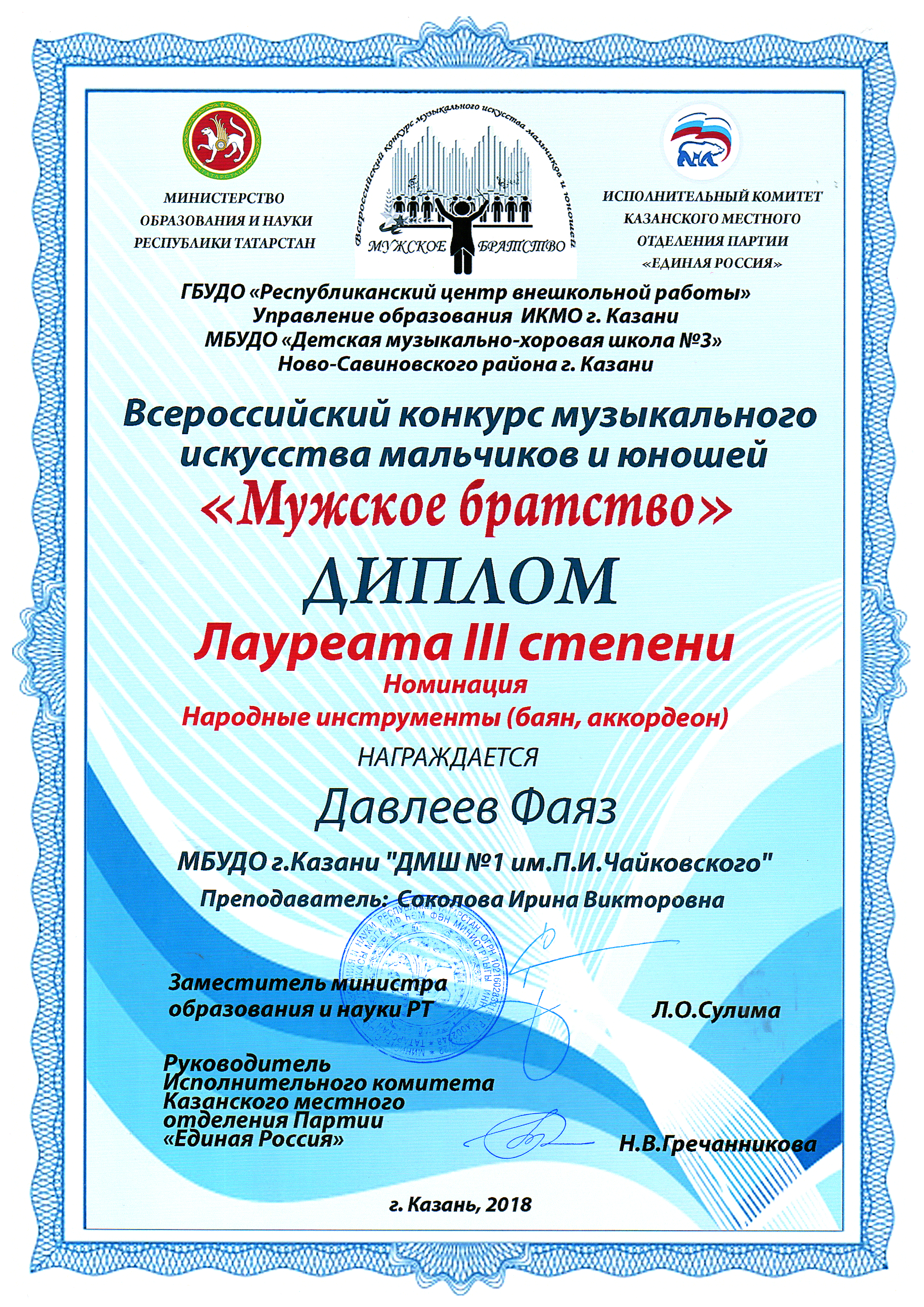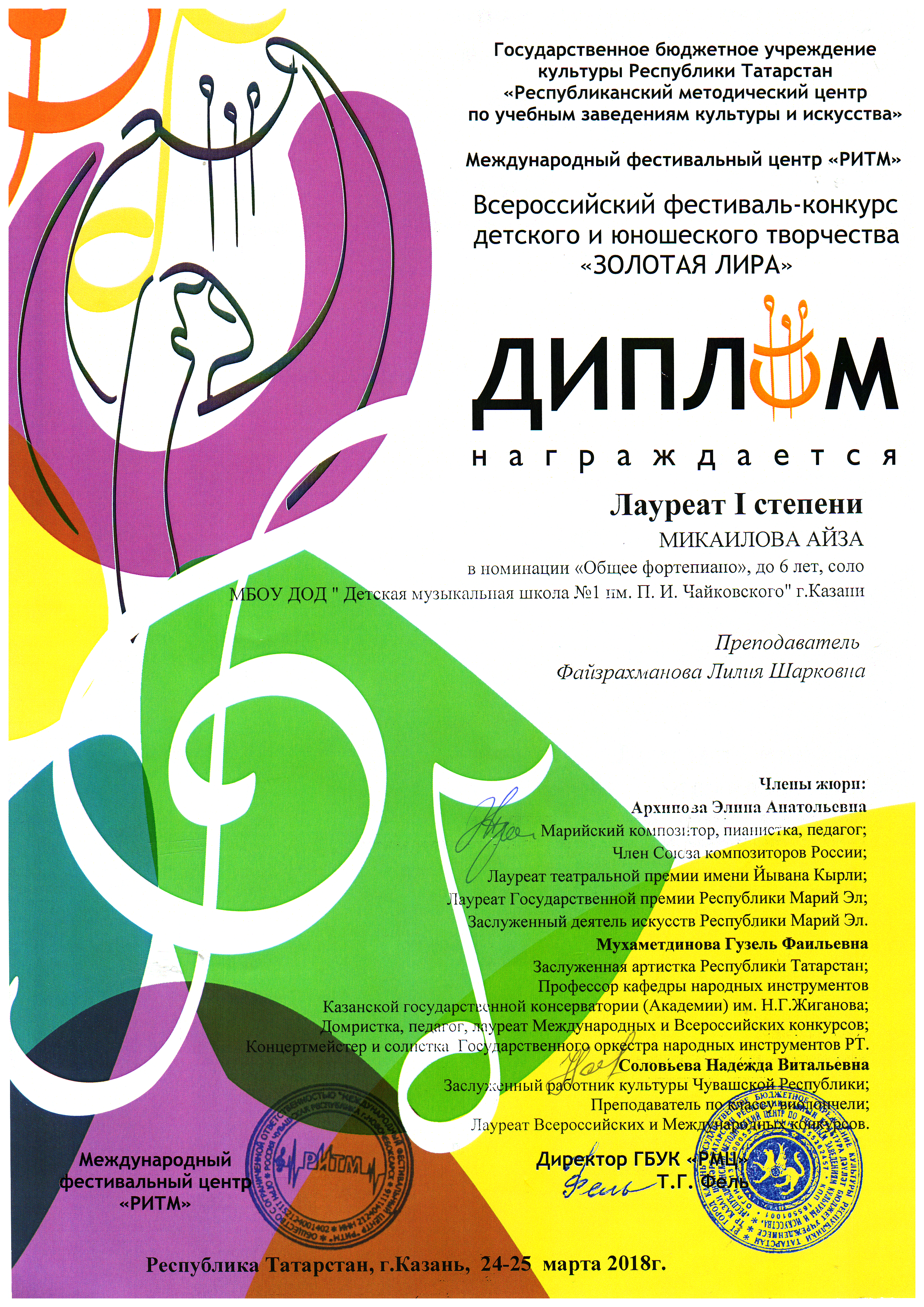 | Короткое название: | МБУДО г.Казани "Детская музыкальная школа №1 им. П.И. Чайковского" |