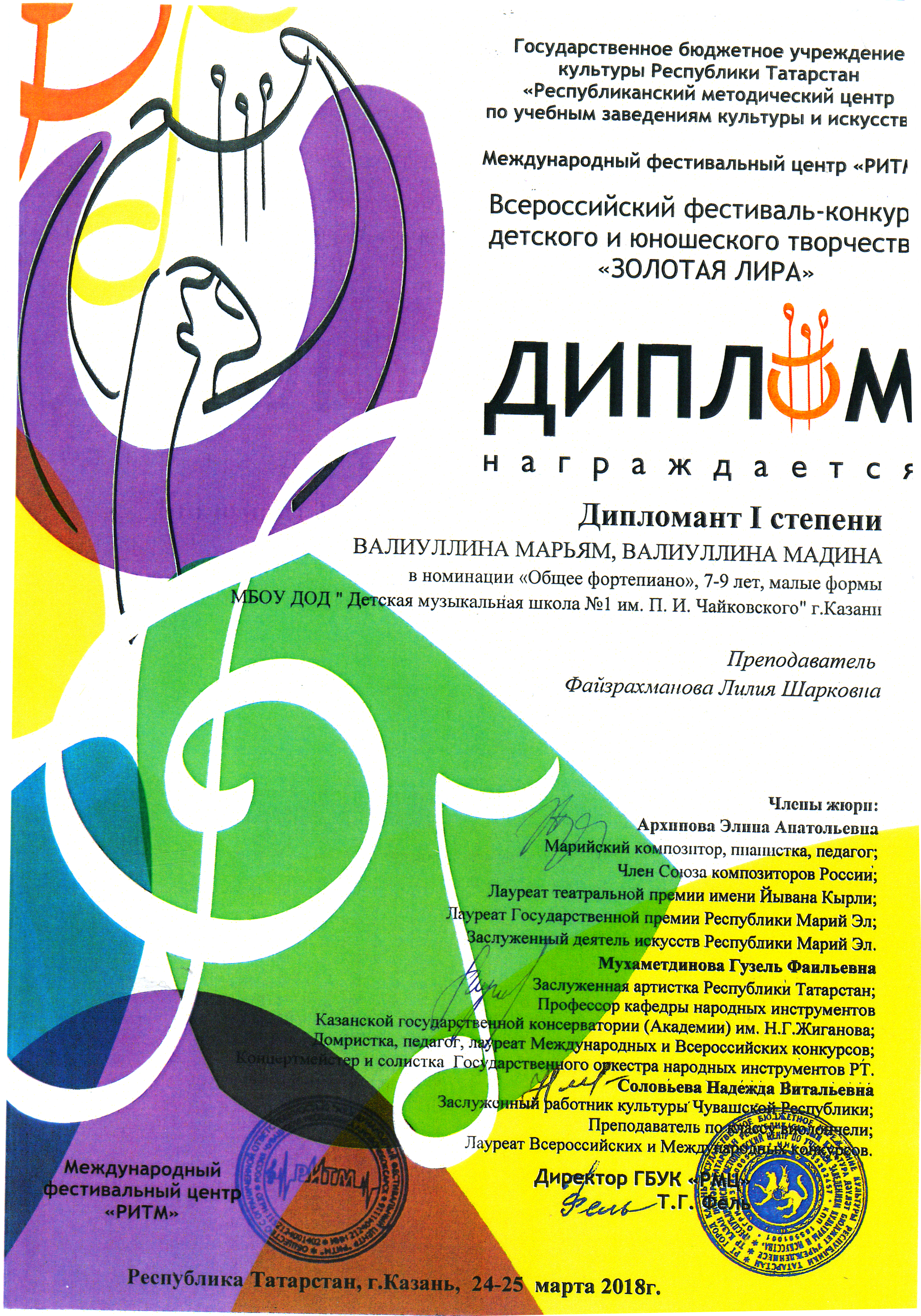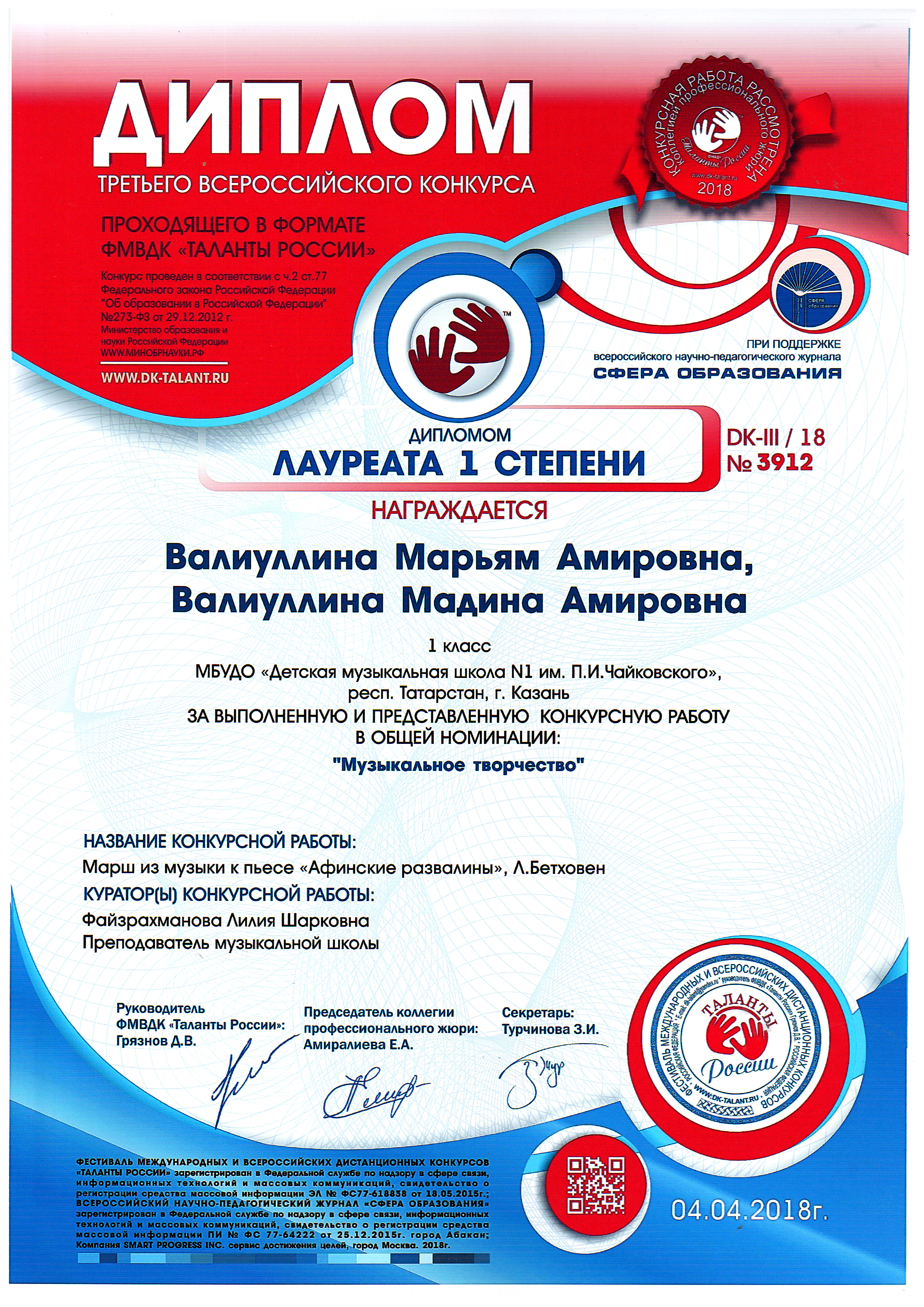 Третий Всероссийский конкурс "Таланты России" - Валиуллины Мадина и Марьям, Лауреаты I степени;