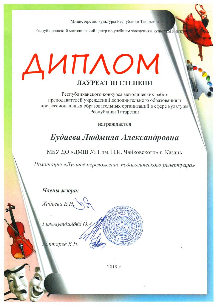 Республиканский конкурс методических работ преподавателей УДО - Будаева Л.А., Лауреат III степени;
