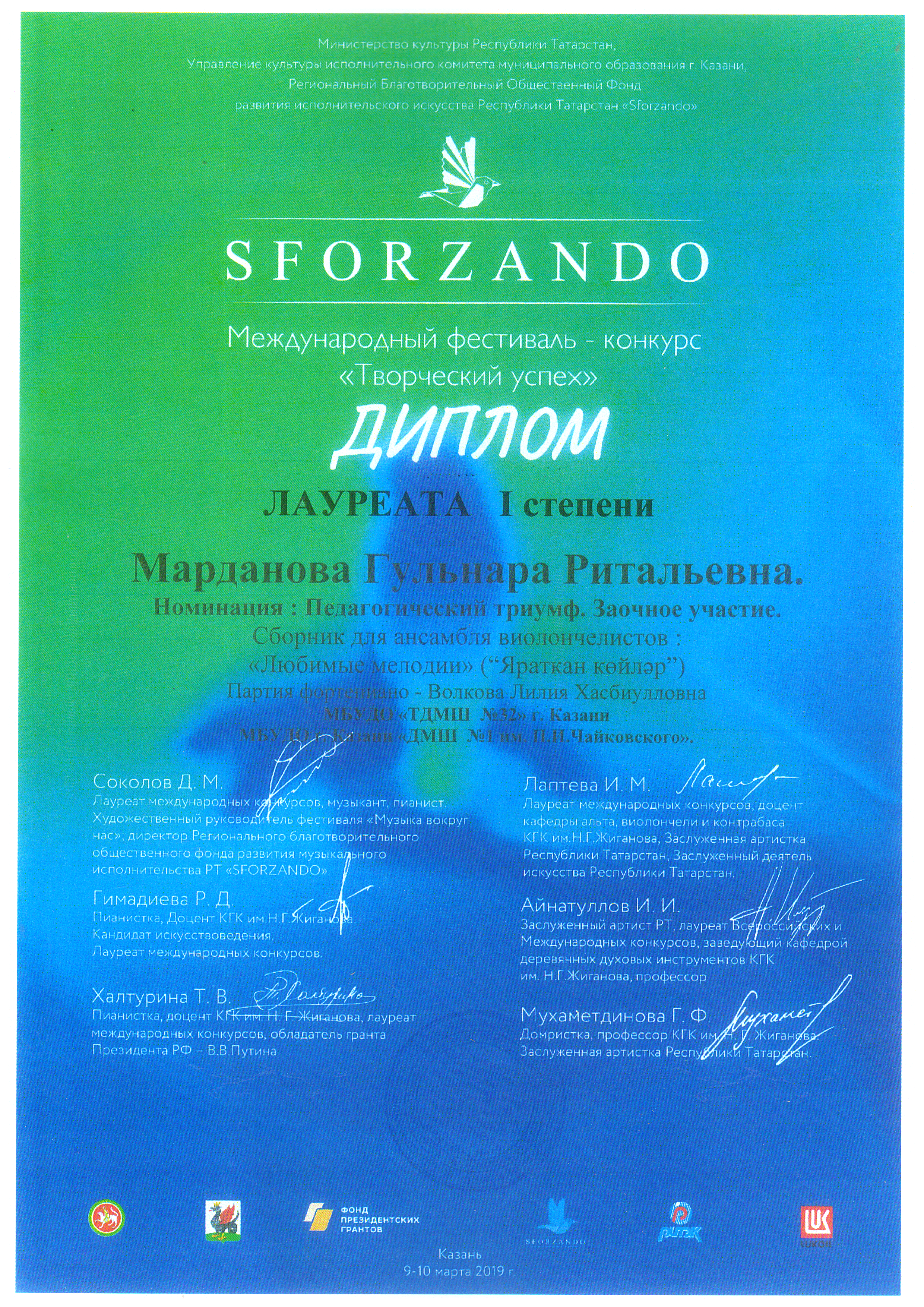 Международный фестиваль-конкурс "Творческий успех" - Марданова Г.Р., Лауреат I степени;