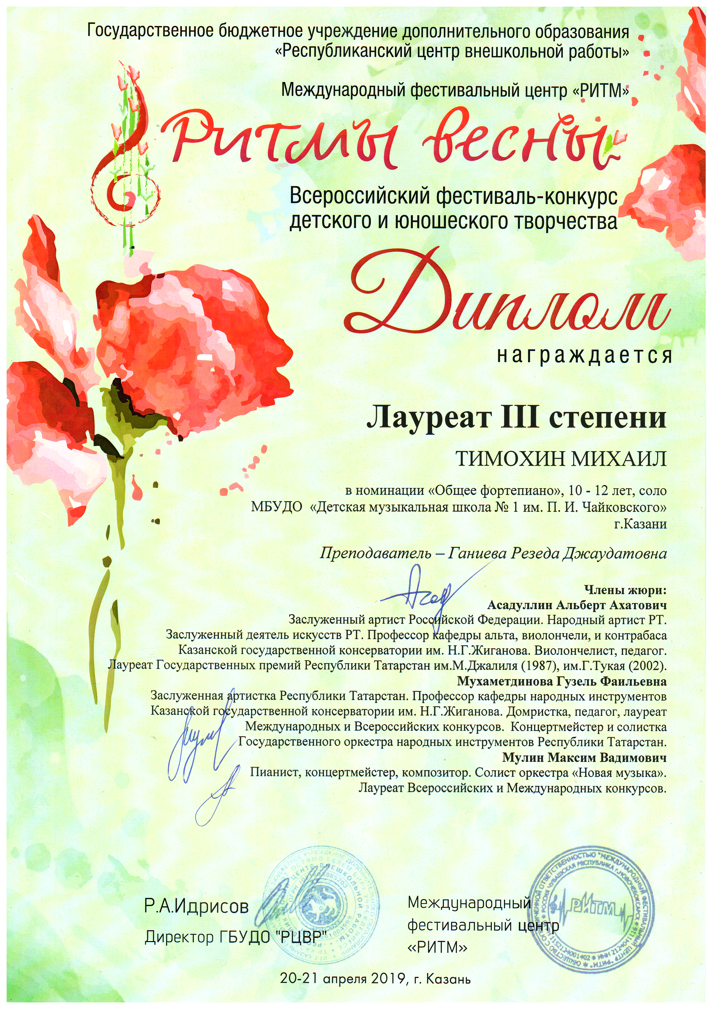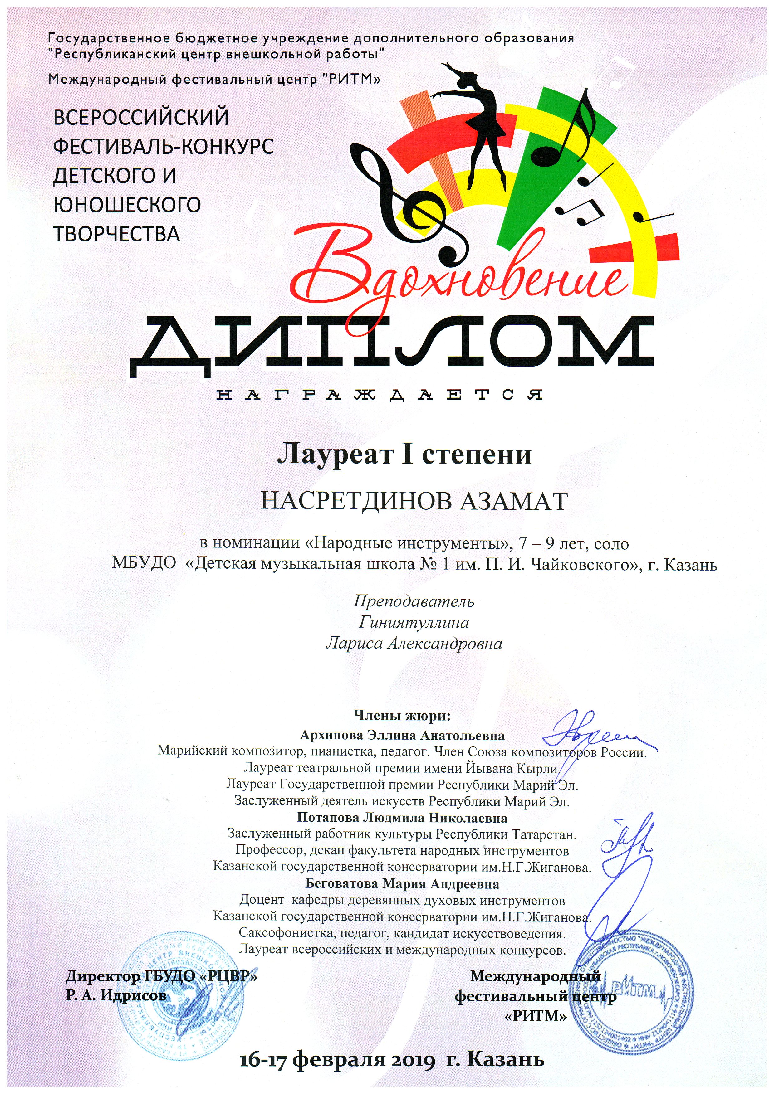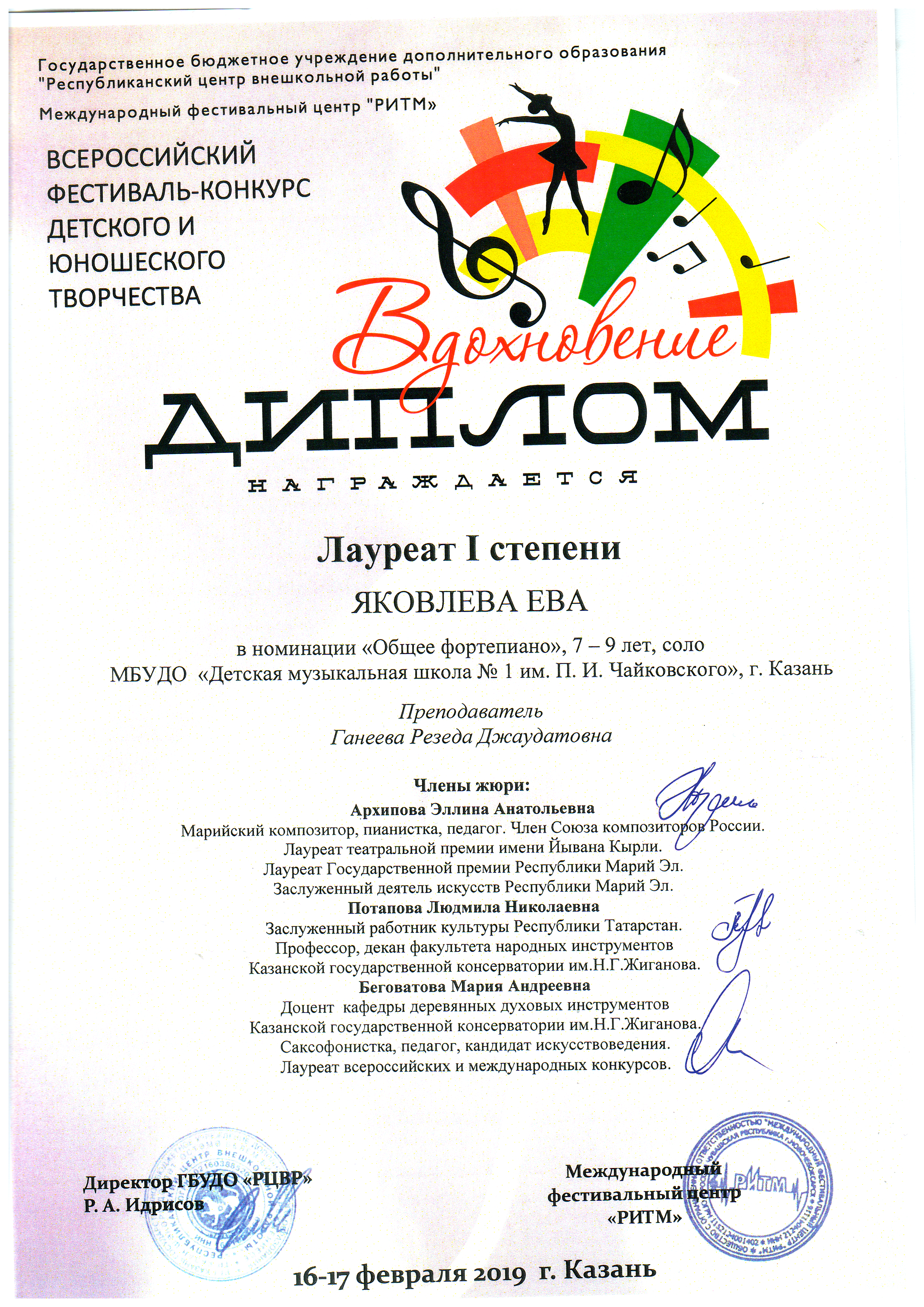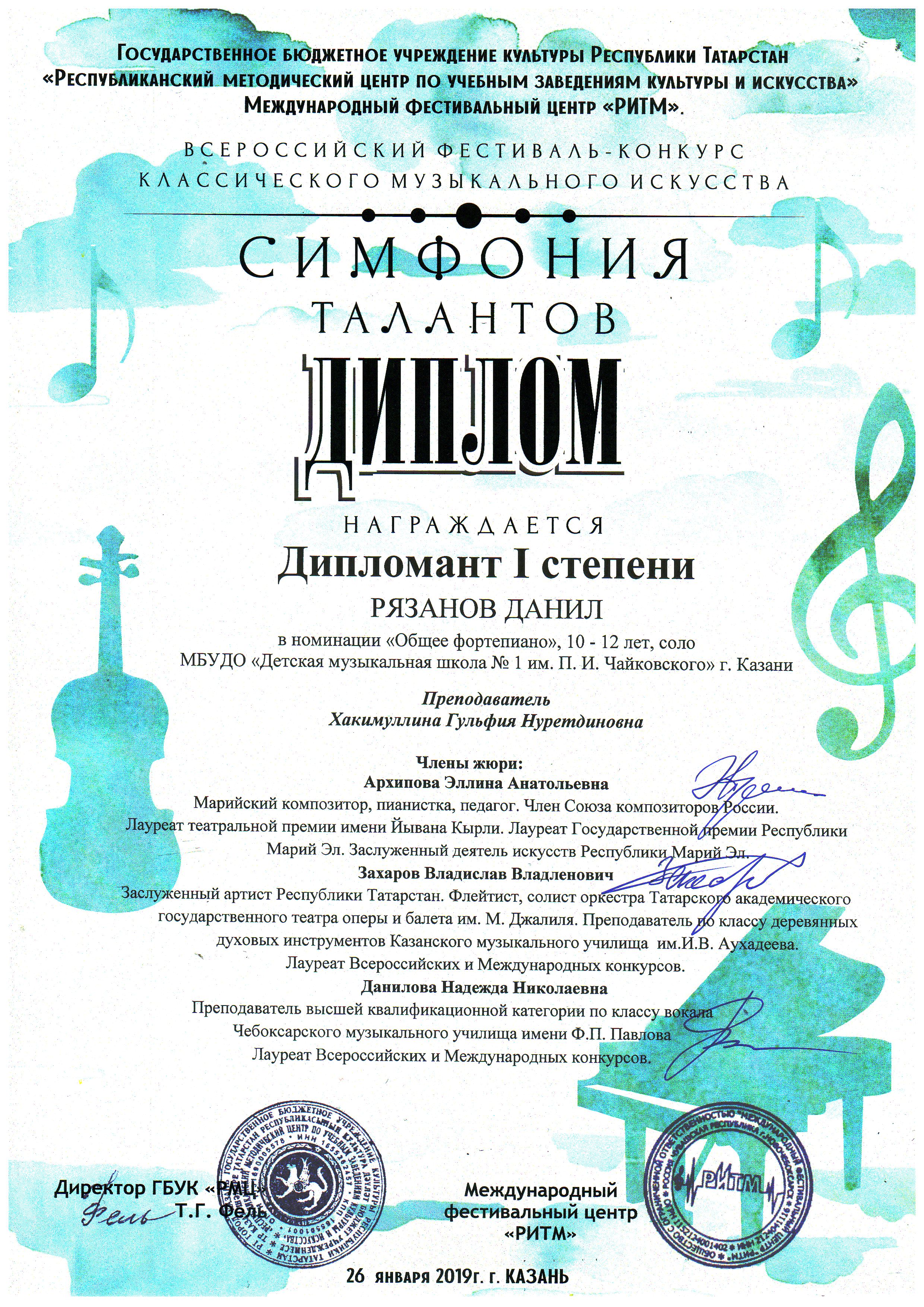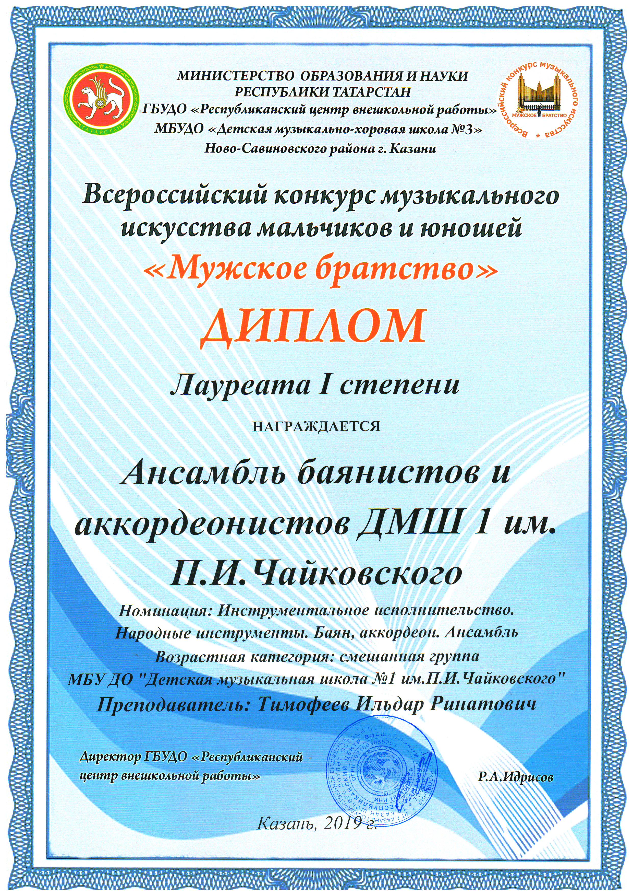 | Короткое название: | МБУДО г.Казани "Детская музыкальная школа №1 им. П.И. Чайковского" |