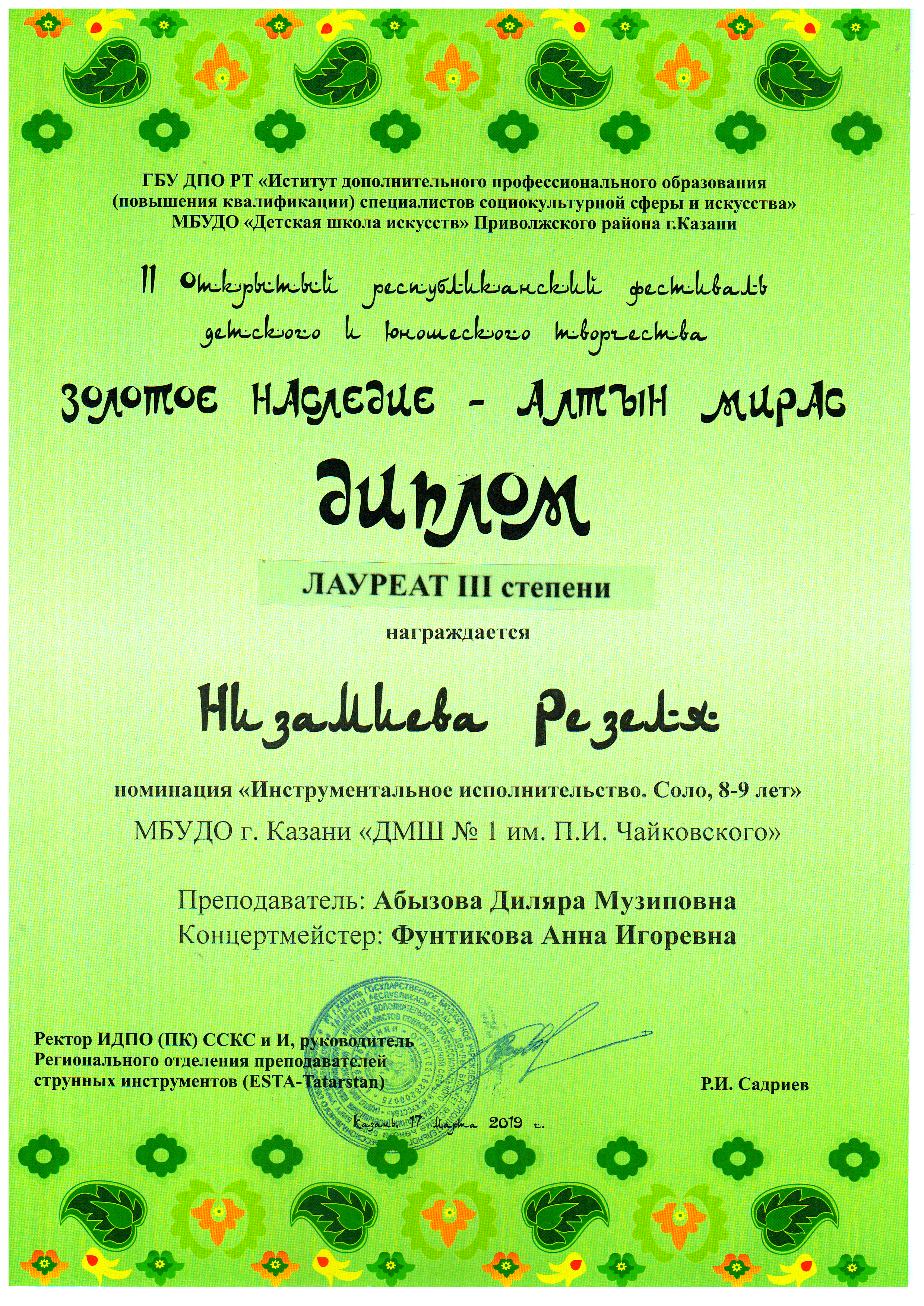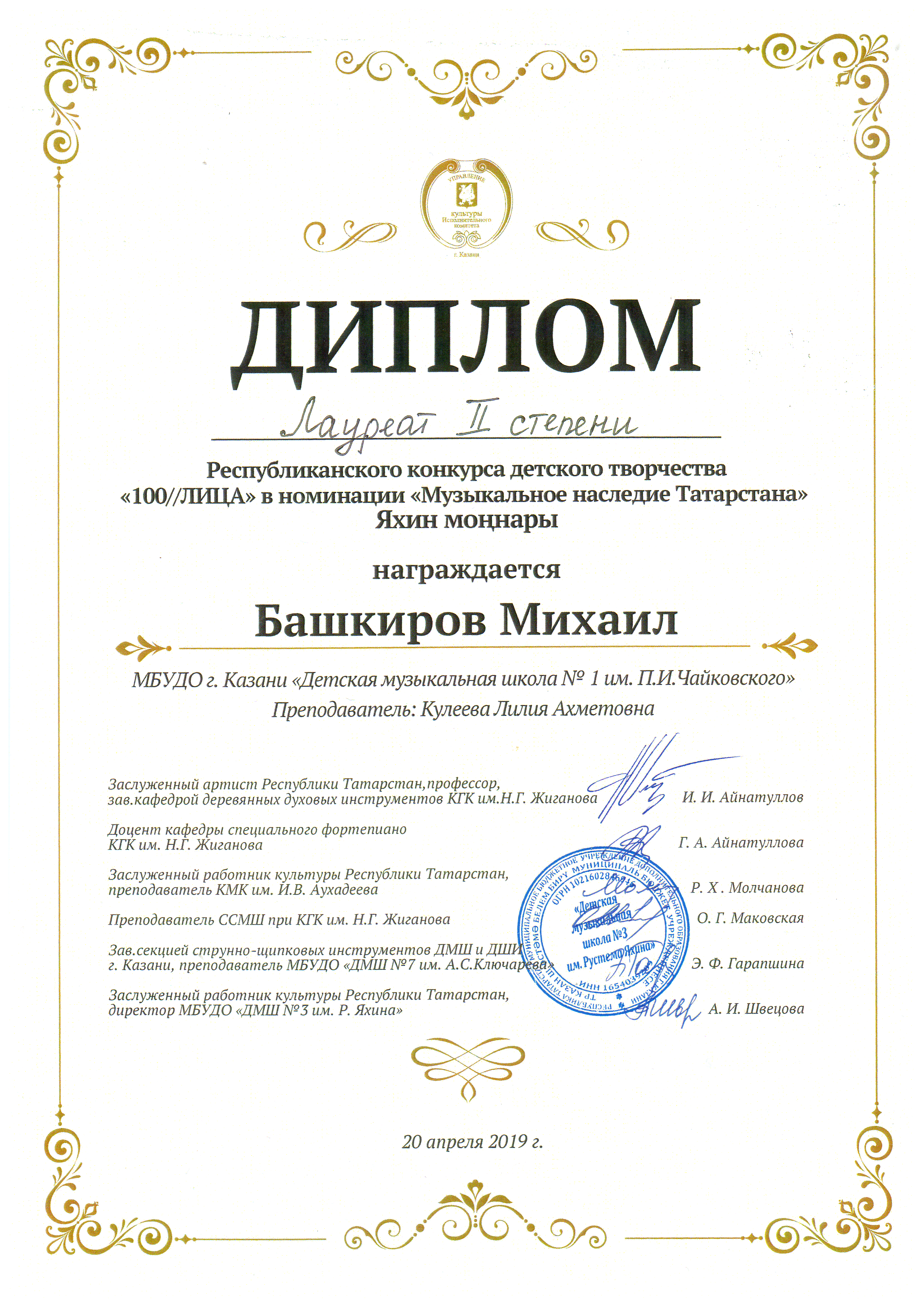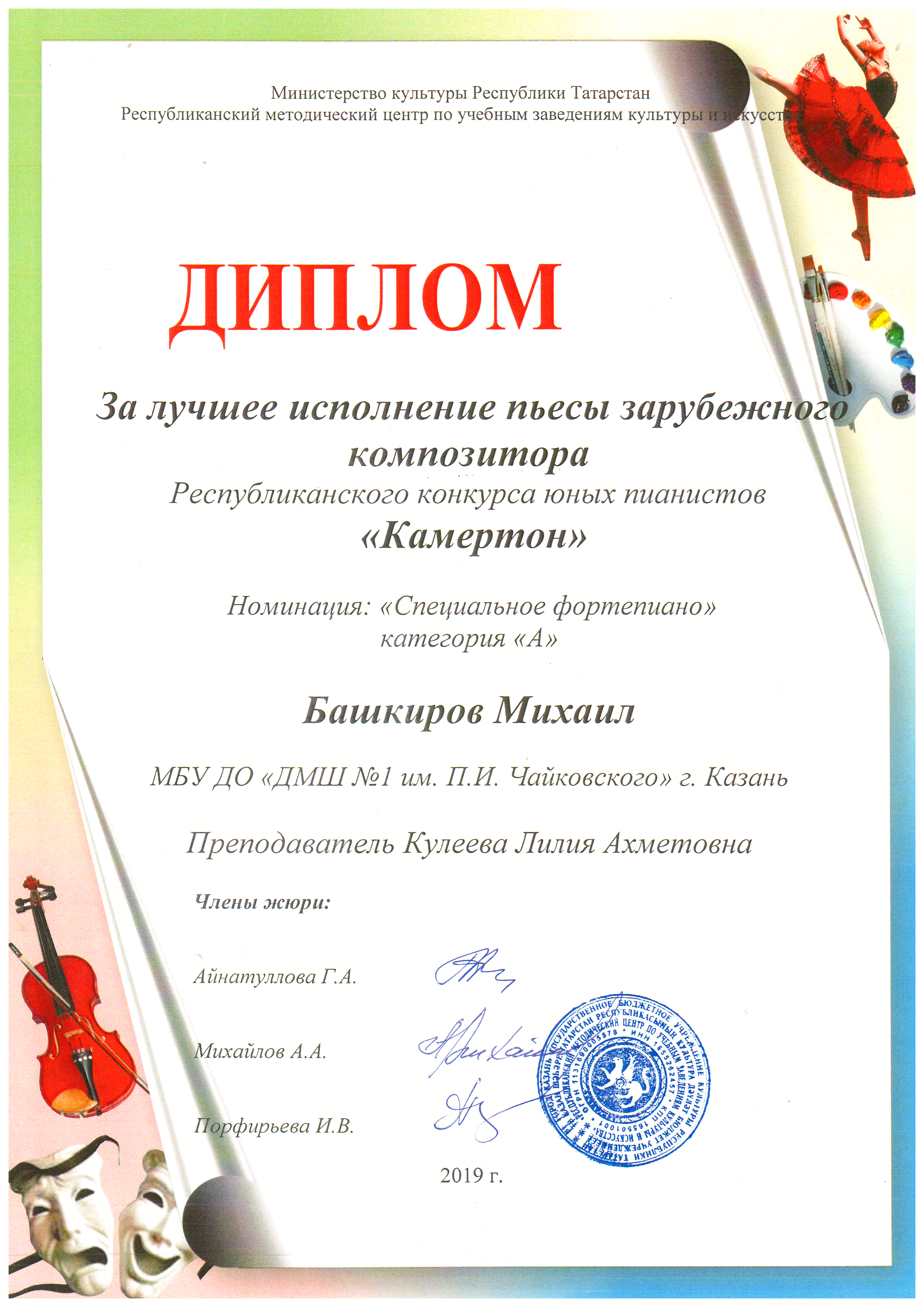 | Короткое название: | МБУДО г.Казани "Детская музыкальная школа №1 им. П.И. Чайковского" |