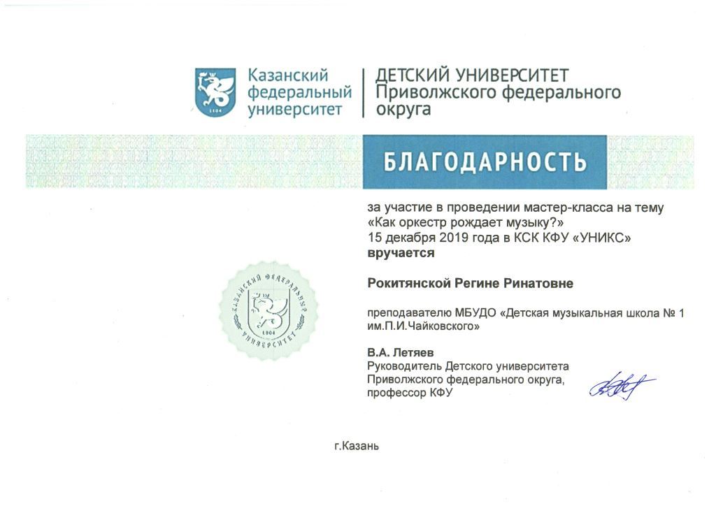 Детский университет ПФО (КСК КФУ "УНИКС") - Благодарность Рокитянской Р.Р.;