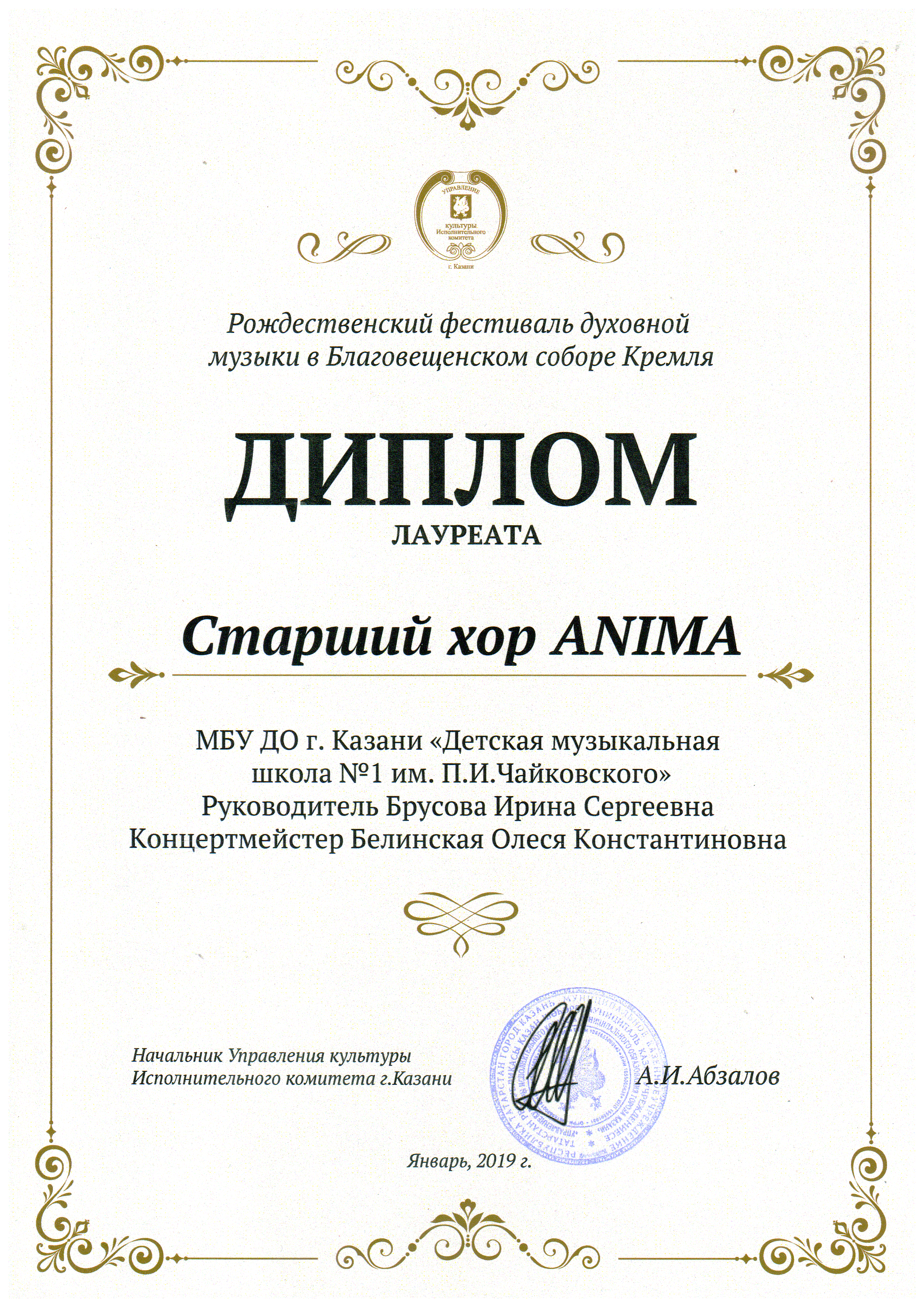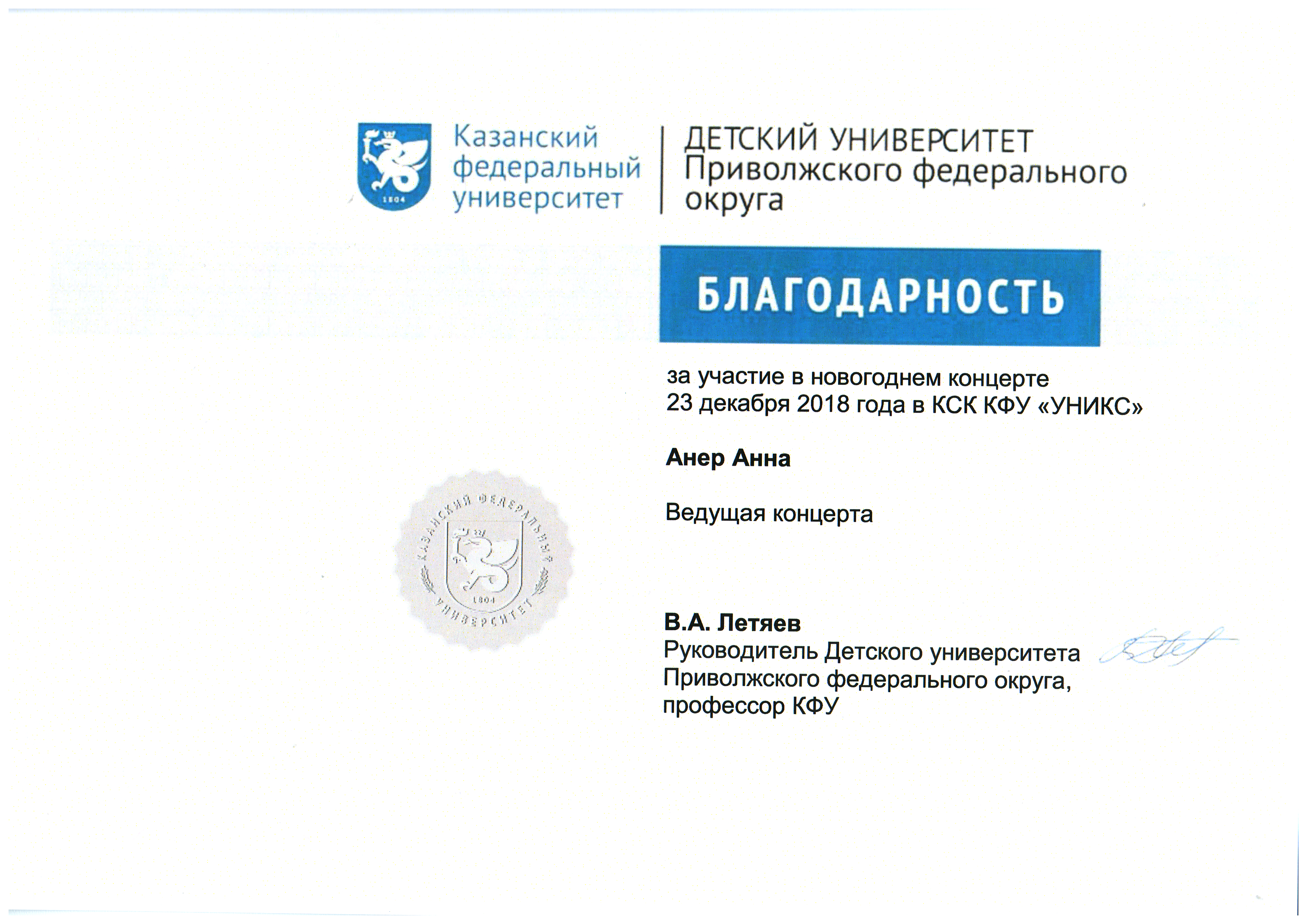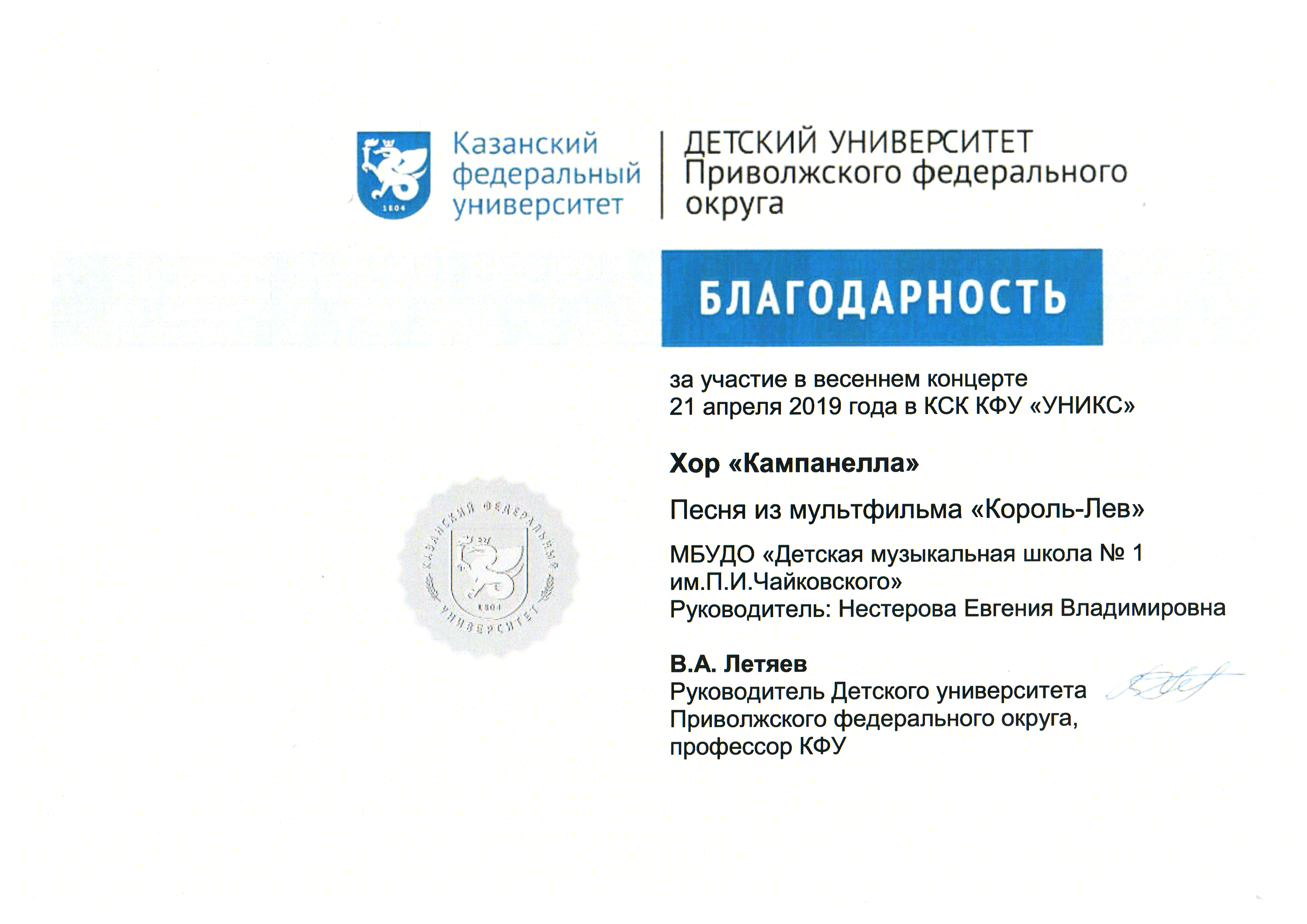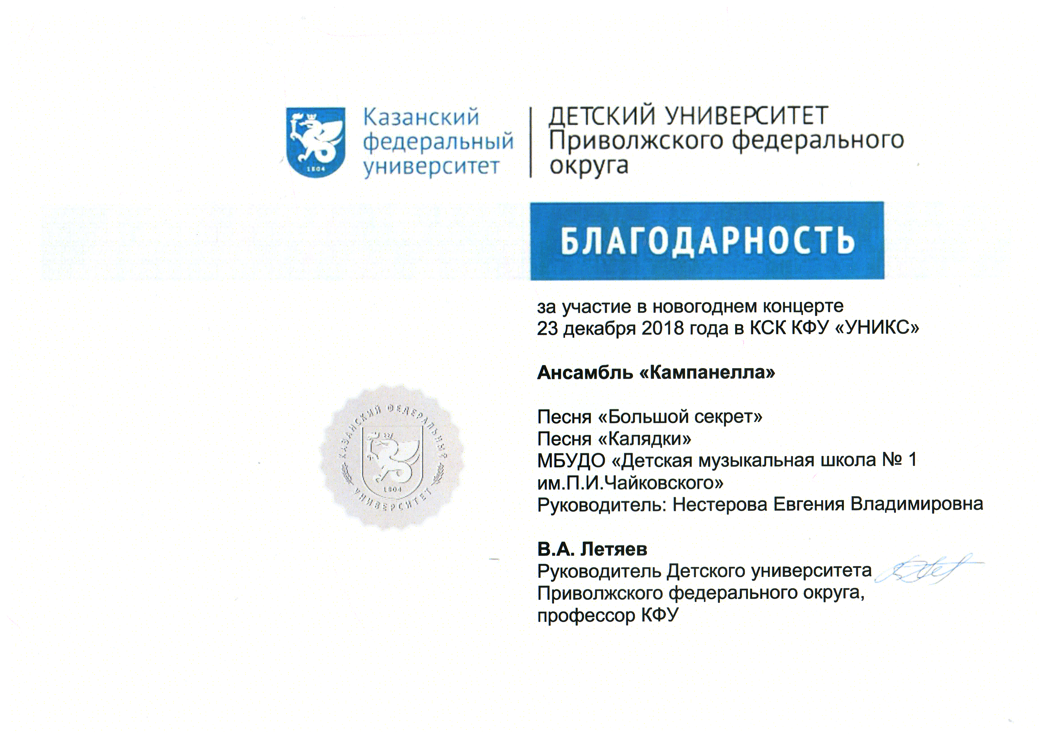 Концерт Казанского камерного оркестра "La Primavera" - Ансамбль "Сююмбике", Благодарность;