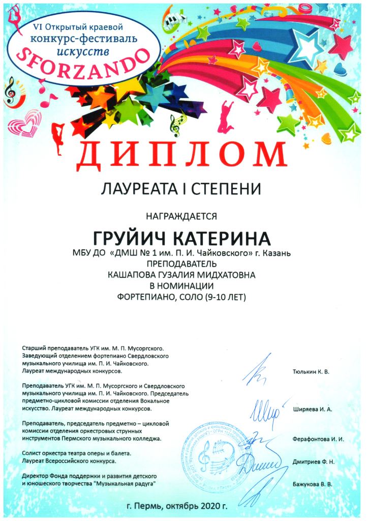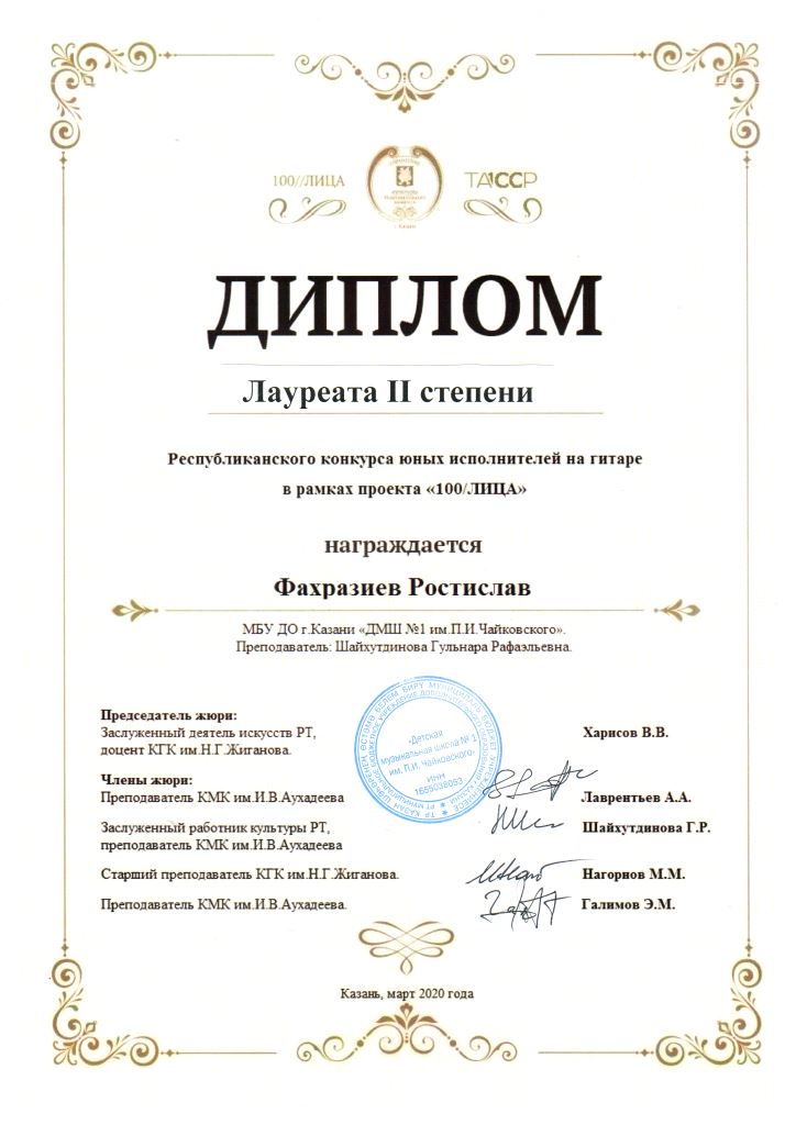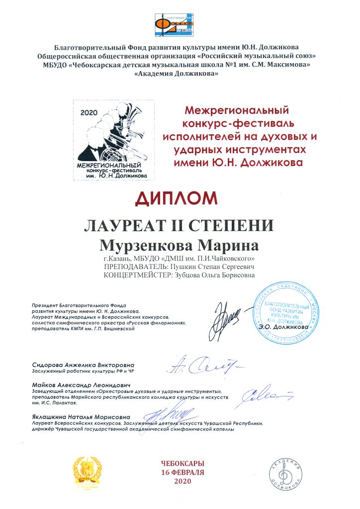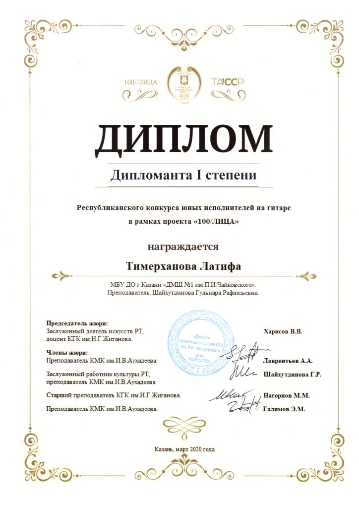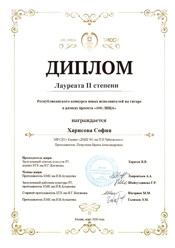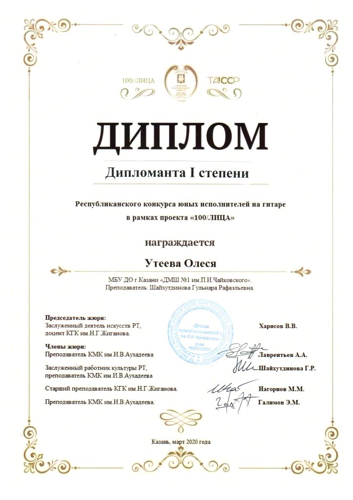 Республиканский конкурс скрипачей и виолончелистов "MOLTO" в рамках проекта "100/ЛИЦА" - Сенченкогва Амалия, Дипломант III степени, класс Быстровой О.А., концертмейстер Сунгатова М.Ю.;