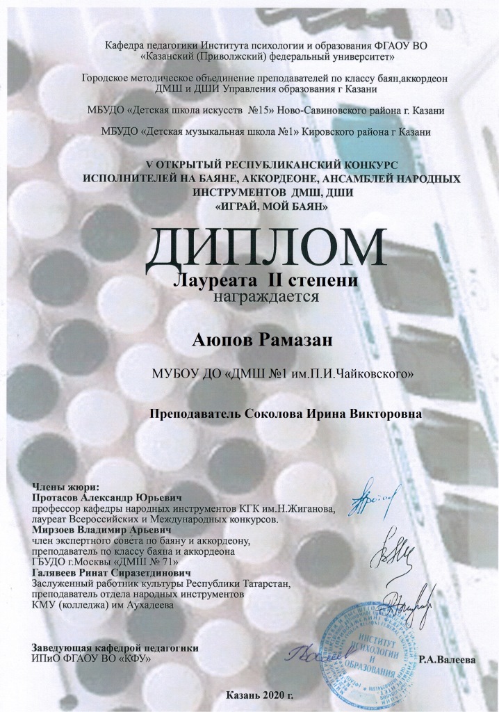 | Короткое название: | МБУДО г.Казани "Детская музыкальная школа №1 им. П.И. Чайковского" |