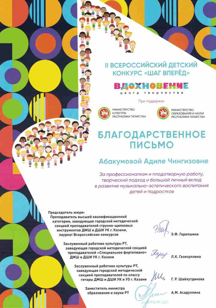 II Всероссийский детский конкурс "Шаг вперёд" - Благодарность Абакумовой А.Ч.;