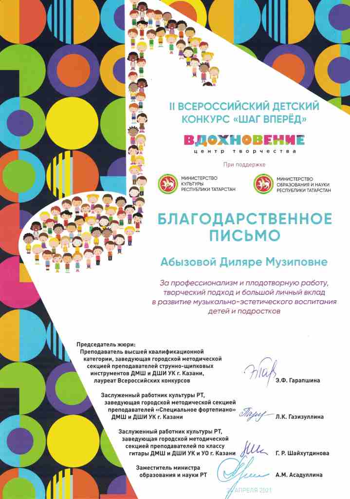 II Всероссийский детский конкурс "Шаг вперёд" - Благодарность Абызовой Д.М.;