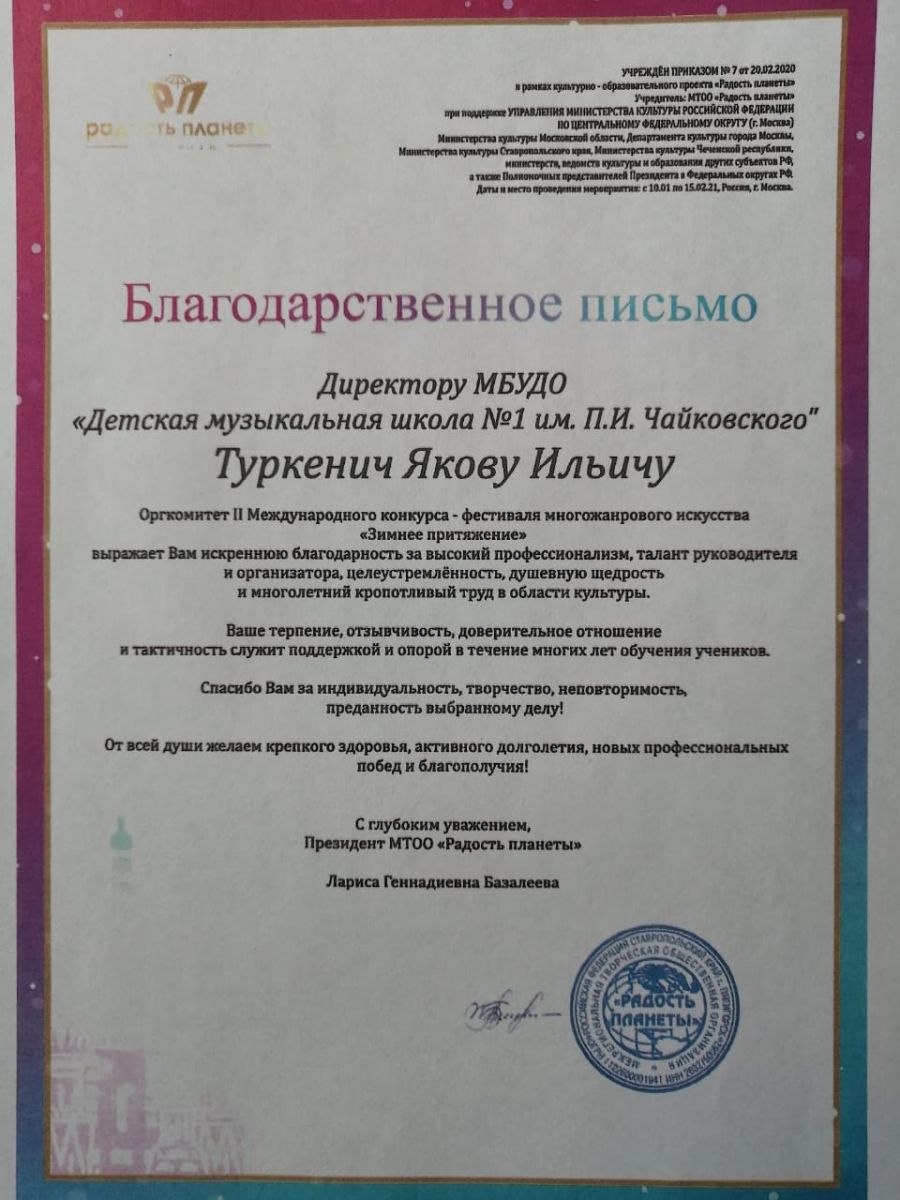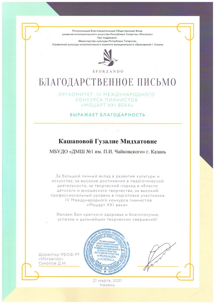 IV Международный конкурс пианистов "Моцарт XXI века" - Благодарность Кашаповой Г.М.;