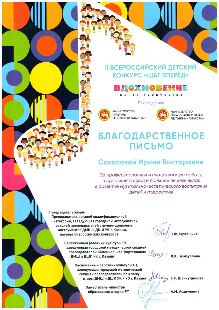 II Всероссийский детский конкурс "Шаг вперёд" - Благодарность Соколовой И.В.;