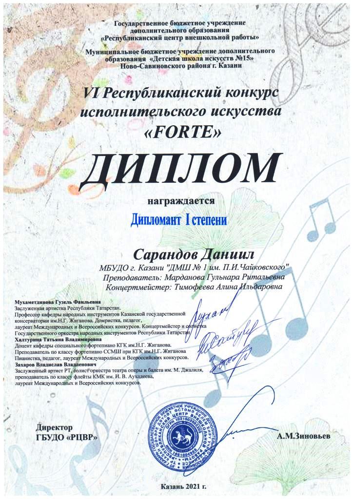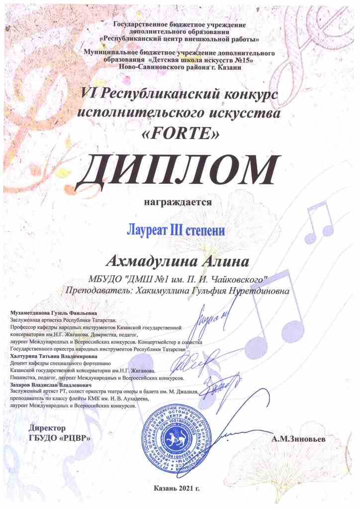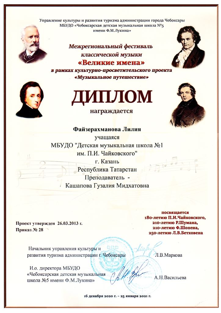 | Короткое название: | МБУДО г.Казани "Детская музыкальная школа №1 им. П.И. Чайковского" |