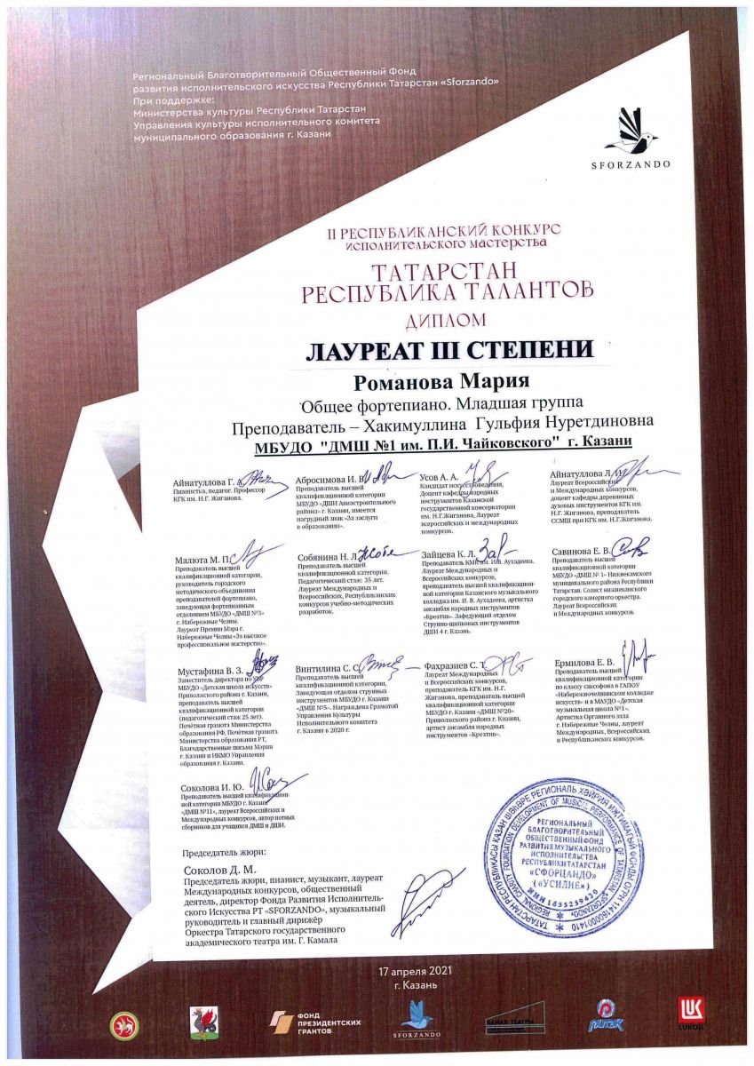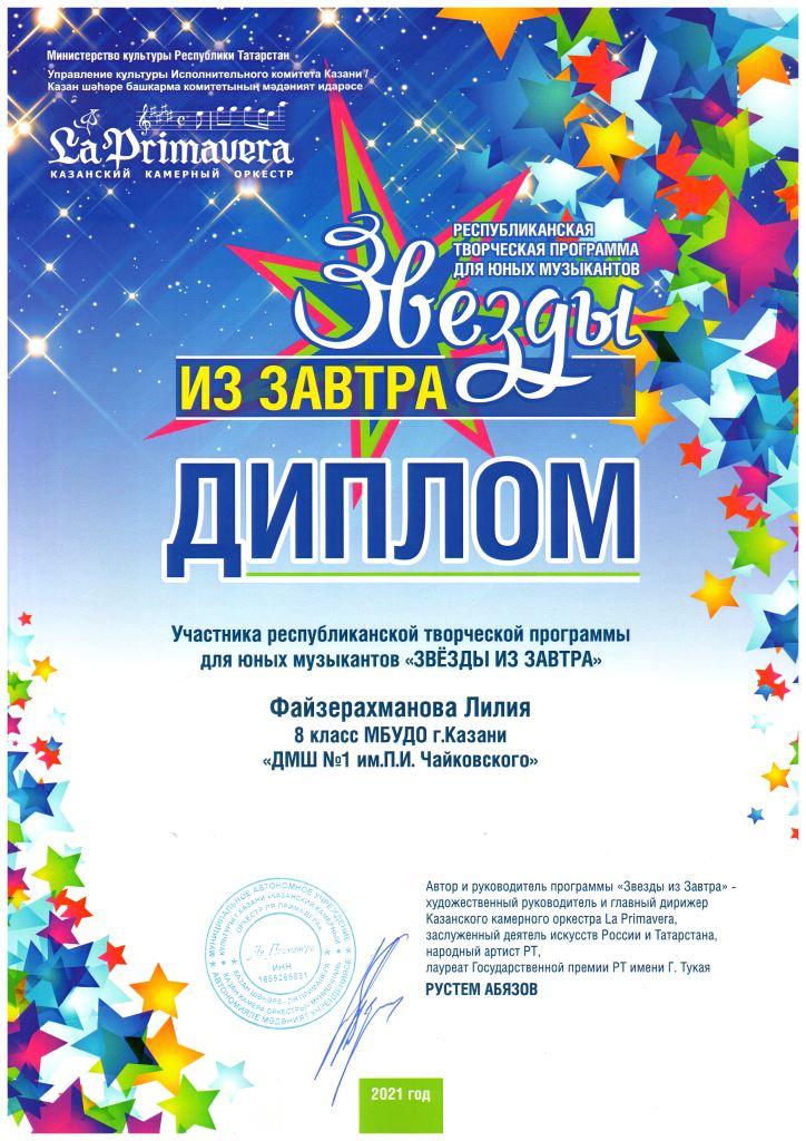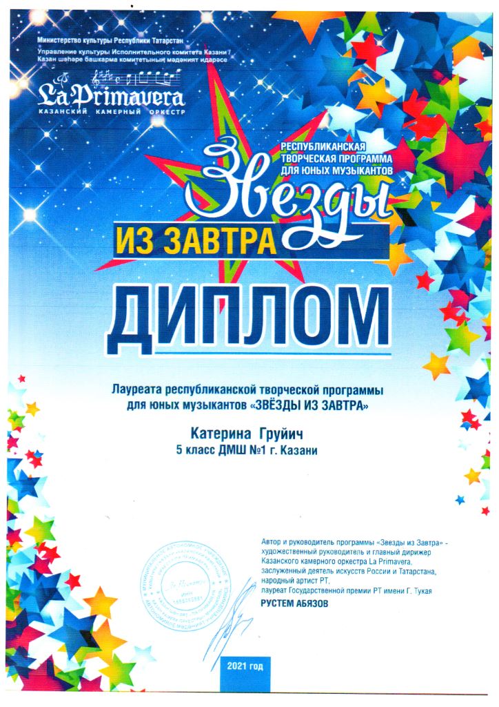 Республиканская творческая программа для юных музыкантов "Звёзды из завтра" - Коварский Матвей, Диплом, класс Сытиковой Н.А.;