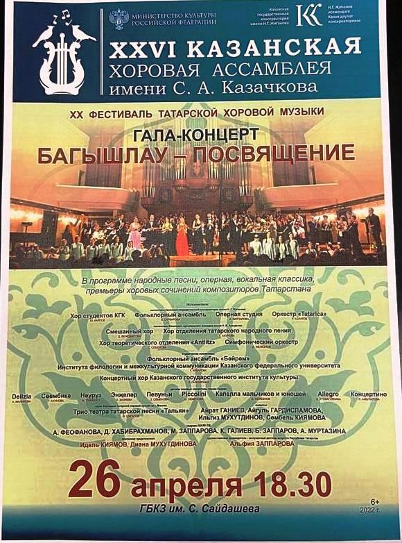 Гала-концерт ХХ Фестиваля татарской хоровой музыки - татарский вокальный ансамбль "Сююмбике", класс Ахуновой Г.А., концертмейстер Сунгатова М.Ю.;