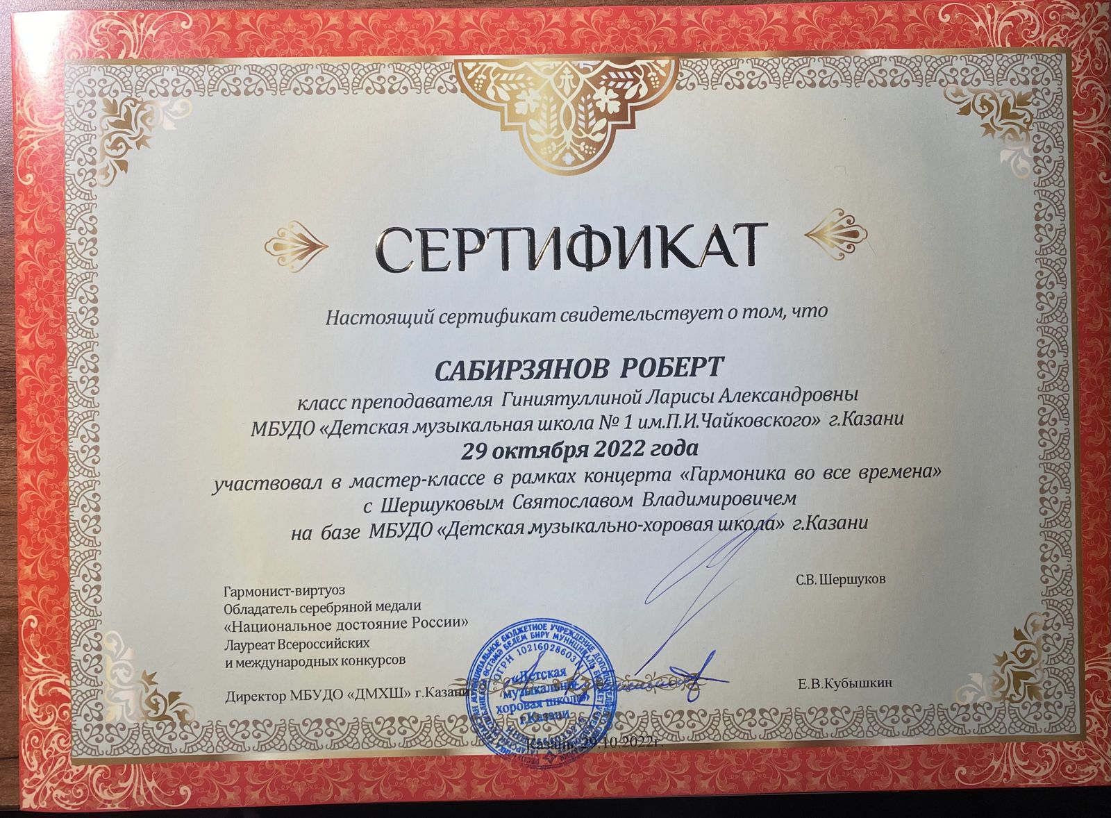 Мастер-класс Шершукова С.В. - Сабирзянов Роберт, класс Гиниятуллиной Л.А.;
