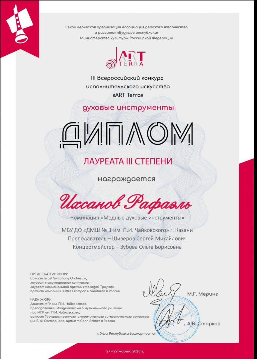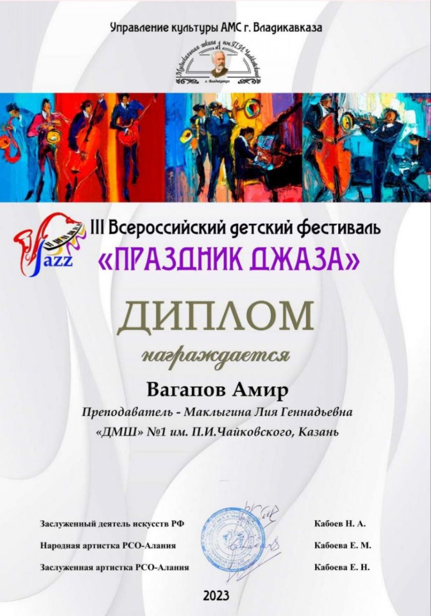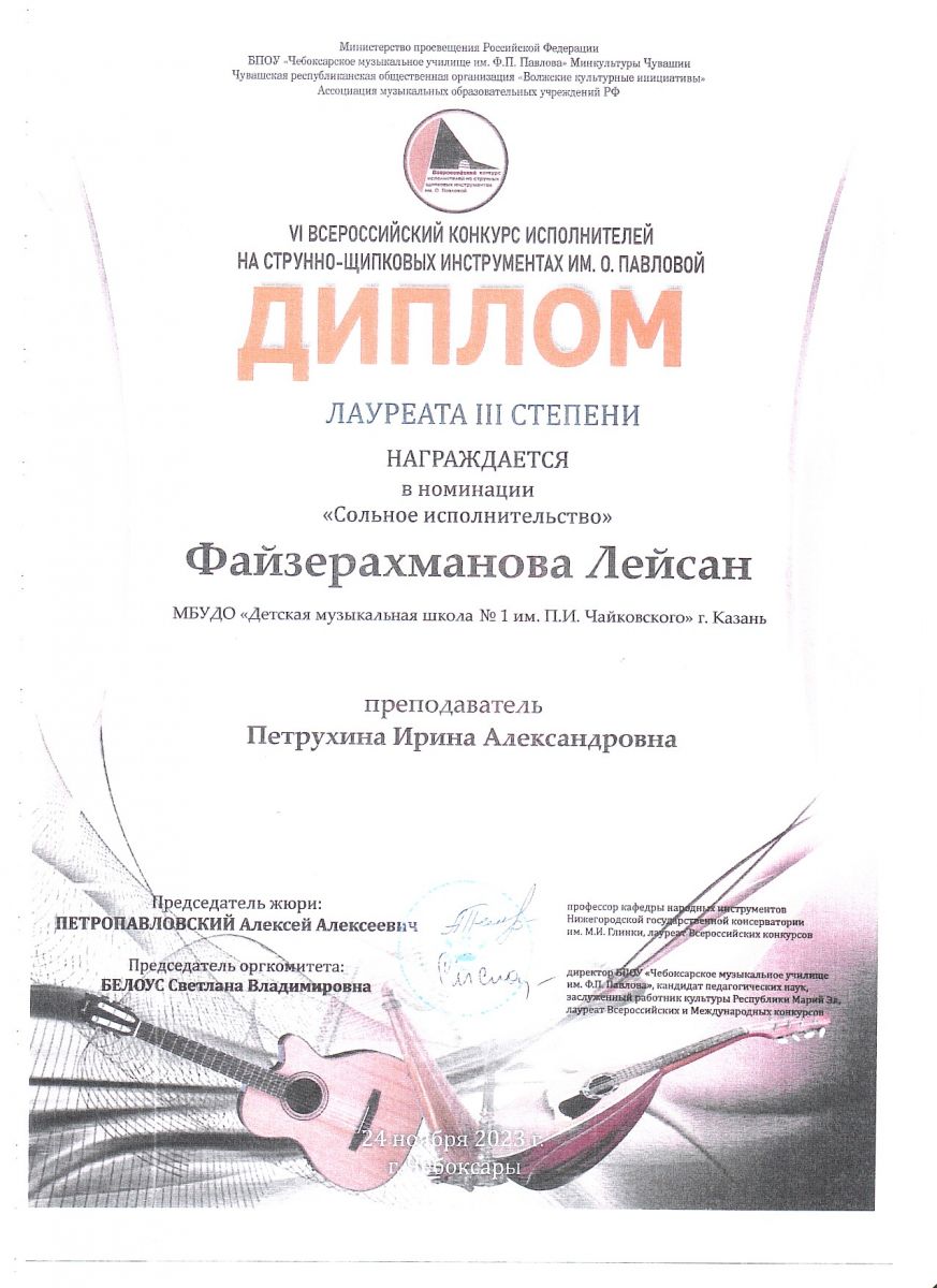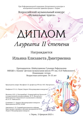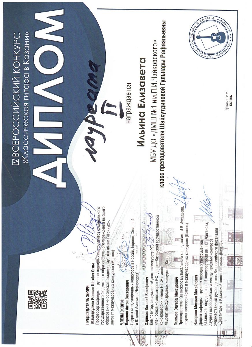 IV Всероссийский конкурс "Классическая гитара в Казани" - Нагорнов Илья, Лауреат III степени, класс Шайхутдиновой Г.Р.;