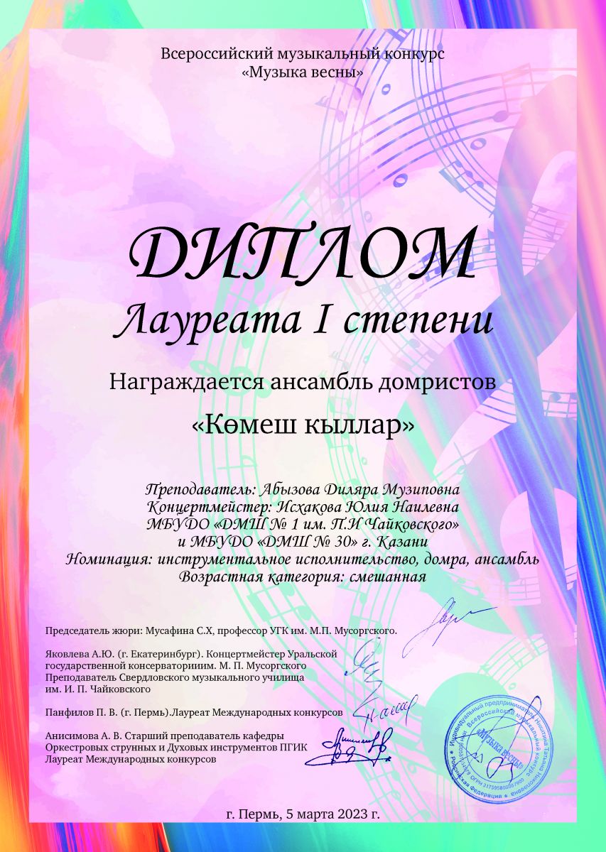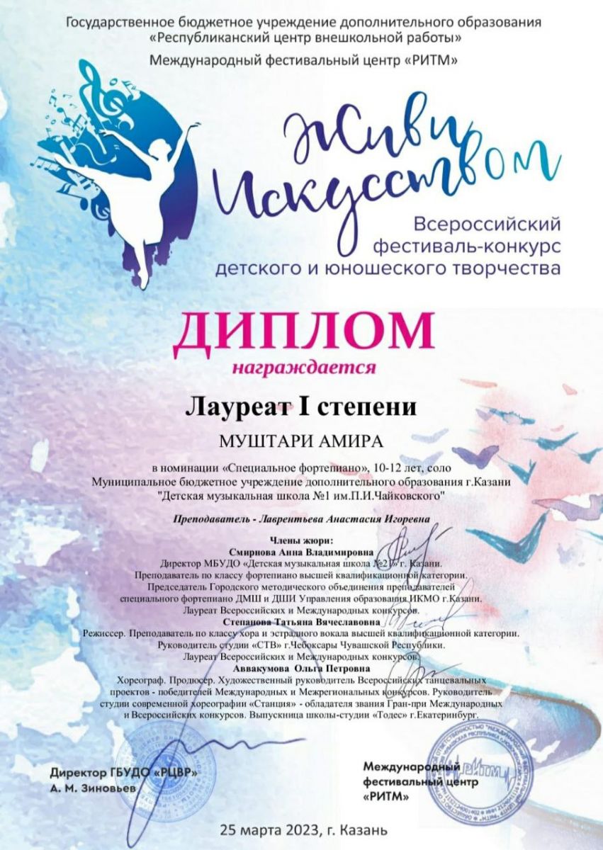 | Короткое название: | МБУДО г.Казани "Детская музыкальная школа №1 им. П.И. Чайковского" |