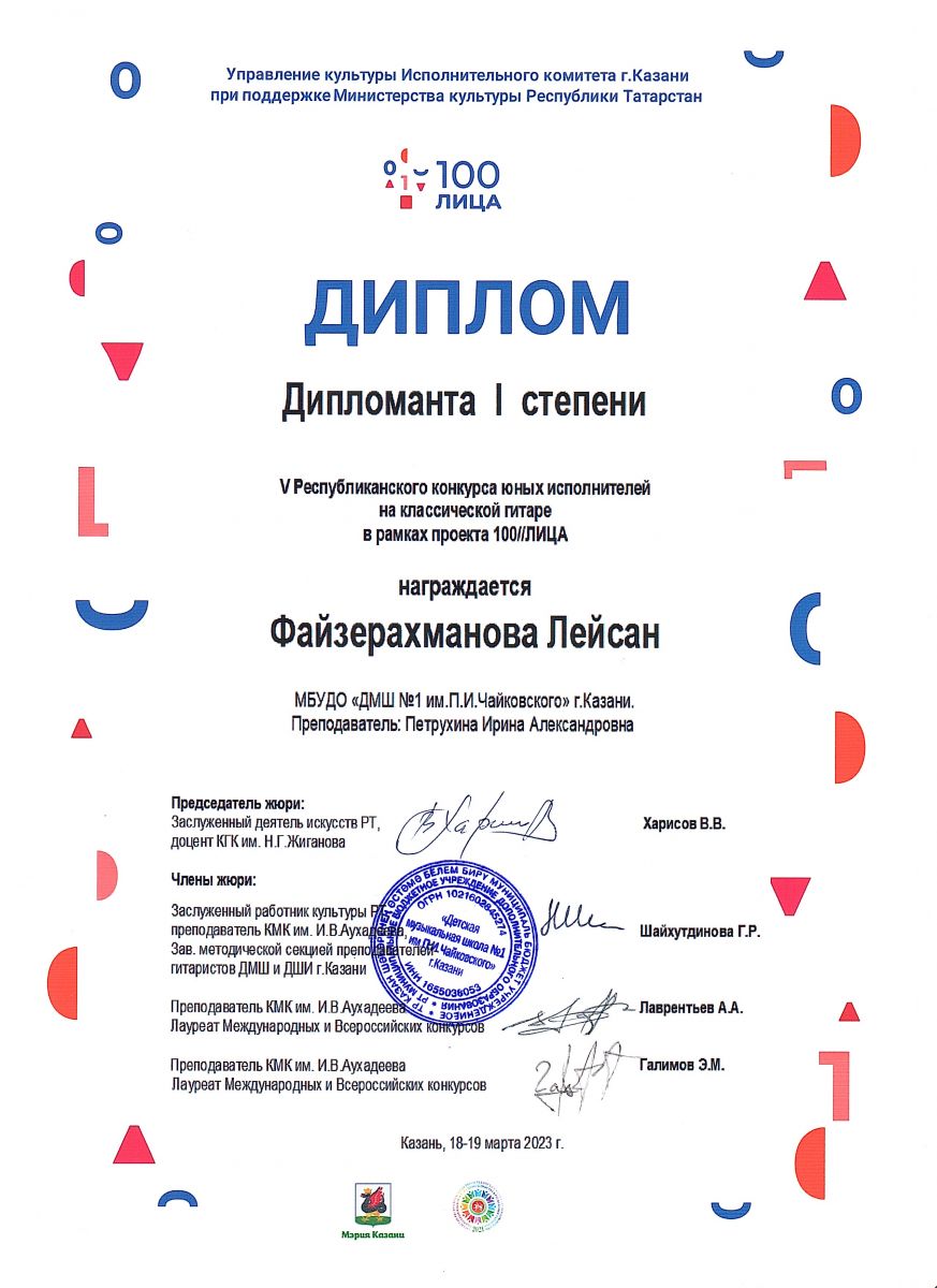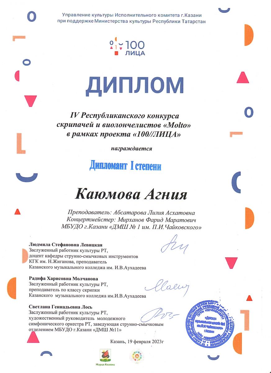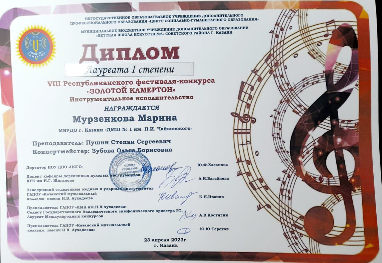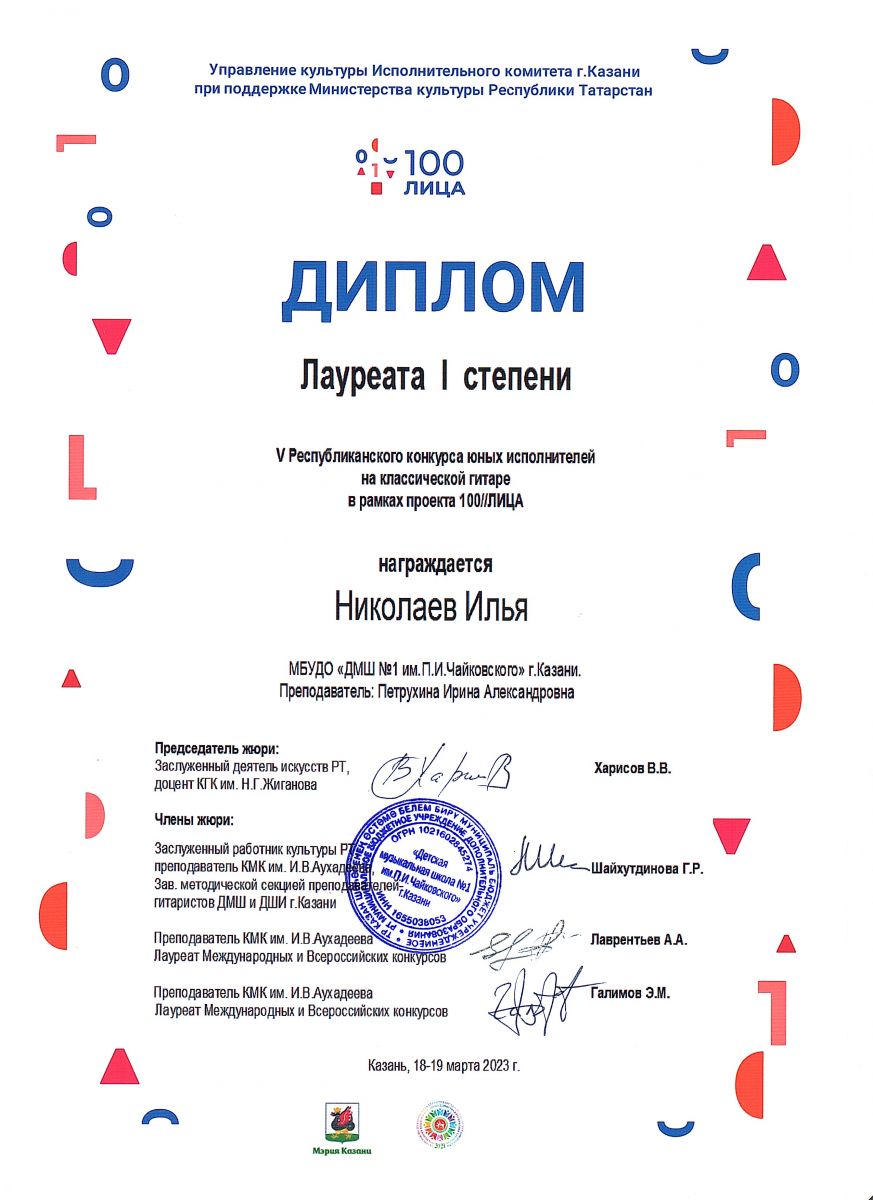 | Короткое название: | МБУДО г.Казани "Детская музыкальная школа №1 им. П.И. Чайковского" |