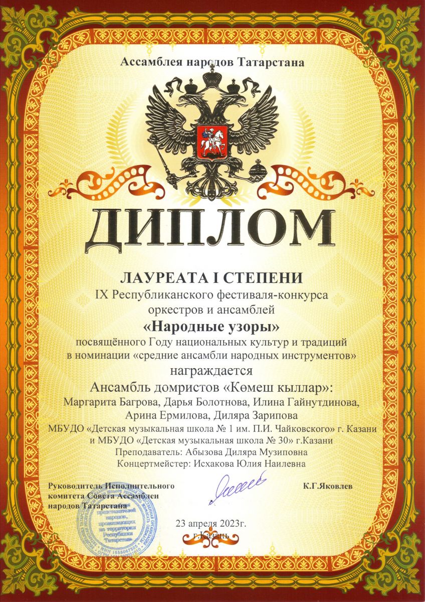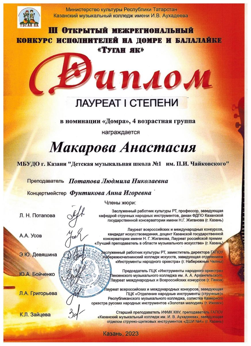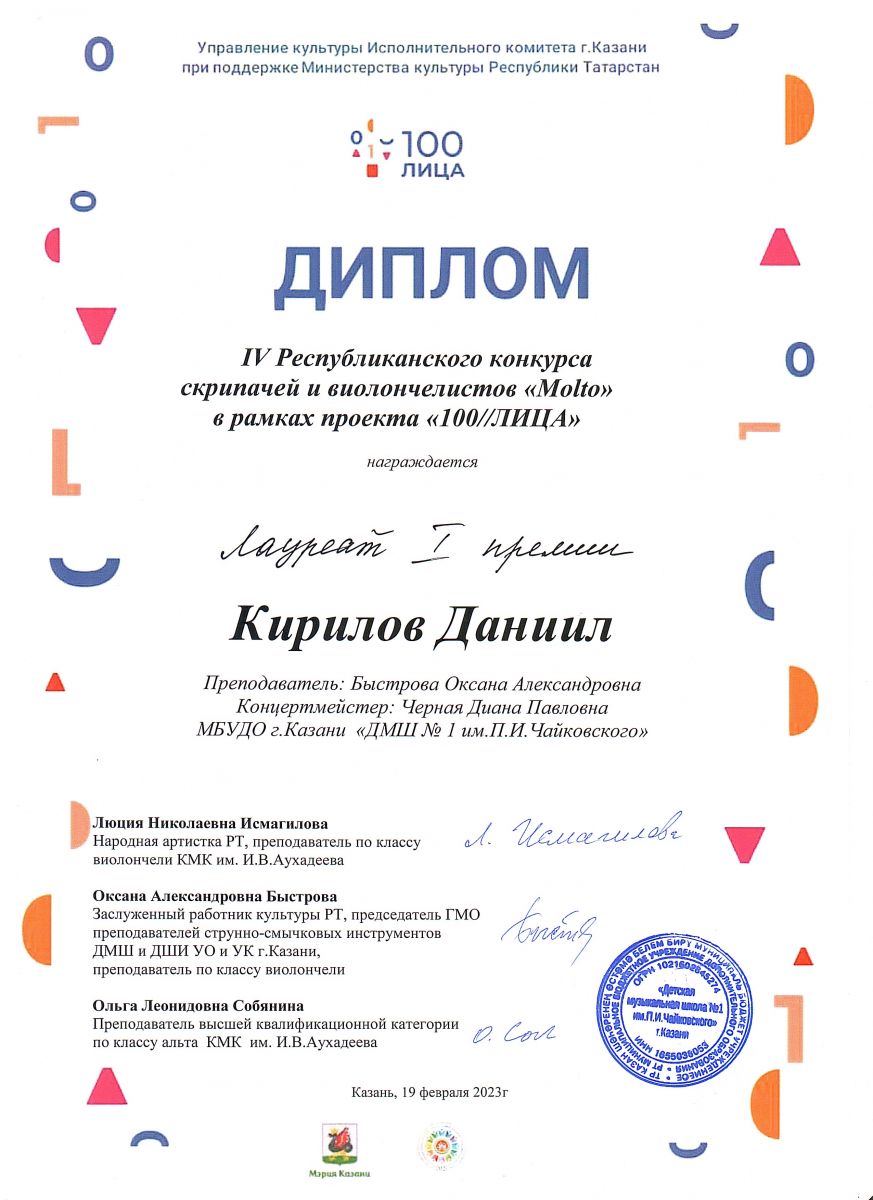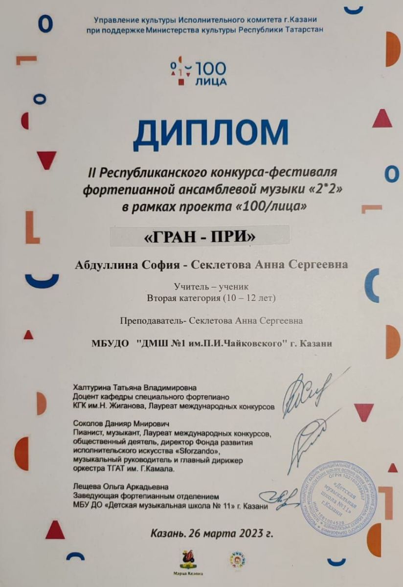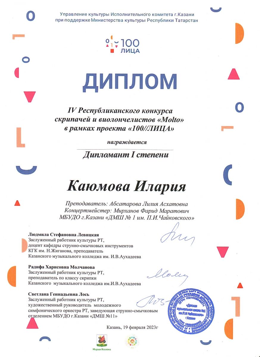 | Короткое название: | МБУДО г.Казани "Детская музыкальная школа №1 им. П.И. Чайковского" |