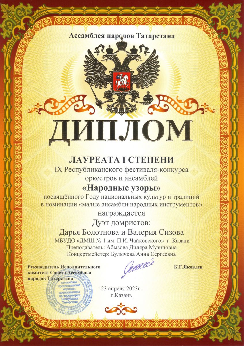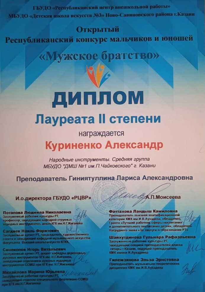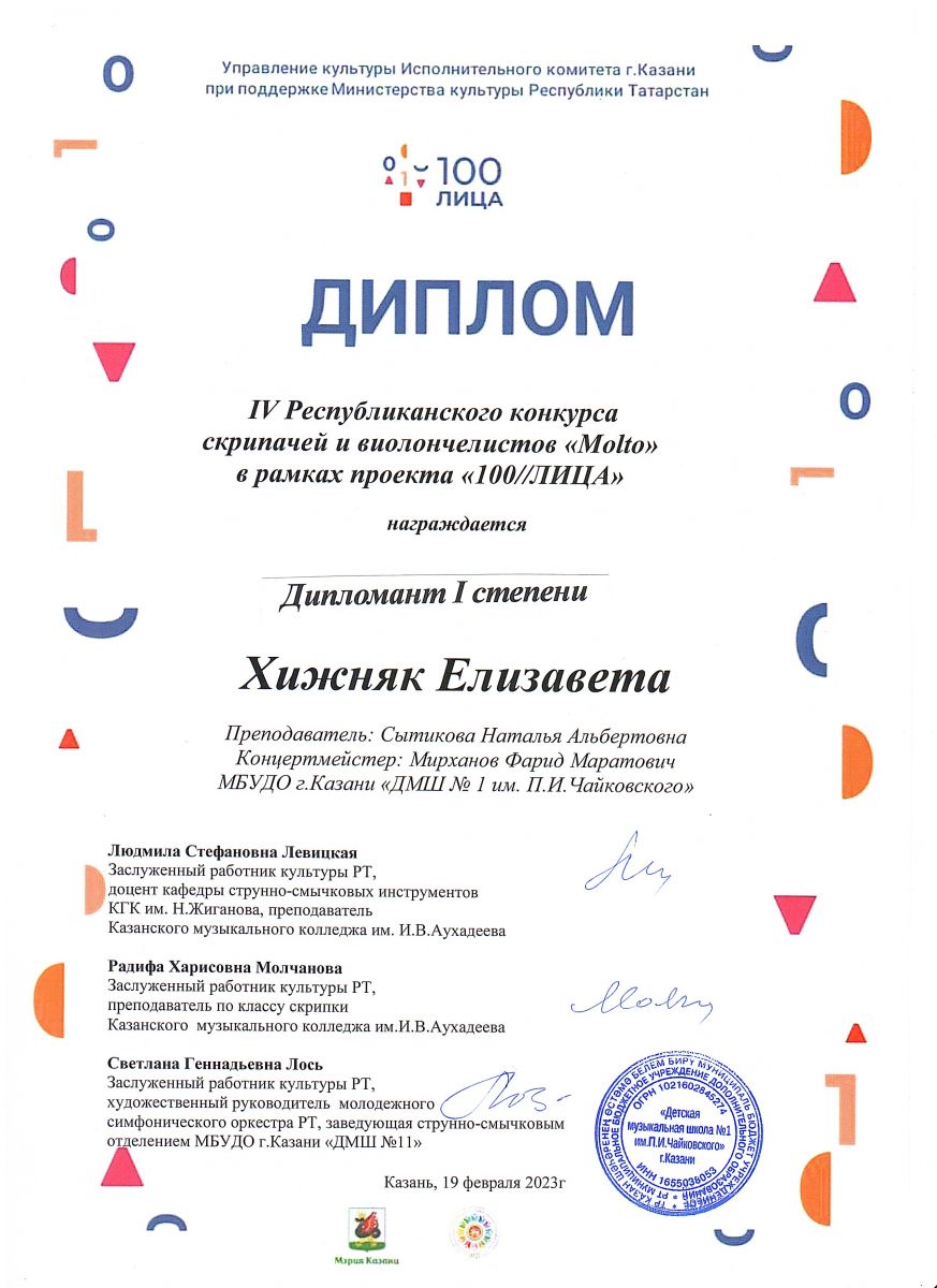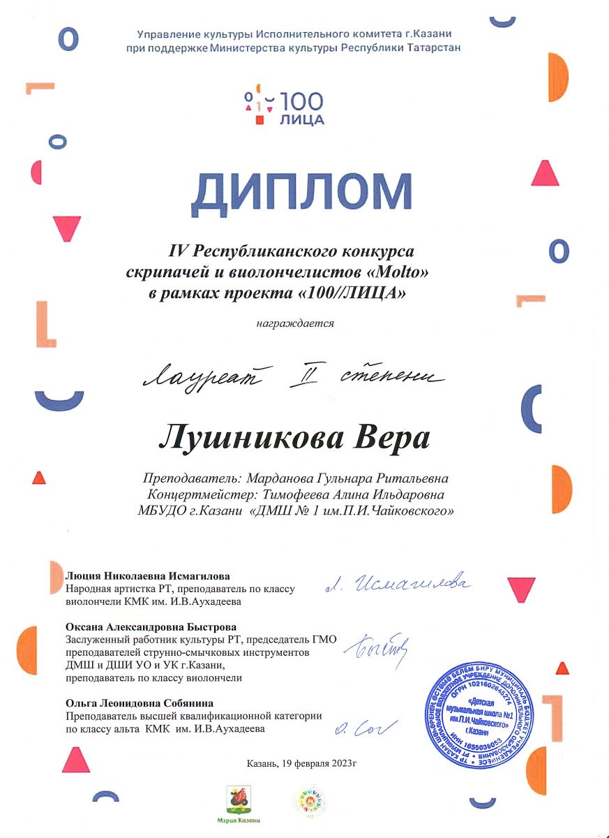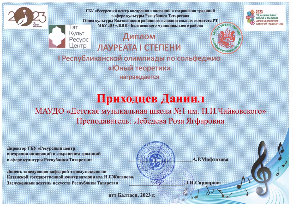 | Короткое название: | МБУДО г.Казани "Детская музыкальная школа №1 им. П.И. Чайковского" |